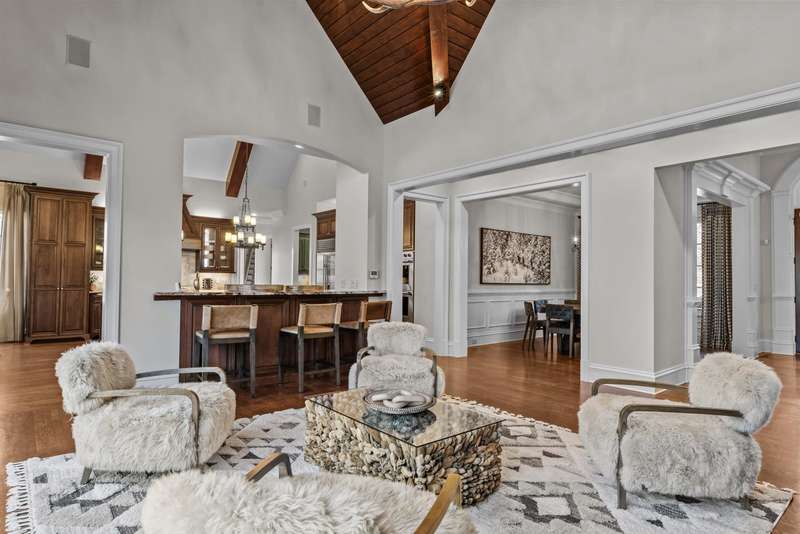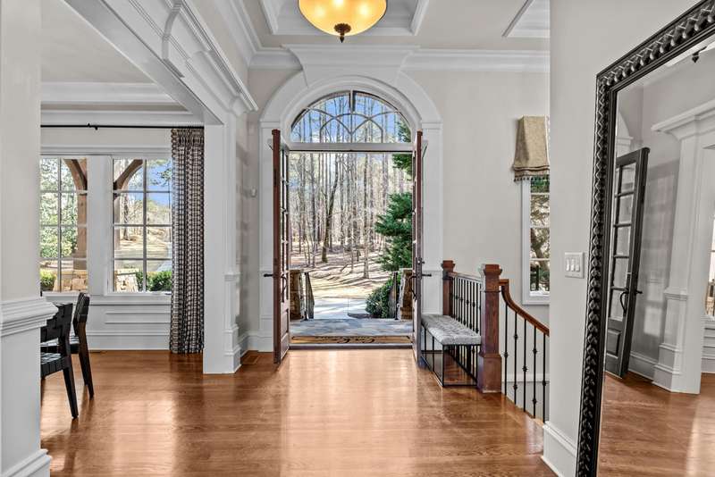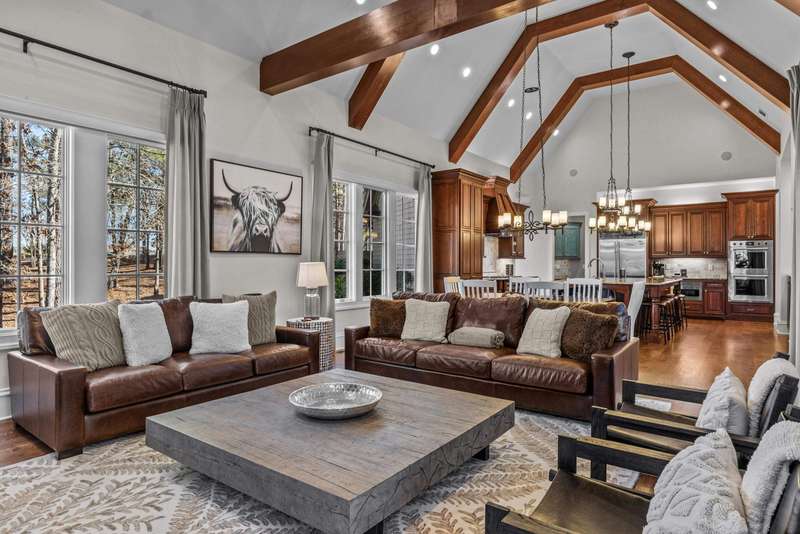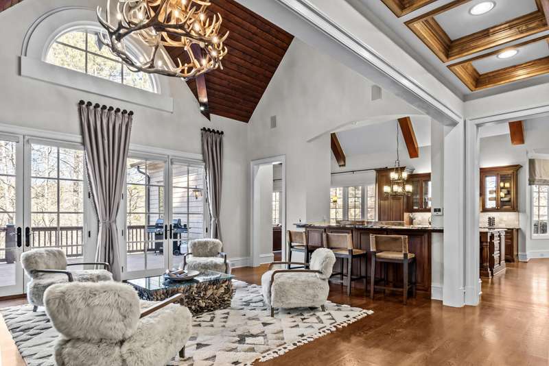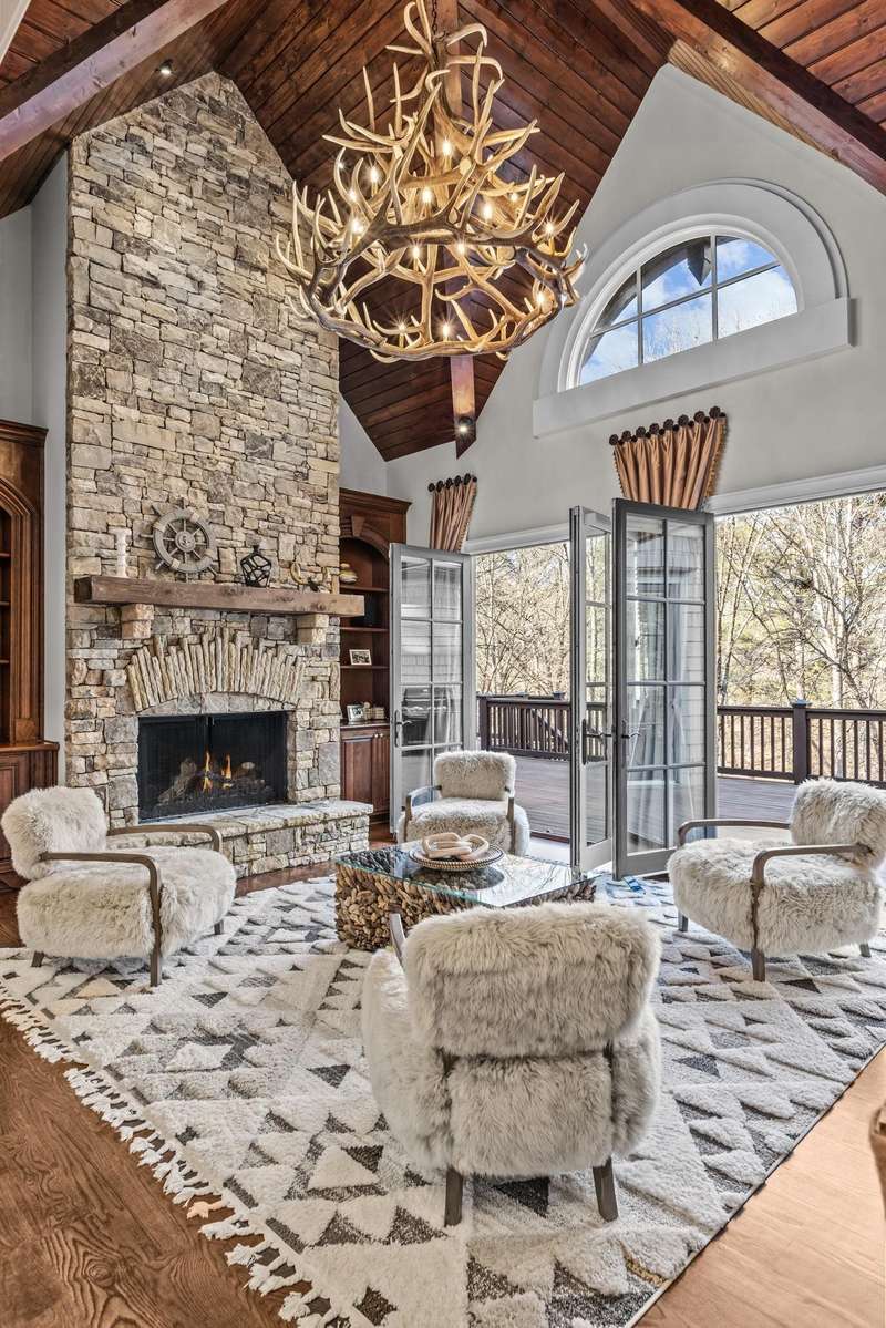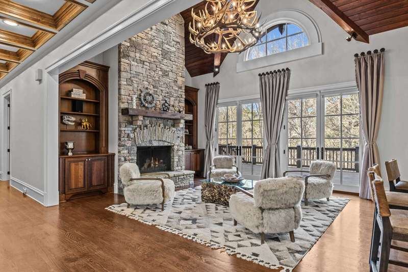 OWNER FINANCING AVAILABLE. Fully furnished, beautiful lake home nestled on almost two acres of property offering quality craftsmanship and details, steps from the boat dock with TWO ASSIGNED BOAT SLIPS. Designed to elevate your lifestyle , this home features 6 bedrooms, 6 full baths, and 2 half baths, and is ideal for both luxurious everyday living and memorable entertaining. The main level welcomes you with an expansive open floor plan, adorned with hardwood floors, wood beams and custom millwork throughout. A striking stone gas fireplace anchors the great room, while the formal dining area and open large kitchen create a space that is as functional as it is beautiful. The kitchen boasts an extra-large island, WOLF stove and ovens, a Sub-Zero refrigerator, and a bar area. Adjacent to the kitchen is a keeping room and a secondary dining area which opens to a spacious outdoor deck. The main level features a luxurious primary suite with a spa-like bath that includes heated floors and dual walk-in closets. A second bedroom with a full ensuite bath is also on the main level for convenience and comfort of visiting family and friends. Above the garage, a large private guest suite provides a tranquil retreat with a generously sized bedroom and full bath. Ascend to the terrace level via elevator designed for entertainment, offering an expansive family and game room, a full bar and a climate-controlled walk-in wine cellar that holds approximately 1,500 bottles. Three additional large suites each with private baths, and an additional half bath complete this level. Step outside to the covered stone patio, which overlooks the lake, perfect for outdoor gatherings and relaxation. This exceptional home is a rare find with almost two acres providing privacy and future opportunities for a pool, outdoor kitchen and even a pool house. There is a nature walking trail in the beautiful backyard. Located near Reynolds’ main entrance, shopping center, hospital, the Ritz Carlton and other community amenities, this home is move-in ready. Membership is available.
