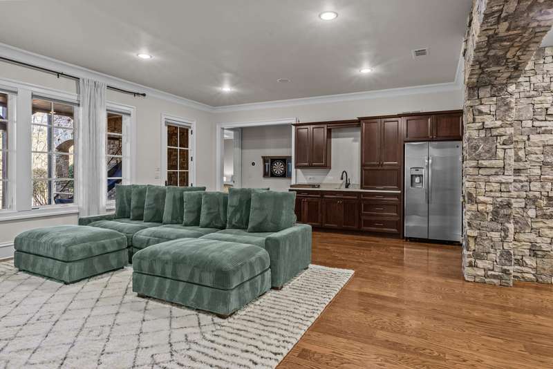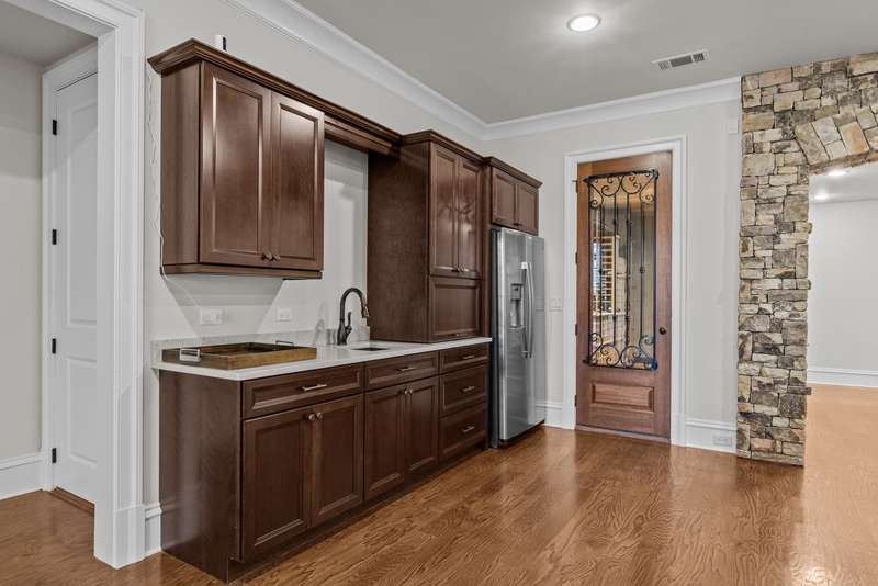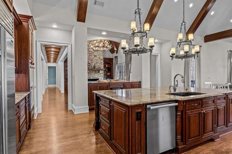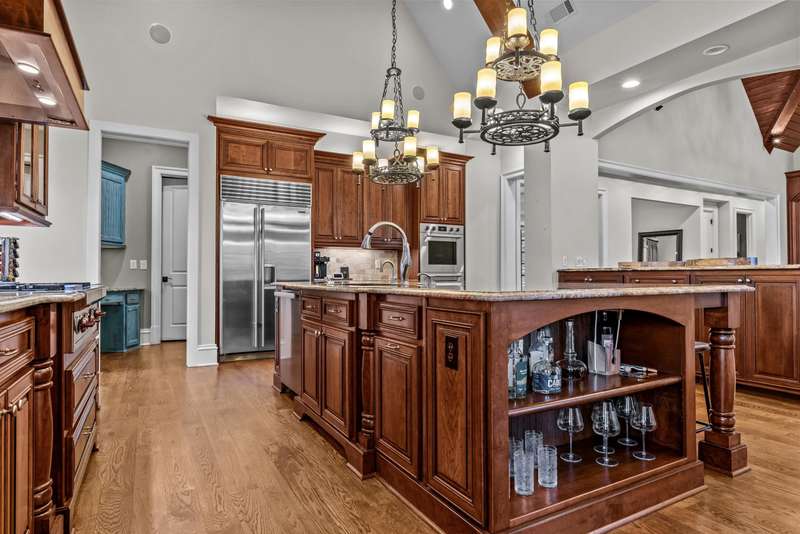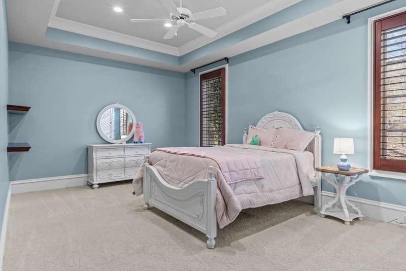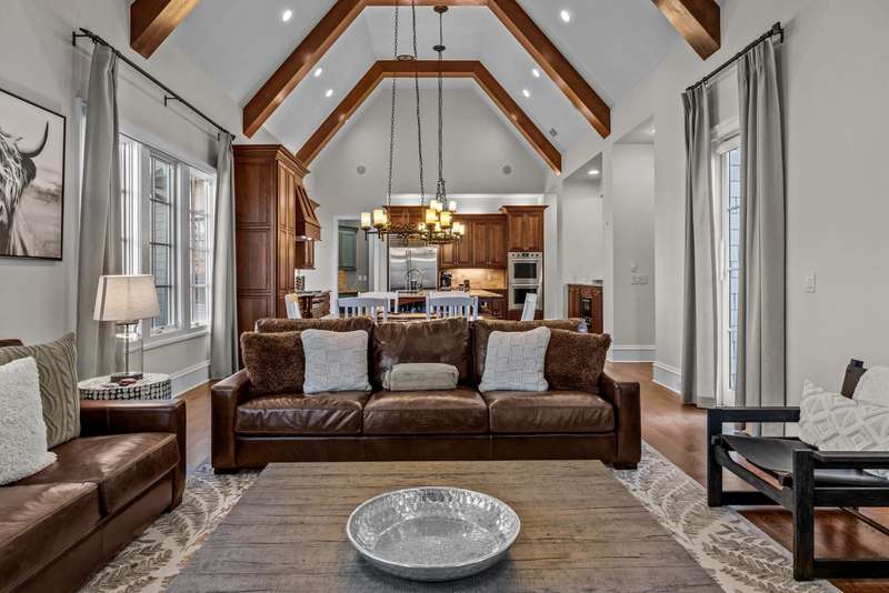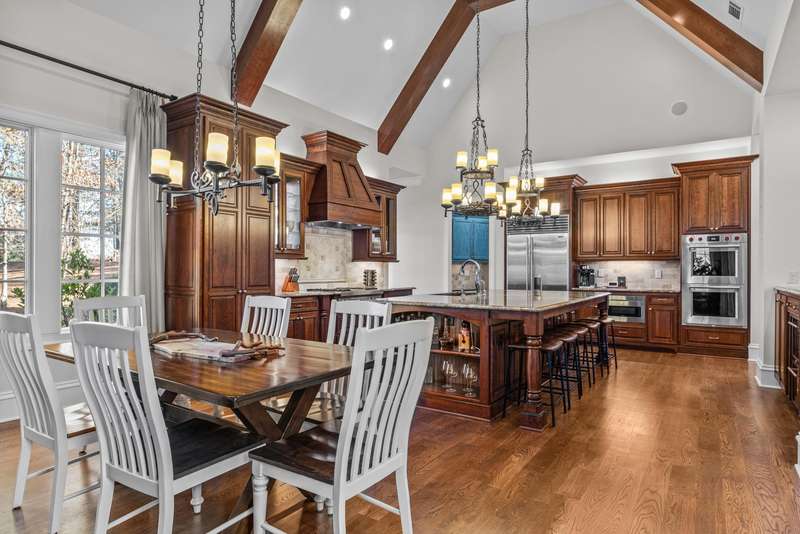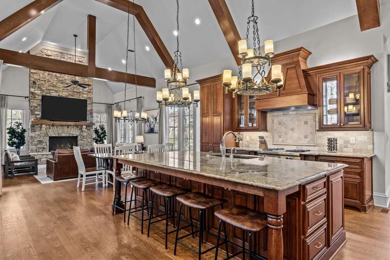 OWNER FINANCING AVAILABLE. Fully furnished, beautiful lake home nestled on almost two acres of property offering quality craftsmanship and details, steps from the boat dock with TWO ASSIGNED BOAT SLIPS. Designed to elevate your lifestyle , this home features 6 bedrooms, 6 full baths, and 2 half baths, and is ideal for both luxurious everyday living and memorable entertaining. The main level welcomes you with an expansive open floor plan, adorned with hardwood floors, wood beams and custom millwork throughout. A striking stone gas fireplace anchors the great room, while the formal dining area and open large kitchen create a space that is as functional as it is beautiful. The kitchen boasts an extra-large island, WOLF stove and ovens, a Sub-Zero refrigerator, and a bar area. Adjacent to the kitchen is a keeping room and a secondary dining area which opens to a spacious outdoor deck. The main level features a luxurious primary suite with a spa-like bath that includes heated floors and dual walk-in closets. A second bedroom with a full ensuite bath is also on the main level for convenience and comfort of visiting family and friends. Above the garage, a large private guest suite provides a tranquil retreat with a generously sized bedroom and full bath. Ascend to the terrace level via elevator designed for entertainment, offering an expansive family and game room, a full bar and a climate-controlled walk-in wine cellar that holds approximately 1,500 bottles. Three additional large suites each with private baths, and an additional half bath complete this level. Step outside to the covered stone patio, which overlooks the lake, perfect for outdoor gatherings and relaxation. This exceptional home is a rare find with almost two acres providing privacy and future opportunities for a pool, outdoor kitchen and even a pool house. There is a nature walking trail in the beautiful backyard. Located near Reynolds’ main entrance, shopping center, hospital, the Ritz Carlton and other community amenities, this home is move-in ready. Membership is available.
