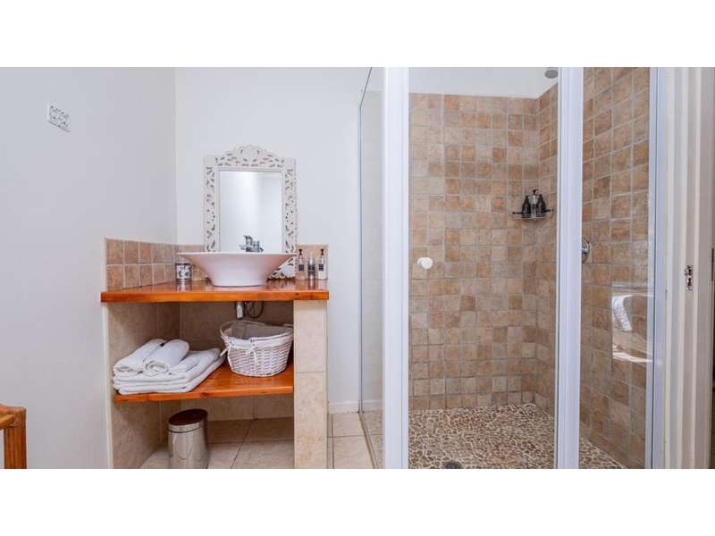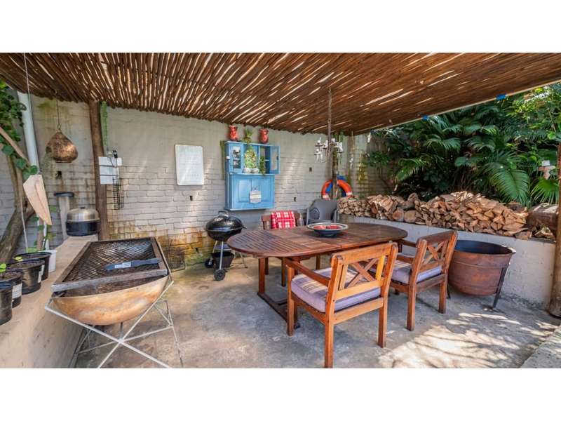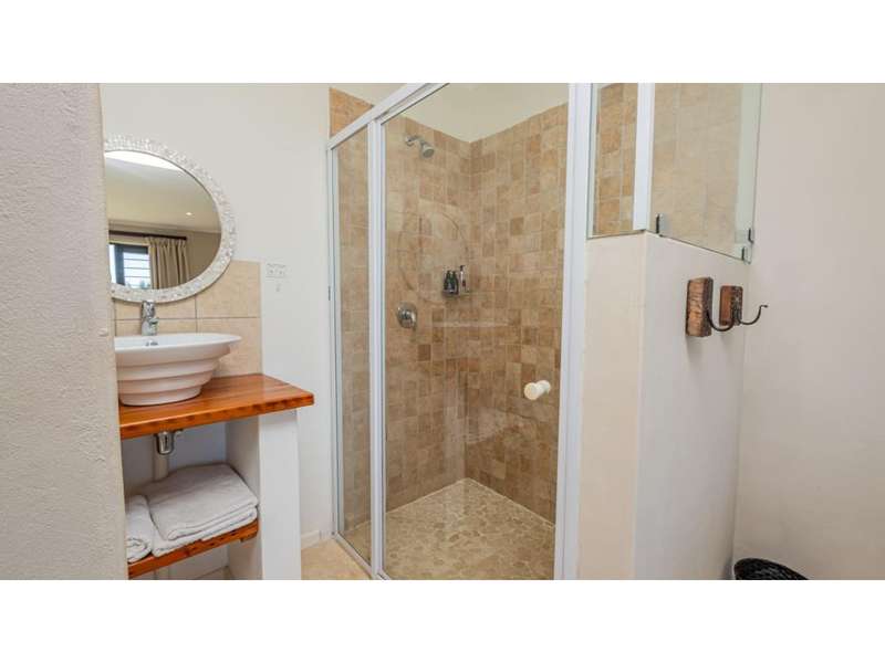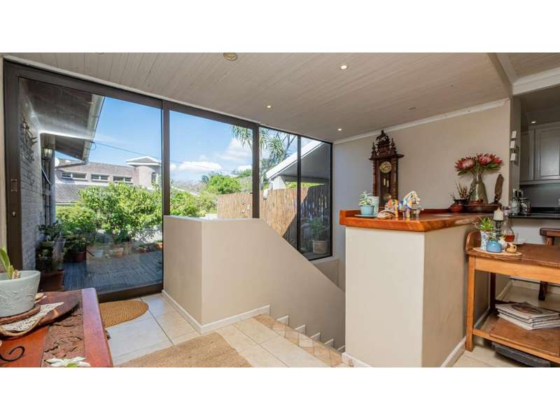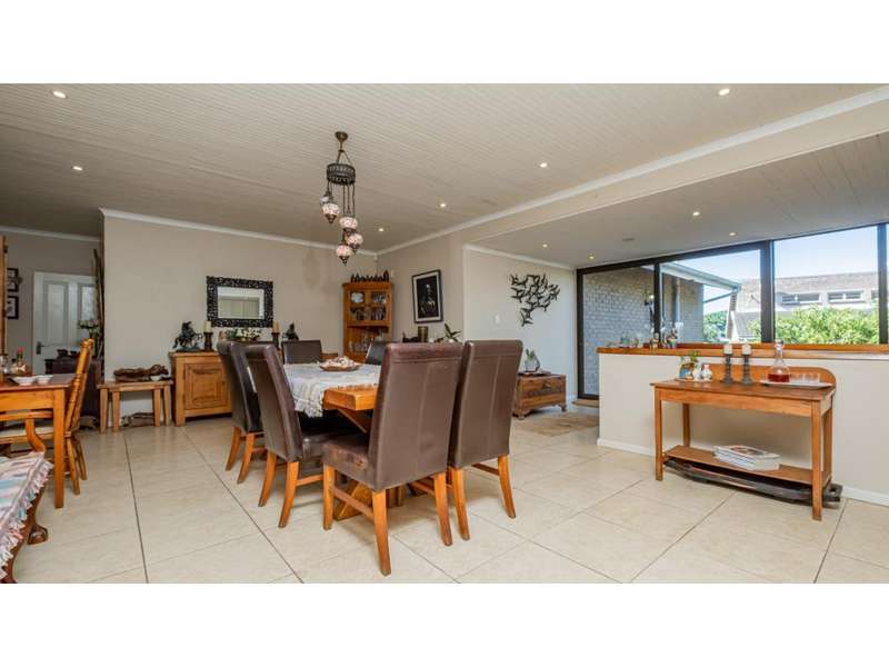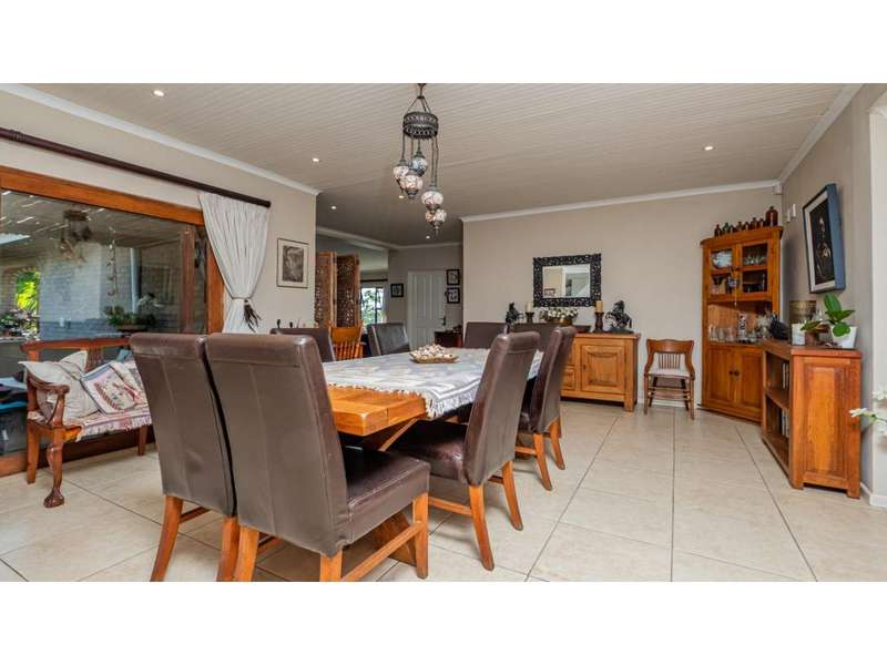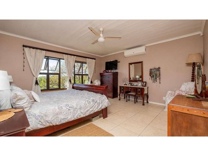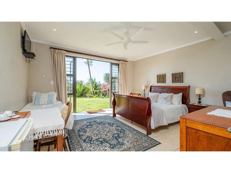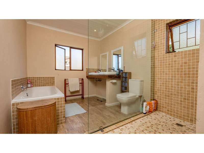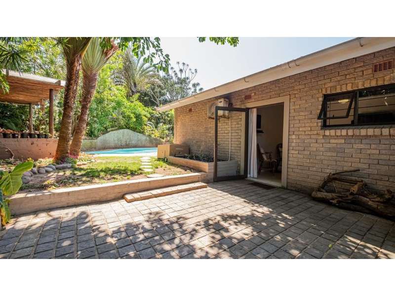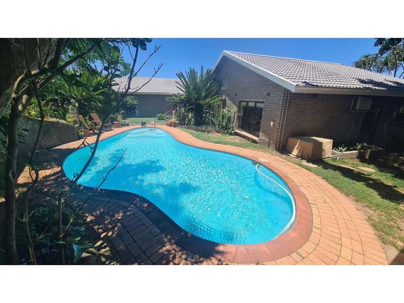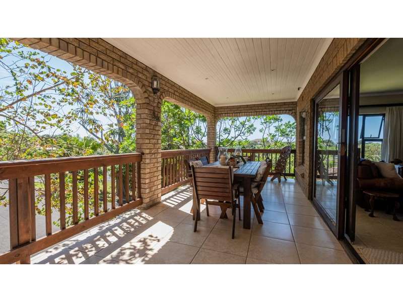A wonderful, inviting home, previously operated as a popular B&B. This expansive home is perfect for the large or extended family and offers 6 generous bedrooms, 4 of which are en-suite. The main house occupies the upper level of this home and is accessed via a pathway leading through the beautiful gardens. Enter into the grand, open-plan living area which comprises a spacious dining area with the lavish kitchen to one side, with a scullery beyond, and the enormous lounge is located at the front of the house, overlooking the gardens beneath, with partial sea views. Sliding doors lead out from the lounge to the balcony at the front of the house. There are sliding doors on either side of the dining area, to one side a protected deck area and to the other, a cosy, covered sitting area with the gardens and pool beyond. The main house offers 3 bedrooms, 2 of which share a full bathroom across the hallway, and the main bedroom enjoys an enormous, full bathroom and a walk-in wardrobe. The lower level of the home enjoys 3 bountiful bedrooms, all of which have doors that lead out to the front yard. 1 of the bedrooms enjoys a full bathroom whilst the other 2 have a shower, basin and toilet. The flatlet is located at the back of the property and offers 2 bedrooms and a large, full bathroom. This home has been lovingly maintained, and enjoys high quality fixtures and fittings throughout. There are ceiling fans throughout, with aircons in 5 of the bedrooms. There is an alarm system, 19,000L JoJo tanks, 1 x 300L solar geyser and 2 back up geysers (totaling 350L). Ideally located, a 650m walk to some of the quieter beaches in the village. Previously operated as a B&B, and would be able to be run as such once again, provided the necessary applications are made to the council.