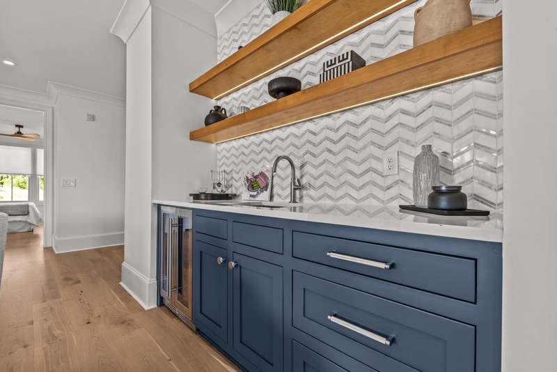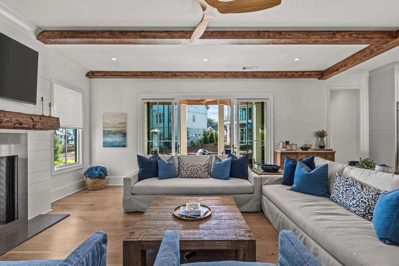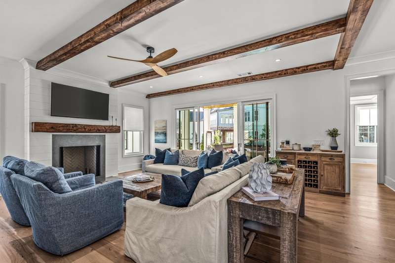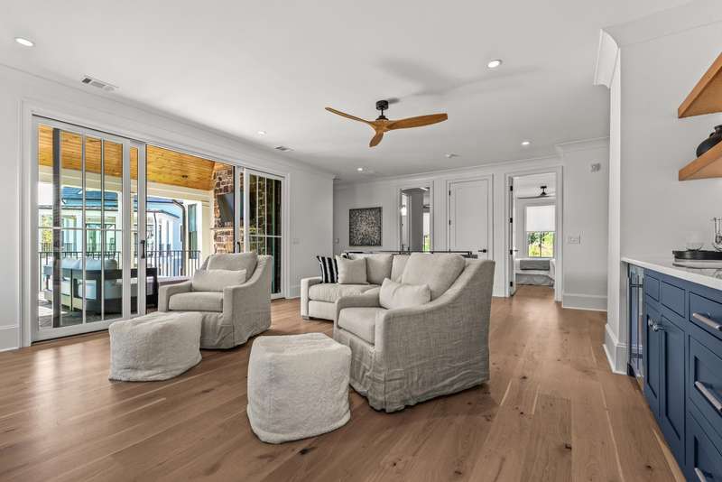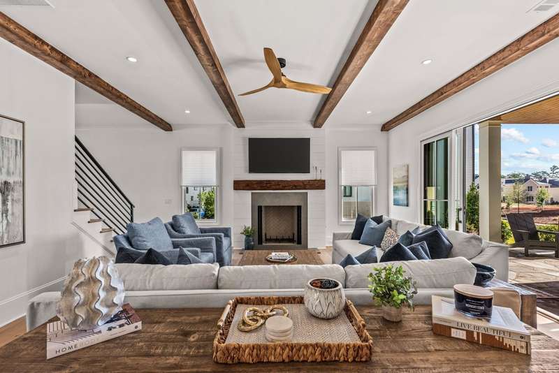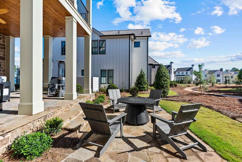 EXPERTLY CRAFTED WITH FLAWLESS ATTENTION TO DETAIL, THIS STRIKING BRAND NEW 4 BED, 4.5 BATH HOME IN RICHLAND VILLAGE OFFERS LUXURY LAKE LIVING JUST STEPS FROM THE POOL, RESTAURANT, GYM, AND MARINA. Set on a desirable corner lot with a large open common area side yard, this home immediately impresses with its stone and board and batten exterior, elevated front porch, and custom handcrafted wood front door. Step inside and you’re greeted by a functional drop zone that opens into a warm, inviting great room where wood beamed ceilings, a shiplap fireplace with a reclaimed 1800s mantel, and Visual Comfort lighting create an elegant yet comfortable feel. The chef’s kitchen blends beauty and function with SubZero, Wolf, and Cove appliances, floor to ceiling inset cabinetry, and a hidden scullery equipped with a beverage fridge. The open dining area flows seamlessly to the expansive front porch, ideal for morning coffee or evening gatherings. Off the great room, a second covered patio provides another outdoor living space perfect for entertaining or relaxing by the fire. The main floor primary suite features coffered ceilings with tongue and groove inset, a spa like bath with designer finishes, and a fully custom walk in closet complete with its own washer and dryer. A custom iron staircase railing leads upstairs to a spacious entertainment lounge with wet bar that opens to a large covered patio with a stone fireplace and mounted television, extending the living space outdoors. Upstairs also offers a flex room perfect for an office or gym, along with three additional bedrooms, each with ensuite baths and custom closets providing privacy and comfort. Every detail has been thoughtfully designed from the flagstone flooring and tongue and groove ceilings on all porches to the Juturna reverse osmosis system, tankless water heater, and three car parking pad with outdoor storage enclosure. This home perfectly combines craftsmanship, comfort, and convenience in one of Reynolds Lake Oconee’s most desirable communities. Membership available.