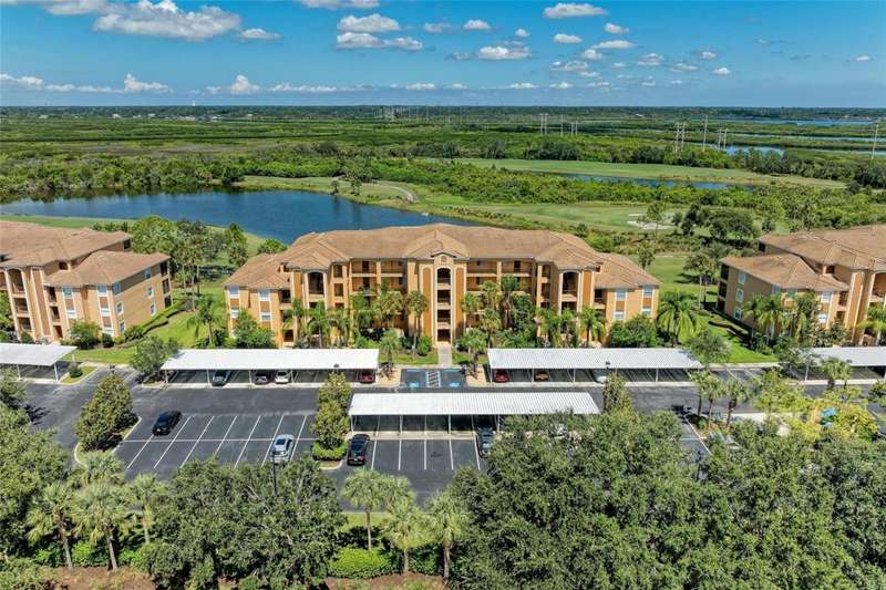 Penthouse Perfection - The One You've Been Waiting For! Original owners, very lightly lived in! This rarely available Brookside Model 4th-floor penthouse condo is offered TURNKEY/ FURNISHED with a DEEDED GOLF MEMBERSHIP -a perfect blend of comfort, style, and location.From the moment you step inside, you'll be captivated by sweeping panoramic views of the lake and golf course, enjoyed from your lanai, kitchen, dining room, and living area. Just steps from the sparkling community pool, it's truly a swimmer's dream.Inside, the sun-filled open layout shines with NO CARPET & FRESHLY PAINTED -only elegant tile and luxury vinyl plank flooring. Crown molding and tasteful upgrades accent the thoughtful design. The dining space flows seamlessly into a chef's kitchen with granite countertops, beautiful cabinetry, stainless steel appliances, pantry, and a cozy breakfast nook-complete with WATER VIEWS. HOA fees include Internet, Cable and Water, you only bill is electric!The oversized primary suite is a private retreat with crown molding and a generous walk-in closet. A spacious guest bedroom ensures family and friends always feel at home, while the Murphy bed adds versatility with a beautiful extra room. Additional highlights include: Separate laundry room Private storage with built-in shelving Expansive screened lanai-the perfect spot for endless sunsets.Step outside your door and enjoy the newly reimagined River Strand Golf & Country Club (renovated January 2026), where a true resort lifestyle awaits: Redesigned Andrew Green 27-hole championship golf course 9 Har-Tru tennis courts & 8 pickleball courts 2 resort-style pools + 6 satellite pools 2 state-of-the-art fitness centers NEW RENOVATIONS...coming soon as of Jan. 2026 .. clubhouse with restaurant, grill room & tiki bar Ideally located near I-75, University Town Center, and Florida's world-famous beaches, this penthouse offers the ultimate in luxury, leisure, and convenience.Welcome home to your private paradise-schedule your exclusive showing today!