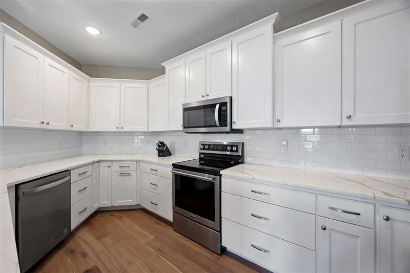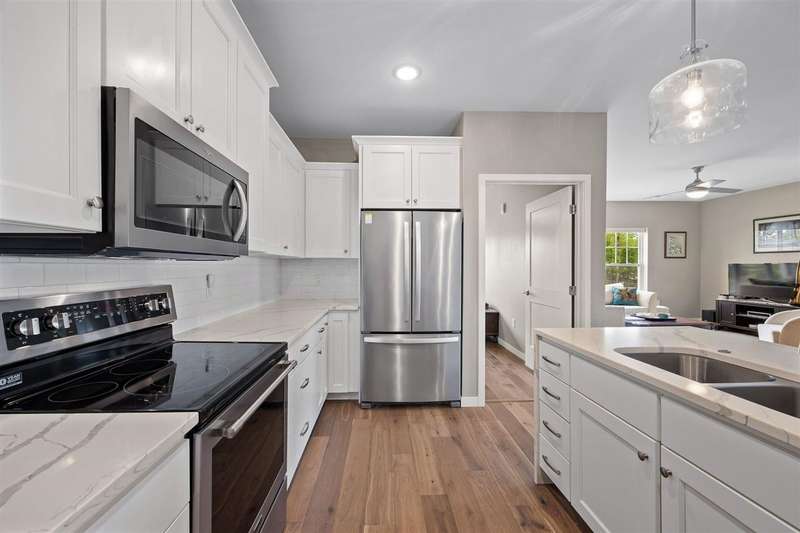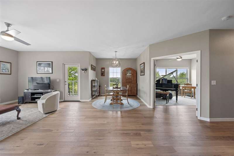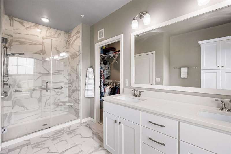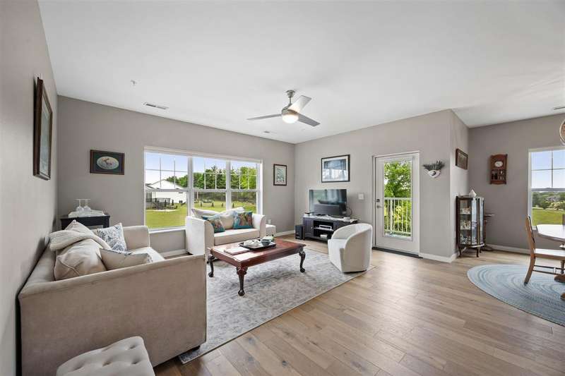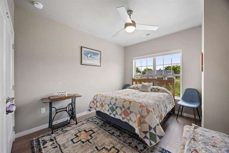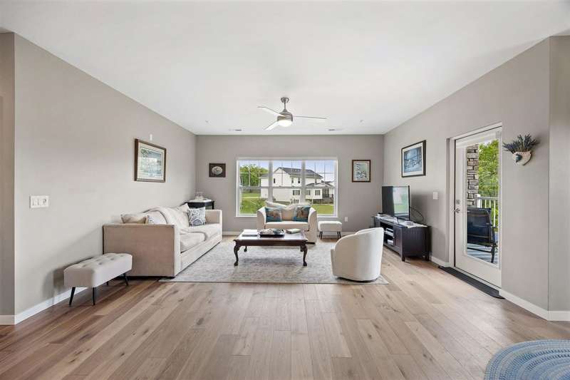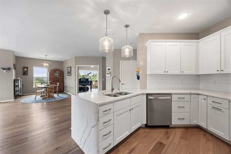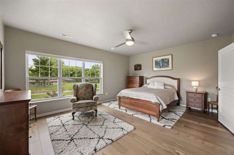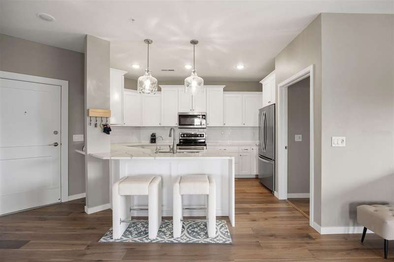 Experience upscale living in this stunning 3-bedroom, 2-bath condo located on Iowa City’s desirable east side. This meticulously designed home features high-end finishes throughout, including a stylish kitchen with quartz waterfall countertops, subway tile backsplash, a breakfast bar, and sleek white cabinetry. Ideally located at the end of the hallway, this unit offers enhanced privacy and quiet compared to interior units. Flooded with natural light, the open-concept living area showcases elegant lighting, and two private terraces with beautiful views. The primary suite offers a spa-like retreat with a spacious tiled shower and modern fixtures. Additional amenities include geothermal heating and cooling, two secure underground parking spaces, elevator access, a welcoming entry and common area, and a community exercise room.