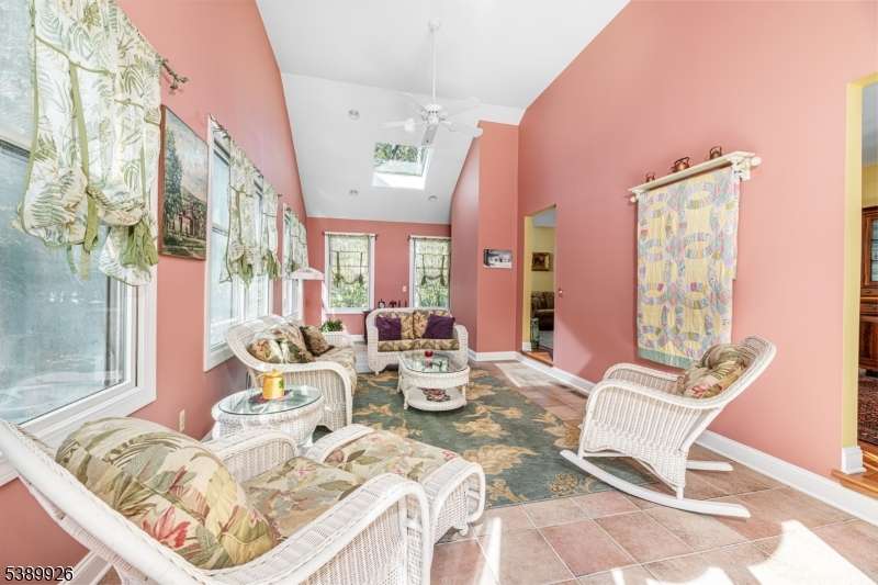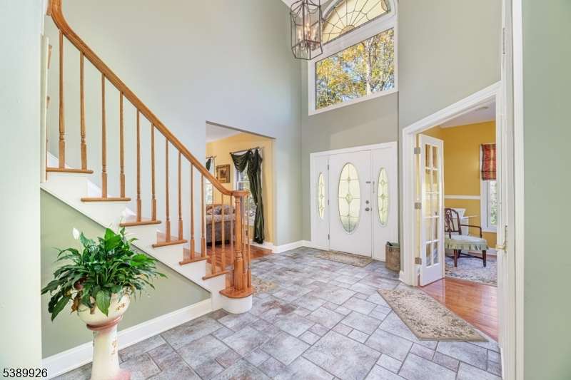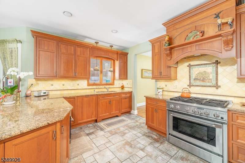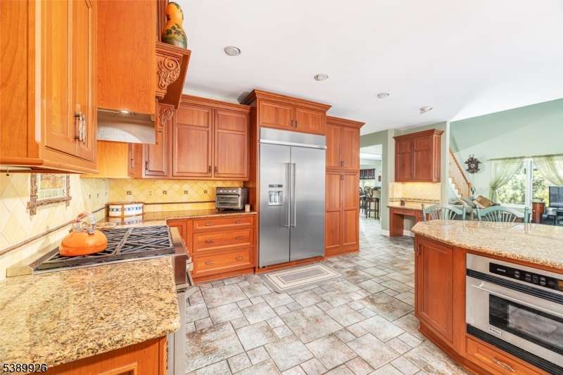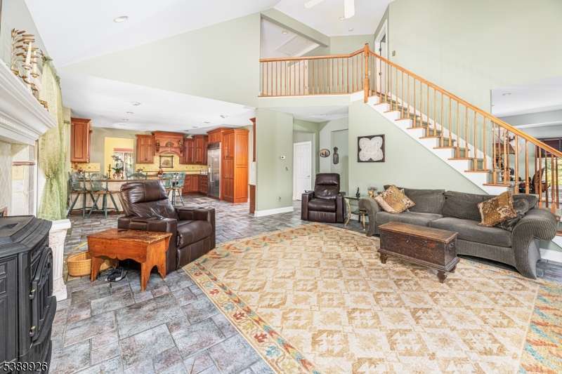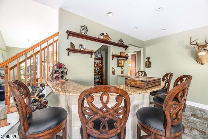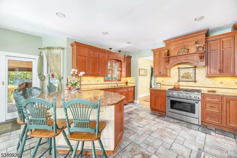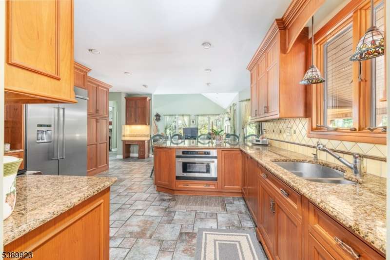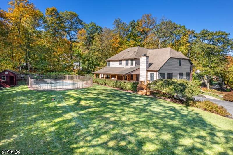 Welcome to Stonehedge Estates nestled in on a forest lined road just 5 minutes to Commuters Rt. 23 and park and ride to NYC! This elegant 4 bedroom, 3-1/2 bath is a 4300 Sq. ft. Colonial! The foyer opens with cathedral ceilings ceramic tile flooring and a solid oak staircase. The Gourmet Kitchen has counter height seating for 5 granite counter tops, custom cherry cabinetry, luxury appliances and custom tile back splash. Access the covered cedar porch 70 foot long from sliders to the kitchen area, or relax in the spacious great room where there is another oak staircase and a wood burning fireplace with pellet stove insert. The game room off the great room, where a marble and granite wet bar is custom fitted with shelving. An office off the foyer has French doors, oak floors, and built in bookshelves. The formal living room and dining rooms also have oak floors and a second fire place. The main floor is completed with a powder room and Sun room with skylights, ceiling fan and Pellet Stove with sliders to the deck. Four bedrooms and 2 baths as well as laundry room are on the upper level. The primary bedroom has a walk-in closet with walnut floors, ensuite with jetted tub and shower, marble floors, and counter tops. A finished walk out basement holds a media room, 2 flex rooms and full bath. This beautifully landscaped yard offers a large covered porch, an inviting swimming pool and 2 Custom Cedar Sheds! This paradise is a commuters dream! Hardyston's best kept secret.