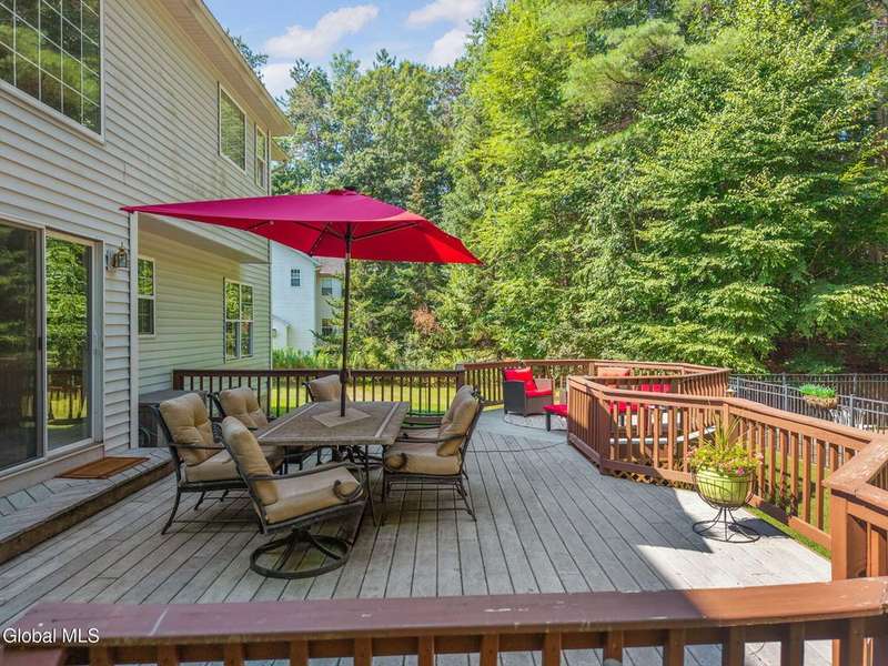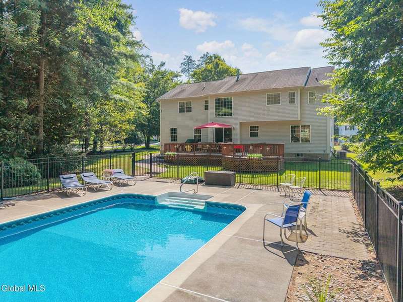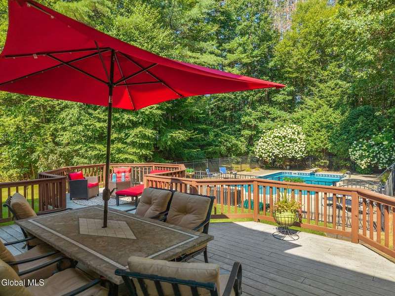 Experience all Saratoga has to offer w/Wilton's low taxes. Corner lot home in a sought after neighborhood is your private paradise. Completely renovated in 2025, there is abundant natural light & wonderful flow w/ample space including a dedicated office. The second level boasts a luxurious primary suite complete with a massive brand new bathroom, his & hers closets w/professionally designed walk-in closet. 3 oversized bedrooms, bath & laundry complete w/new flooring throughout. Huge bonus flex space in finished basement for kids' playroom/gym/media/storage.There is also plenty of outdoor space to relax or entertain friends on the deck & in the beautiful heated inground pool. Oversize grill w/gas line to house. Close to the track, shops, dining & mall yet a quiet retreat from the crowds.