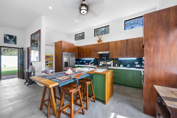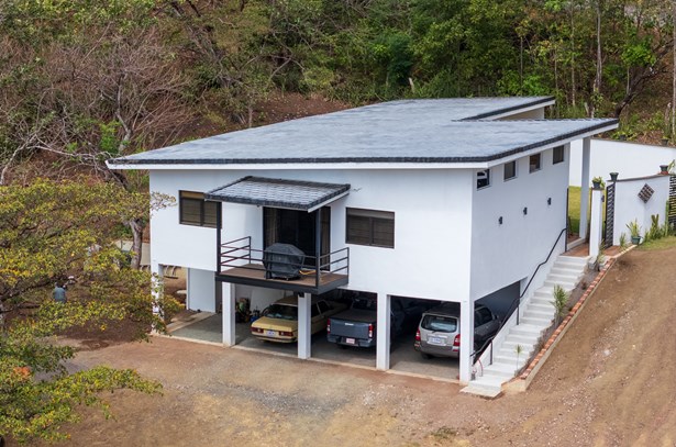 Welcome to Casa Campanas! Located in the sought-after gated community of Rancho Cartagena, this stunning property offers a unique blend of luxury and craftsmanship, featuring handpicked custom details throughout. Situated just 20 minutes from the beach, Rancho Cartagena provides the perfect balance of privacy and accessibility, offering a peaceful retreat surrounded by nature.The home boasts high-tier construction quality with custom finishes, including custom contemporary tiles, carefully chosen to ensure a long-lasting build and elevated living experience.As you enter, you're greeted by a beautiful courtyard that sets the tone for the home's elegance and charm. The entrance is designed with Nicaraguan handmade bricks, adding a touch of artisanal craftsmanship before stepping into the main living space.Inside, the home features luxurious marble backsplashes that enhance the beauty of the kitchen, while custom quartz countertops and a one-of-a-kind quartz sink complete the space. The solid wood custom teak cabinets, designed with soft-close technology, provide both function and style. Throughout the home, all doors are crafted from custom teak, adding warmth and sophistication. Handmade teak furniture further elevates the interior, creating a welcoming and timeless atmosphere.The kitchen is equipped with state-of-the-art appliances, including a German-engineered gas and electric oven, perfect for the discerning chef. For outdoor cooking, enjoy the convenience of an infrared BBQ on the spacious patio. The home is also equipped with a gas water heater and dryer for added comfort and efficiency.Each bedroom features walk-in closets with custom wood interiors, offering ample storage and a touch of elegance. Additionally, the property includes a separate employee living quarters located below the house, providing privacy and convenience for staff or guests.Designed for optimal energy efficiency, Casa Campanas also features an anodized aluminum insulation roof that ensures both durability and temperature control year-round.The property also includes a generous 4-car garage, complete with a locking storage area and built-in shelving, providing secure space for tools and equipment. A circular driveway leads to the entrance, offering easy access and an impressive arrival.This is a rare opportunity to own a truly exceptional home in one of Guanacaste’s most secluded and desirable communities. Experience the perfect blend of luxury, craftsmanship, and tranquility at Casa Campanas.
