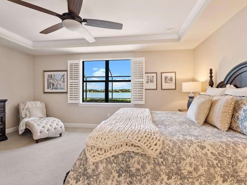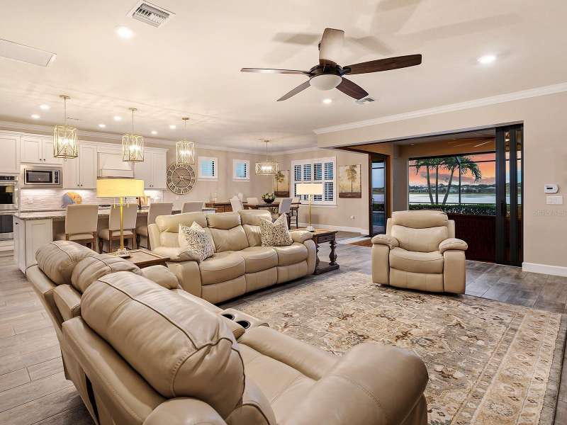 BEST OPPORTUNITY FOR A POOL HOME IN SHOREVIEW AT AN IMPROVED PRICE! Superior location and amazing lake views are within reach! Shoreview offers an unbelievable location just 0.5 miles from Waterside at Lakewood Ranch with shopping, dining, park, and community events all within walking distance of your lakeside home. Boasting an impressive 66’ of lakefront views, this 2018 dual level Pinnacle floor plan by Pulte Homes offers a spacious, open floor plan with flexible spaces for every lifestyle. Enjoy enhanced privacy with a greenbelt and walking trail across the street with no neighbors outside your front door. Inside you will be impressed with porcelain wood-look plank tile flooring, crown molding, a neutral color palette, plantation shutters, and the peace-of-mind of having 2025 IMPACT windows. In the open floor plan, disappearing corner pocketing sliding glass doors highlight the lake view no matter if you’re in the spacious great room, upgraded kitchen, or dining room with designer chandelier. The seamless indoor and outdoor experience is enhanced by a large covered entertaining area with oversized ceiling fan, 2020 motorized hurricane and shade screen, and 2019 lights integrated into the pool cage. Whether it’s a sunny Florida afternoon or a romantic twilight sunset, the heated saltwater pool and spa will be your favorite place to relax and take in the lake views with additional privacy hedges around the lanai for your own private escape. The upgraded kitchen is smartly designed with a central island with counter-height seating and designer pendant lighting, crisp white cabinetry with molding, stone counters, glass mosaic tile backsplash, 2023 Kinetico water filtration and reverse osmosis, and walk-in pantry. The 2018 stainless steel KitchenAid appliance suite makes cooking meals a delight with gas cooktop and double wall ovens, plus enjoy an upgrade to a 2022 Bosch french door refrigerator. Enjoy the lake views from the moment you wake up in the primary suite with tray ceiling, plus en-suite primary bathroom featuring an oversized walk-in closet with custom shelving, dual sinks, stone counters, and upgraded walk-in shower with porcelain tile and built-in bench. Working from home is a delight in the private study with double doors. Guests can enjoy equal luxury on the main level in two guest bedrooms both with walk-in closets, and two full guest bathrooms; or relish in additional privacy in the oversized guest bedroom and full bathroom on the second level. The upper story also has a massive bonus room with endless potential as a fitness room, office, media room, play room, or anything your lifestyle desires. The laundry room doubles as a mudroom with extra cabinetry and counterspace. The 3-car garage is spacious and includes 2021 epoxy flooring and custom storage shelving. Peace of mind is secured with 2025 impact windows, 2025 rain gutters, 2025 smoke and carbon monoxide detectors, and 2023 Kinetico whole-house water softener. Shoreview at Waterside features 144 acres of lakes, clubhouse with gathering space, kayak launch, beach area, lighted tennis and pickleball courts, events lawn, and fitness center. Located just minutes from Waterside you are a short distance of shopping, dining, farmers market, parks, events, and more, while maintaining proximity to all Sarasota has to offer including world-class beaches. Lakewood Ranch is the top multi-generational community in the country for 7 years in a row!