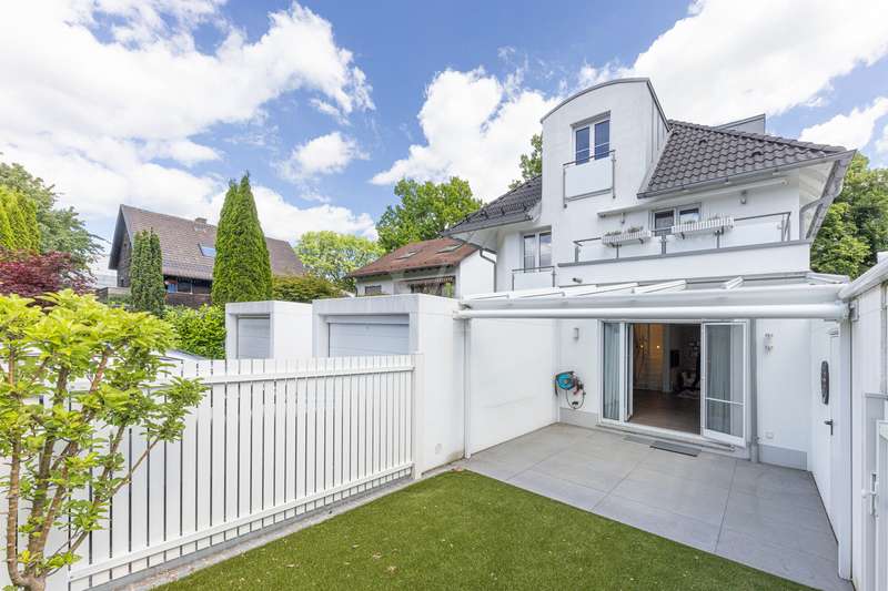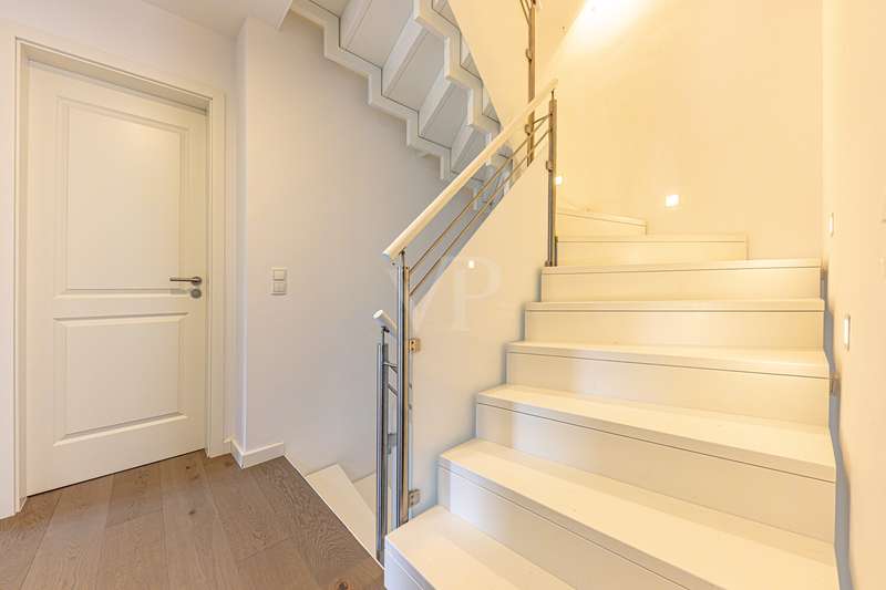 Welcome to your new home, a semi-detached house that combines elegance, functionality and maximum living comfort. You can feel the inviting atmosphere as soon as you enter: the spacious hallway with tasteful checkroom welcomes you and leads directly into the heart of the house, the open-plan living area. Here, living, cooking and enjoying merge into a harmonious living space. The modern designer kitchen with high-quality appliances, elegant surfaces and spacious work areas leaves nothing to be desired and is perfect for anyone who sees cooking as a passion. The stylish sliding glass door that separates the staircase is a special architectural detail. It ensures transparency and brightness, successfully combining aesthetics with function. Two south-facing and south-west-facing terraces open up a variety of opportunities to enjoy life outdoors, whether it's a sunny breakfast, relaxing afternoons or cozy evenings with friends. Bright, versatile rooms await you on the upper floor, which are ideal as a children's room, guest room or home office. A separate dressing room with custom-made fittings offers practical storage space and comfort. One of the rooms also leads onto a west-facing balcony. The family bathroom impresses with modern fittings: level-access shower, elegant bathtub, double washbasin and high-quality fittings. The top floor presents itself as a light-flooded studio, perfect for creative ideas or retreats. Dormers create a sense of spaciousness, while custom-fit cupboard systems keep things tidy. The floor is rounded off by an elegant daylight bathroom. The basement also opens up attractive usage options: A large room with its own bathroom is ideal as a guest area, fitness room or private cinema. This area is complemented by a boiler room and laundry room as well as additional storage space. The excellent energy efficiency of the house is particularly noteworthy. Thanks to modern construction methods and innovative technology, you benefit from low energy consumption, low ancillary costs and sustainable living comfort that will also meet future requirements. A garage and a carport provide convenient parking and space for bicycles or garden tools. This property combines well thought-out architecture, high-quality fittings and an inspiring living experience. A home that offers you and your family space to live, work and feel good. We cordially invite you to get to know this special semi-detached house during a personal viewing.