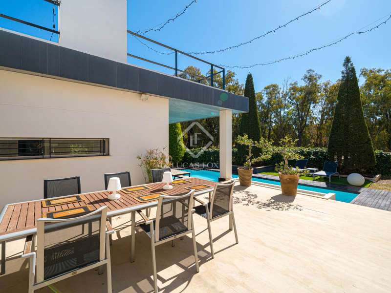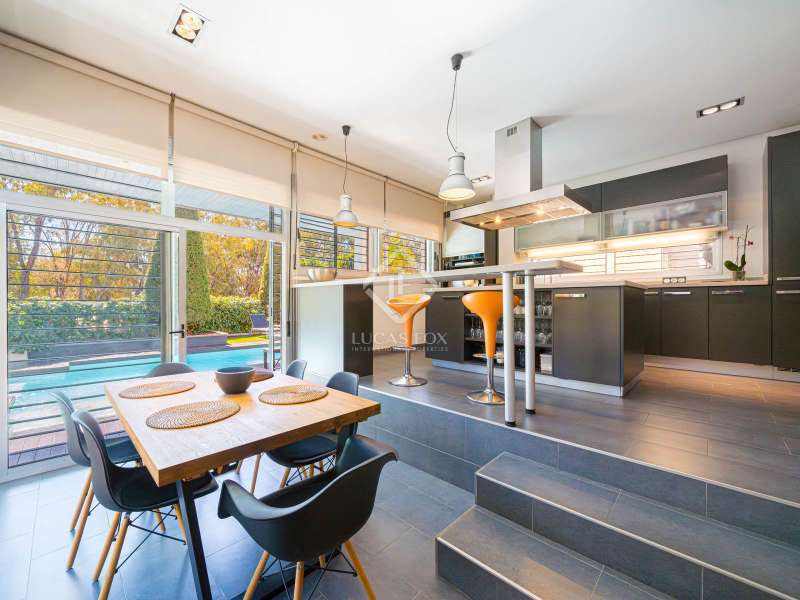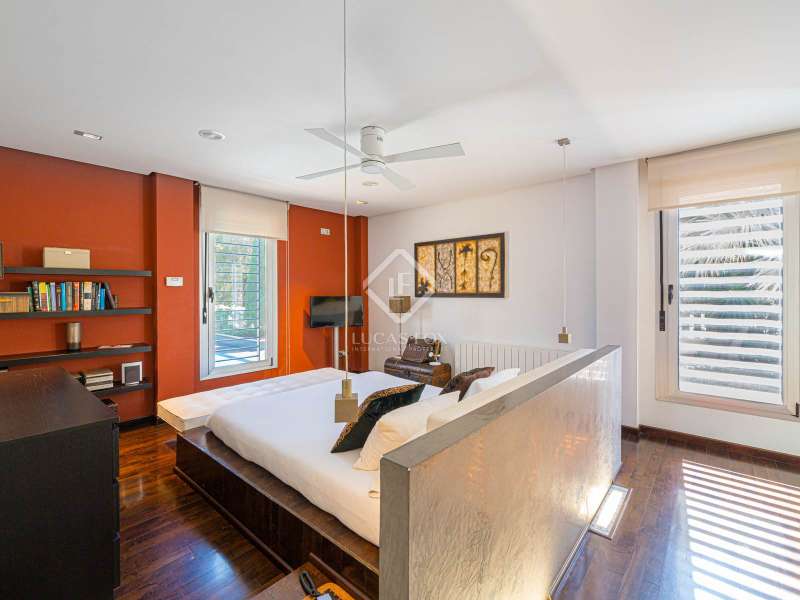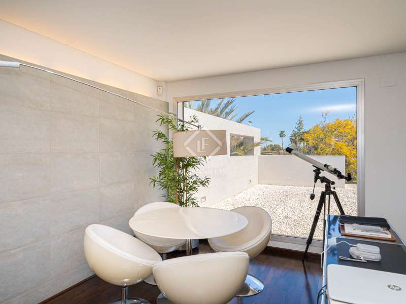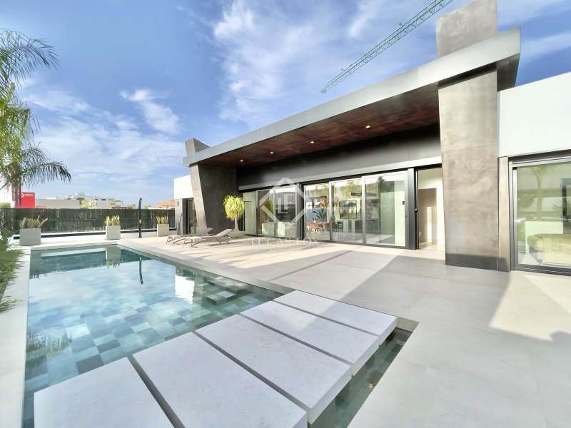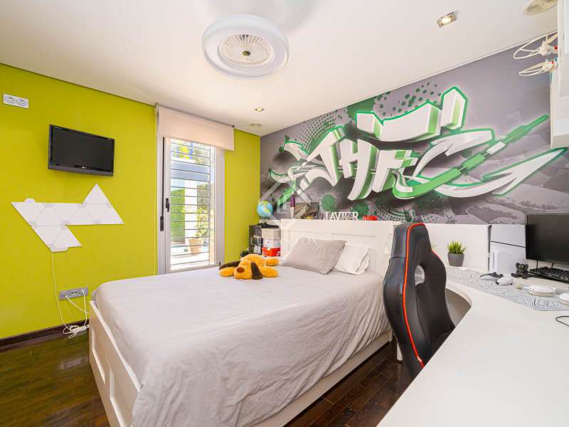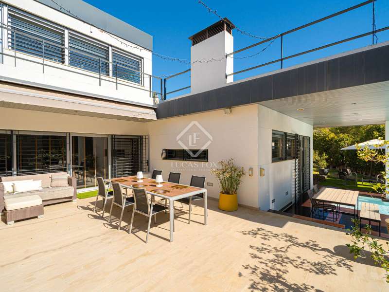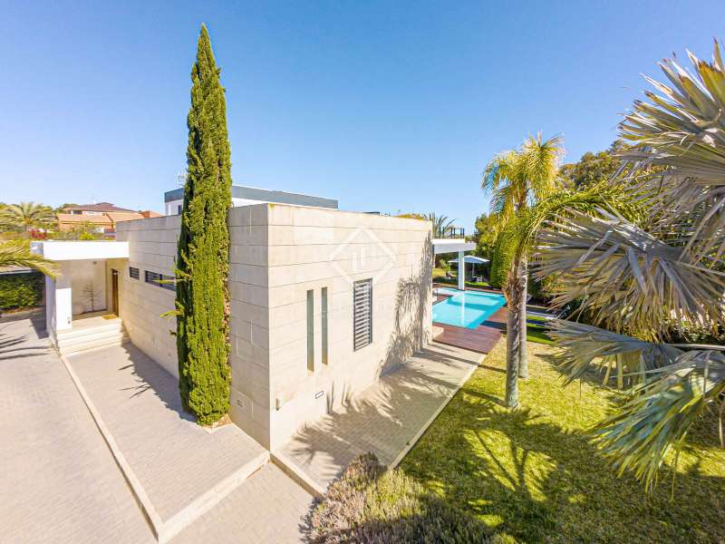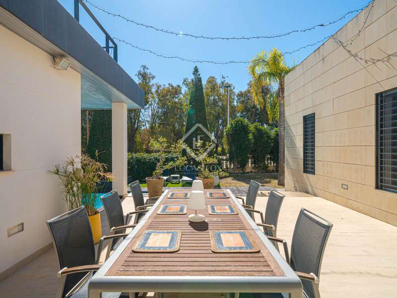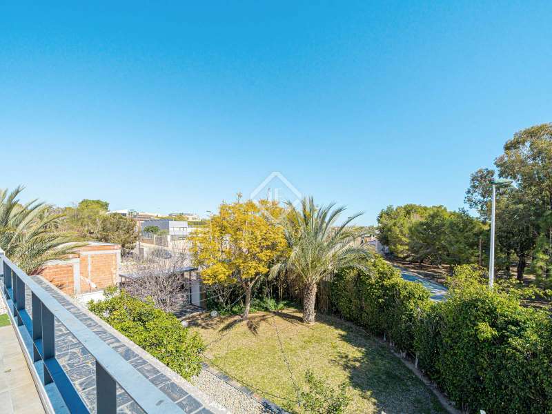 Lucas Fox presents this exclusive villa in the Valverde area. The property, designed by its owner in 2004, has an area of 371 m² on a 978 m² plot . It is designed and built for your enjoyment, ideal for a family looking for comfort and spacious spaces. Unlike most properties, this villa is distributed with the main rooms on one floor, for greater comfort. It has a bright living room followed by the dining area and a magnificent separate kitchen, with a breakfast area and direct access to the garden, the barbecue area and the main terrace. This area is perfect for living almost all year round. On the same floor we have the bedroom area composed of the main bedroom with its private bathroom and dressing room and two secondary bedrooms that have an additional bathroom . In addition, here we find the toilet for the day area and the laundry room with direct access to the exterior. Going up the stairs, on the upper floor we have a very large study area that could be reconfigured, if necessary, into one or two bedrooms and a bathroom. In addition, it is completed with a wonderful terrace with unobstructed views. Going down to the lower ground floor, we have a multipurpose room, a warehouse area and a machine room. Exterior, we have the main terrace with a cover next to the kitchen and a large open area with access from the living room. A perfect area for family dinners and parties with friends. Likewise, we have the large pool area with sun loungers, the barbecue area, the garden and, on the other part of the house, the covered parking area for two cars. The construction materials are of excellent quality and highlight elements such as the installation of solar panels and electric car charging system, aerothermics heating system, air conditioning system, high quality doors and windows, wooden floors in the bedroom area and living room, marble and iroko flooring on the terraces and around the pool, completely renovated barbecue area, impressive garden with automatic irrigation system and other features. If you are looking for an independent villa ready to move into in a green and quiet area, with a lot of privacy, close to the sea, Alicante and the airport, call us to schedule a visit.