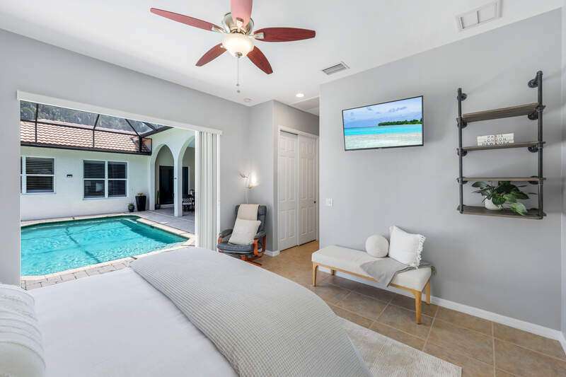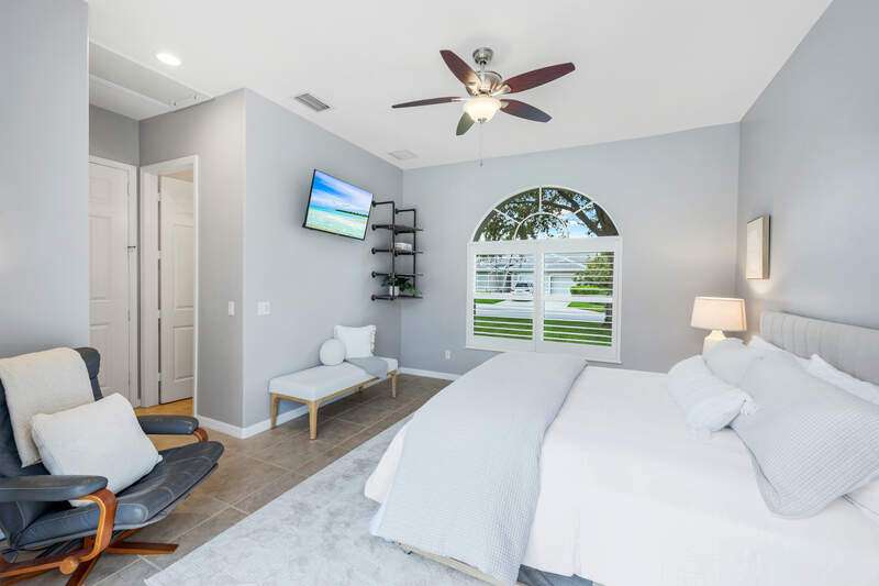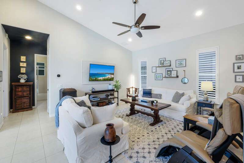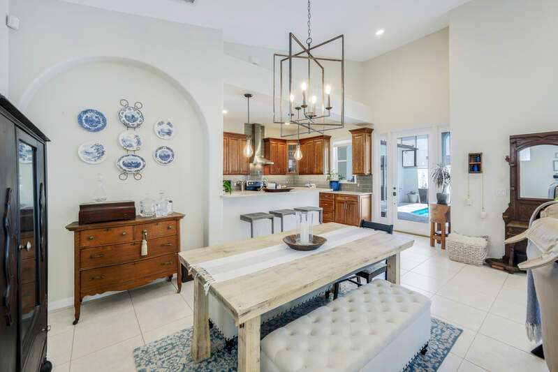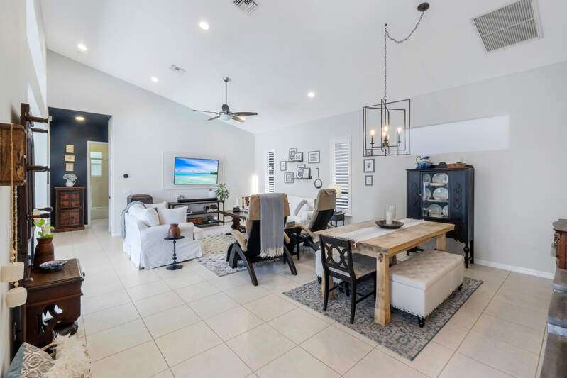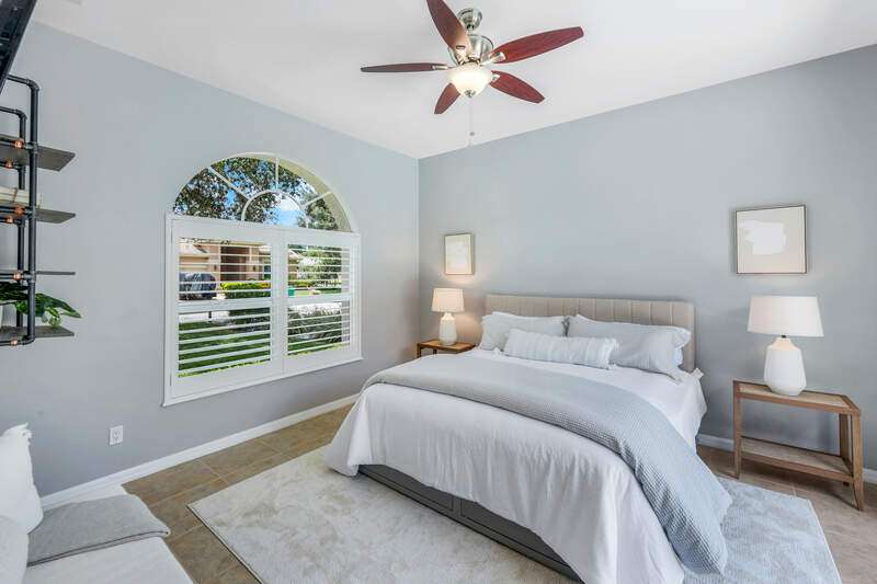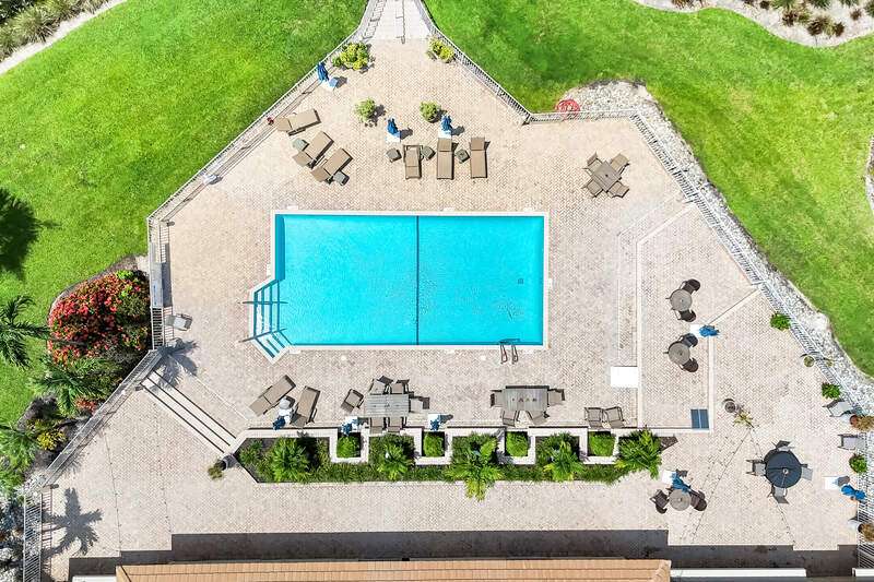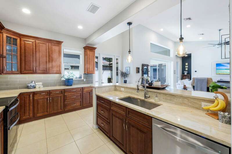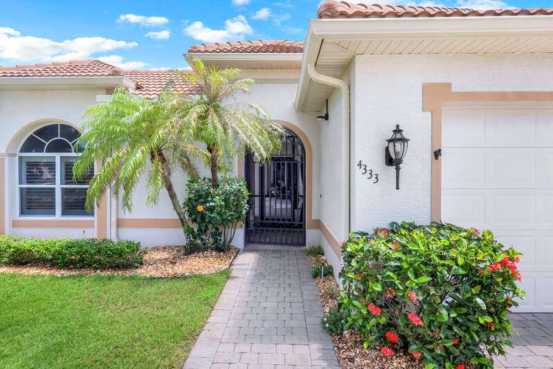 Come see this gorgeous & unique courtyard pool home with private casita that can be used as a guest suite or home office. This 3 bedroom 3 bath home has wonderful curb appeal with its brick paved front drive, landscaped lot & screened entryway leading you into your private courtyard. Relax pool side or enjoy dining alfresco as this floor plan offers the best of both worlds for indoor and outdoor living space. Fabulous open concept floor plan that is great for entertaining family and friends. The kitchen has been updated with wood cabinetry, stainless steel appliances, quartz counters breakfast bar and glass tiled backsplash. The home features a neutral paint palette, with volume ceilings, plantation shutters, updated lighting, tile flooring throughout the living areas and wood laminate flooring in both bedrooms. The primary suite has an in-suite bath with quartz counter, dual sinks, wood cabinetry, shower and jetted soaking tub. Longshore Lakes is a community of all single family homes and offers guarded gate access, a club house that is the process of being updated and features a restaurant & bar, clubhouse with pool as well as tennis courts and recently passed addition of pickle ball courts. Sold with a 1 year home warranty for the new buyer at closing.