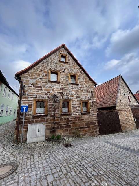 CHARMING FORMER FARMHOUSE WITH VERSATILE USE POTENTIAL This charming former farmhouse from 1897 combines historical charm with modern usage options. The property impresses with its versatile design potential, particularly the large barn, which has already been partially converted. CHARM MEETS COZINESS The main building offers a living space of approx. 175 m² and a cozy living atmosphere. On the first floor there is a cozy living room, a dining room with direct access to the kitchen and a bathroom with bathtub. The upper floor comprises two bedrooms, a separate WC with shower and additional storage space in the attic. Part of the spacious barn has already been converted into a separate living unit. This includes a modern kitchen, a cozy sleeping area, a bathroom and a small terrace for relaxing. In the process, the gable wall of the barn was elaborately stabilized with a large gate, which serves as an ideal basis for further expansion. The area of the barn that has not yet been converted offers considerable potential for expansion, for example by adding further vacation apartments or additional living space. The lower area of the barn can be ideally used as a garage or workshop. The property has a plot area of 327 m² and an additional usable area of 178 m². It offers a unique combination of historical flair, existing living quality and future development potential. This property is suitable for both owner-occupiers and investors interested in flexible use. MOVE IN AND FEEL GOOD If you are looking for a cozy property for the whole family that offers further expansion potential - this farmhouse in Prichsenstadt is just right for you! Please do not hesitate to contact us for further information or to arrange a viewing.