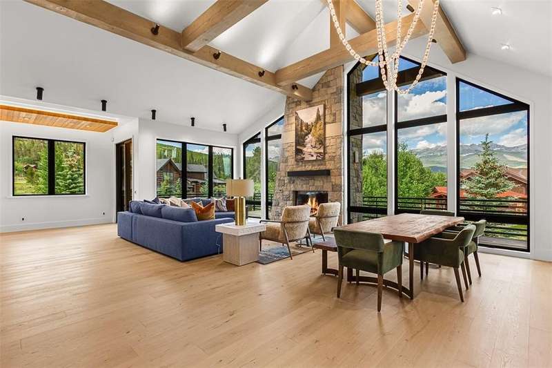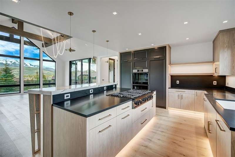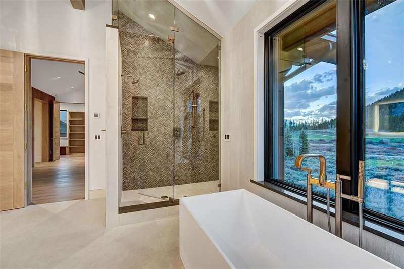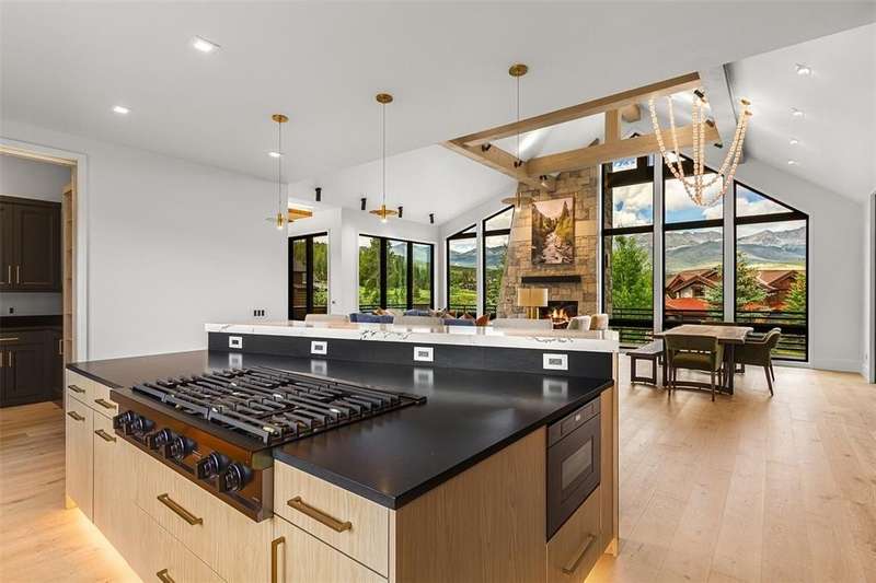 An absolute must see! This home is a stunning collaboration between two of Summit County's finest, Allen-Guerra Architecture and Ivan Stanley Fine Home Builders. Immaculate attention to detail combined with unique features truly sets this home apart. Very high-end finishes and beautiful modern lighting create a welcoming yet stylish space. The floor plan seamlessly blends large open spaces with some of the best outdoor living on the market, making it perfect for large family gatherings and entertaining guests. Enjoy massive views of the Ten Mile Range from the huge front deck, or take in breathtaking sunsets while lounging at your outdoor fireplace. The large back patio is hot tub ready and has its own spa bath entrance, a testament to the home's thoughtful design. The primary bedroom looks out at the 3rd green of the Elk 9 at Breckenridge Golf Club. In the winter, the Nordic ski trails weave around the neighborhood and help transform this location into a winter wonderland. The floor plan features 5 bedrooms, all with en-suite baths, two large living rooms both with wet bars and wine storage, and a 3 car garage.