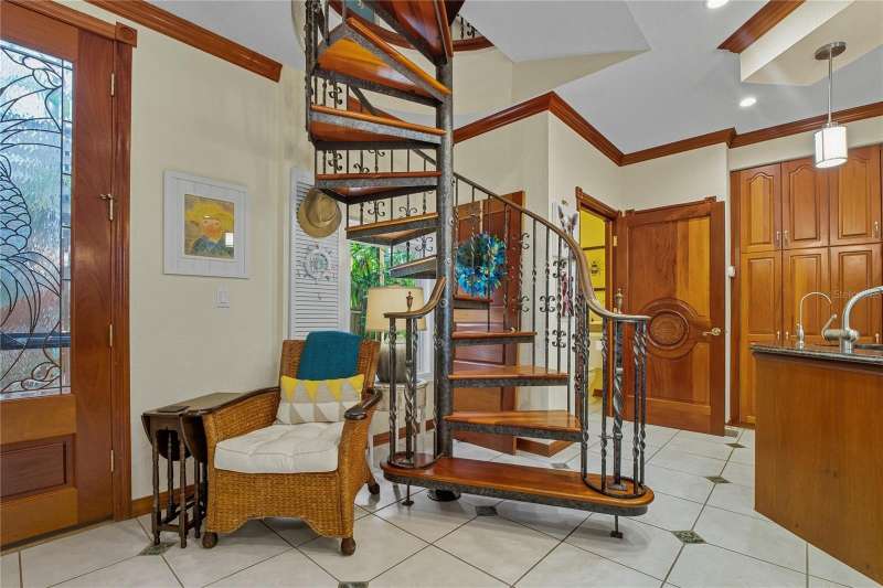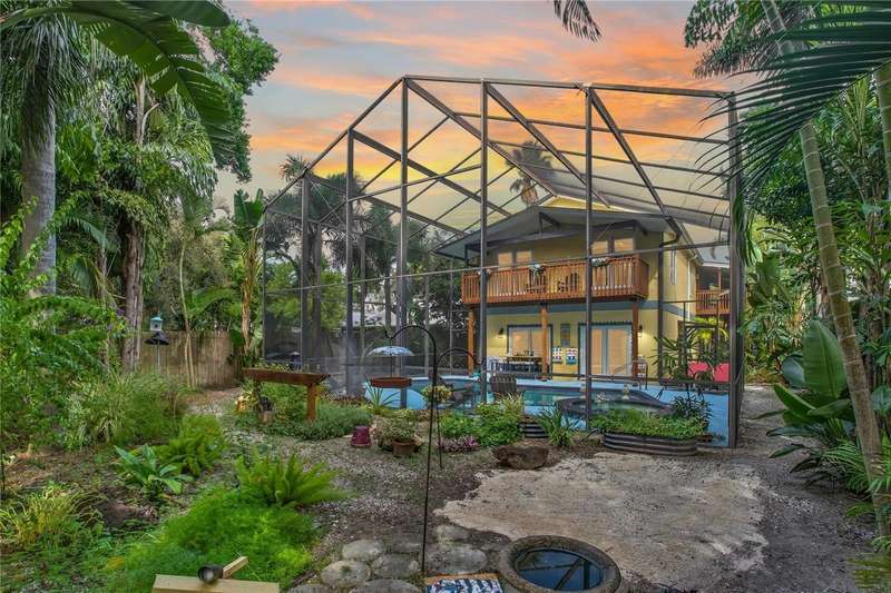 Under contract-accepting backup offers. ATTENTION, This is Currently the ONLY SINGLE FAMILY RESIDENCE HOME AVAILABLE in Ozona that is NOT in a FLOOD ZONE! High & Dry, No Flood Insurance Required, and NO Damage from last year’s hurricanes! Located in the Highly Desirable Old Florida Golf Cart Community of Ozona. Bursting with Eclectic Charm and Zoned for some of the Best Schools in the entire state! Brand New Roof October 2025 and New Exterior Paint May 2024. Bring your Buyers who Despise the “Cookie Cutter Home”. This home exudes Artistic Flare and is a true Architectural and Craftsmanship Masterpiece. You will Love everything from the Custom Hand-Crafted Doors, to the Wrought Iron Spiral Staircase & Gates, along with Gorgeous Stained Glass splashed around and some really cool Etched Icarus Glass upstairs. If you are looking for that Special Unique Home that Absolutely fits the Community it's situated in, then you have Found what you are looking for. Walkability is key here. You can walk to any of your favorite bars, restaurants or shops, or head west a couple of blocks to watch Amazing Sunsets or head east a few blocks to the Pinellas Trail. If there is anything about living a Laidback Lifestyle that allows you to either Relax in your Own Private Backyard Oasis, or listening to soft, gentle waves along our Gulf Coast Beaches, then not only have you found the Perfect Home, but also the Perfect Location!! Picture, everyday being able to launch your boat from one of the many local Marinas, or get your outside exercise on the trails, or kayaking the waterways, or ride your bike or golf cart to any of the many restaurants, shops and bars! In other words, Live where others Vacation!! This home has so many Bonuses, but one really special feature is the Rooftop Balcony overlooking Orange St. where you can catch a Seasonal Golf Cart Parade or any other Ozona Events that give you a Private Box-Seat Experience to all of the Fun. Another Bonus is you can use a portion of the downstairs space as a Mother-In-Law Suite that could have a kitchenette and its own private entrance, or keep it as a wet bar and Entertaining Area!! And the Screened-In Heated Pool & Spill-Over Spa Area is Perfect for All Entertaining Events! Sooo Many Possibilities in this Home! This Home is one that You Must See It and Feel It, to Really Get It! Start Living The Florida Lifestyle You have Always Dreamed of Today!! Please note that the only inside staircase to the upstairs is the spiral staircase; however, we do have estimates to add in a convenient elevator.