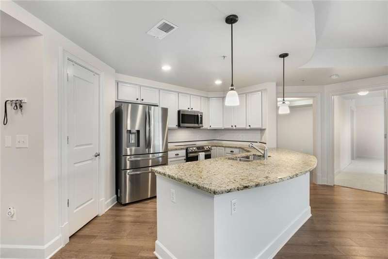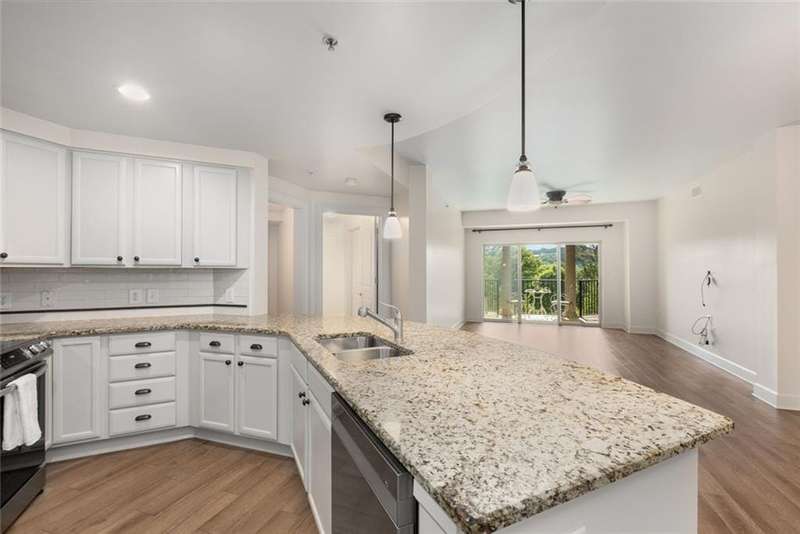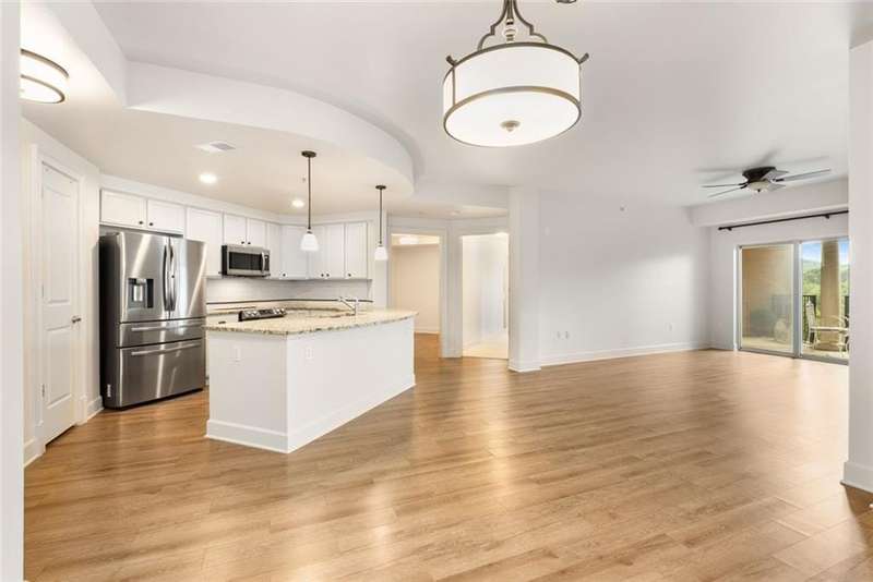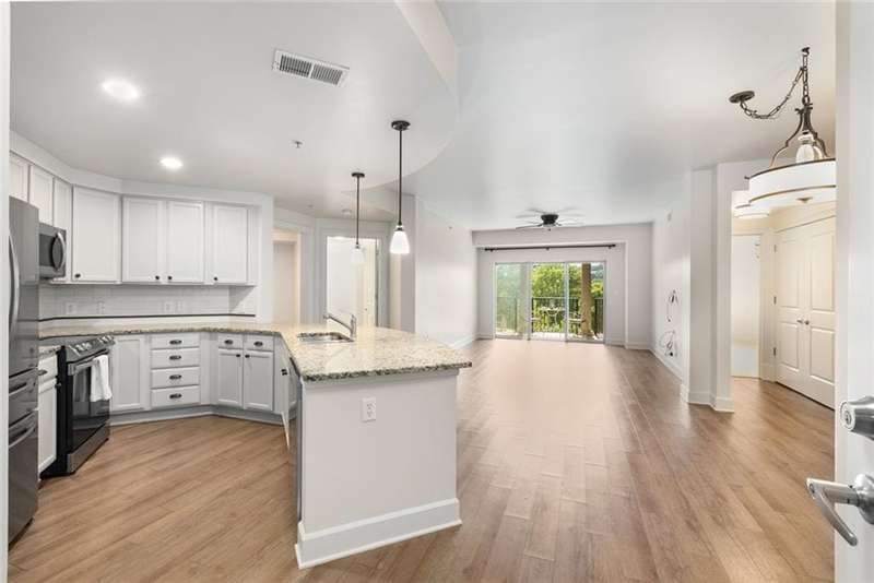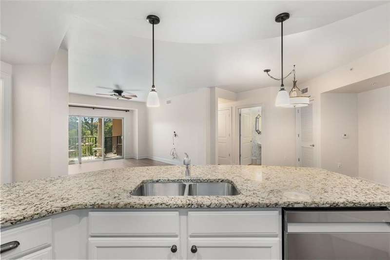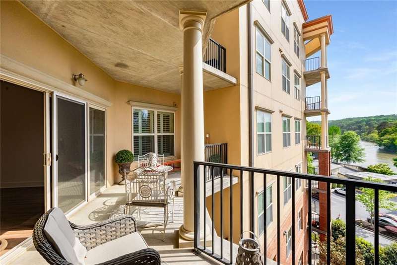 Welcome home to One River Place! This beautifully maintained and updated condo boasts one of the most highly coveted floor plans in the community, featuring 2 bedrooms and 2 full and 1 half baths, plus a den! The main living space is bright and airy, with fresh paint, new LVP flooring, and a white cabinet kitchen with light granite countertops, stainless steel appliances, and large pantry. The two sizable bedrooms both have brand new carpet and feature spacious en suites, with the primary boasting a large custom walk-in closet and bathroom with beautiful new stand up shower, double vanities, and ample storage. The massive covered balcony overlooks the treetops and has a beautiful view of the Chattahoochee River. This unit also has a BRAND NEW water heater and HVAC! One River Place is a vibrant community located by the Chattahoochee River, close to a variety of restaurants, shopping centers, Publix, The Battery, and the Sandy Springs Performing Arts Center. With easy access to major highways, this community offers a range of luxury amenities, including two saltwater pools (one heated), a dog park, a pond, expansive green spaces, nature trails, and a clubhouse featuring a spa room, a 24/7 fitness center, a catering kitchen, and a pavilion. Additional conveniences include 24/7 gated entry, on-site management, an Amazon locker, and an exclusive electric vehicle charging station for River House residents. Monthly dues cover water, sewer, termite control, trash, and recycling.