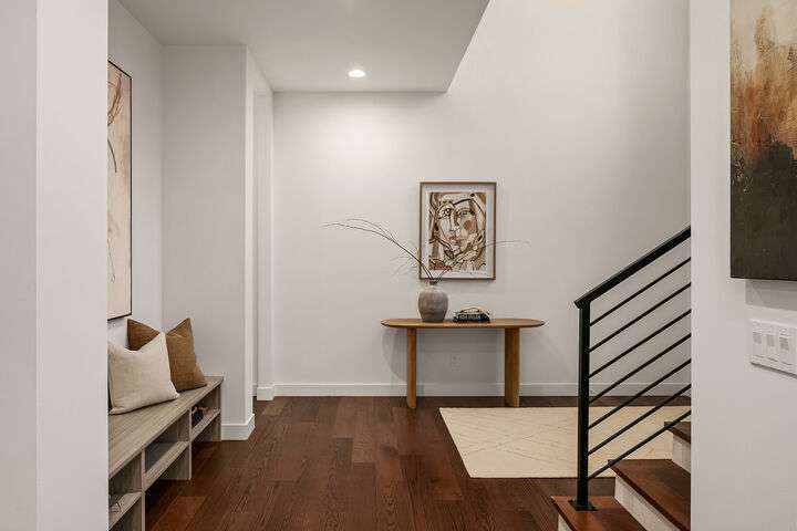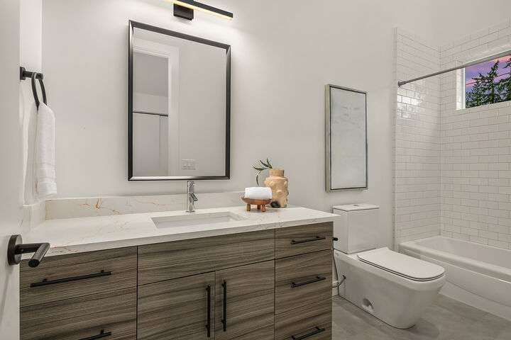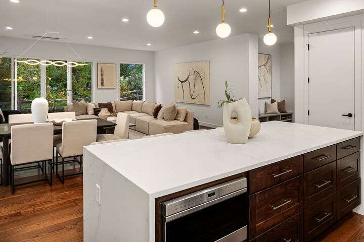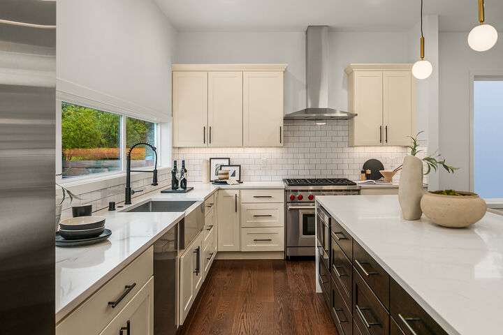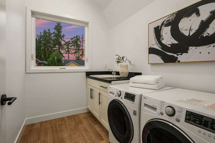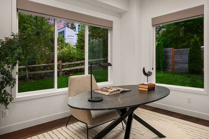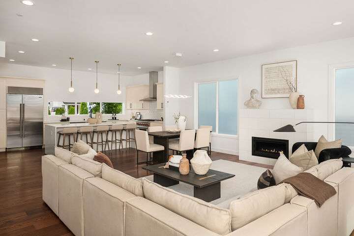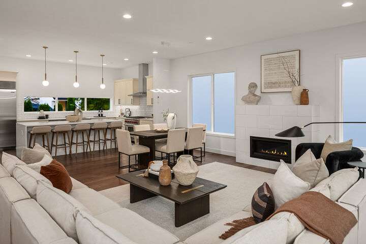 Located in desirable Rose Hill, this modern farmhouse offers an excellent open concept layout w soaring ceilings drenched in natural light. Main level features a den w 3/4 bath that can easily be turned into a 5th bedroom, & an expansive dining + great room. Enjoy a unique south-facing backyard sanctuary offering complete privacy & serenity, enhanced by natural landscape of the protected greenbelt. Crafted for the aspiring chef, the kitchen boasts SubZero & Wolf appliances w a double waterfall island. Upstairs features 4 oversized bedrooms including an en-suite. Luxurious primary suite includes large WIC & 5-piece spa bath. Upgrades include security system, smart lock, 2-car garage with EV charger. Convenient location near Costco & schools.