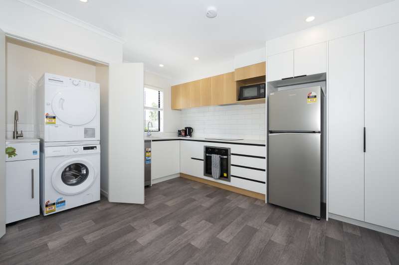 The location offers easy walking access to a train station, Countdown supermarket, as well as other restaurants and cafes. This proximity to transportation and amenities can be convenient for residents.