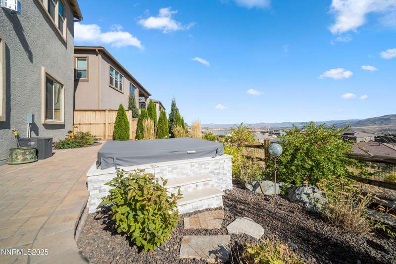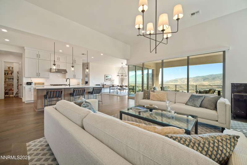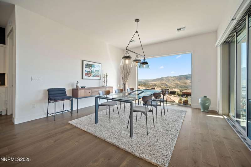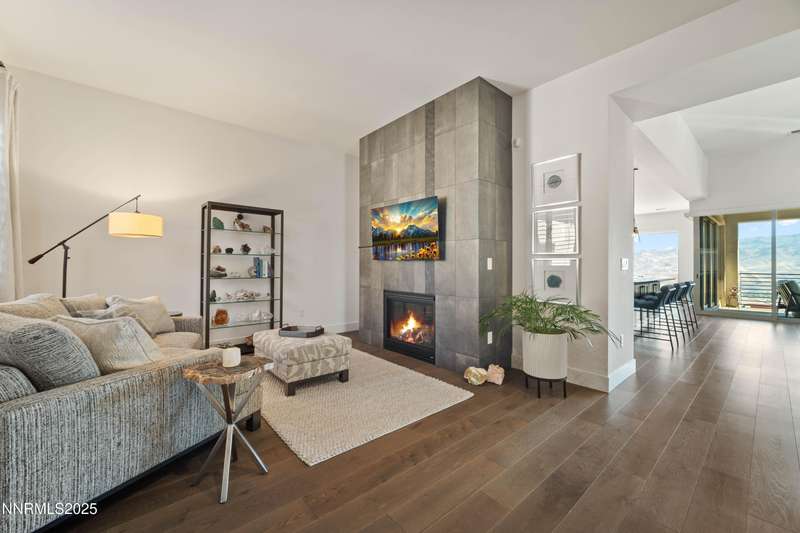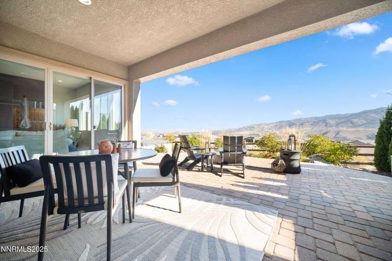 Stunning Modern Home in The Cliffs at Somersett. Discover luxury living in this exquisite 5-bedroom, 5.5-bathroom home located in the prestigious Cliffs community of Somersett. Perched on a premium 180-degree view lot, this meticulously designed residence boasts breathtaking mountain views, sophisticated architecture, and high-end finishes throughout. Enter through a private front courtyard into a spacious open floor plan highlighted by floor-to-ceiling picture windows, hand-troweled walls, and a striking rolled steel fireplace with I-beam detail. The custom glass and metal staircase sets a contemporary tone, while 7" white oak plank flooring adds warmth and elegance. The entertainer's kitchen is a showstopper, featuring a massive 9-foot quartz island, Sub-Zero refrigerator, JennAir appliances, double ovens, a walk-in pantry, and soft-close dovetail cabinetry. Designer light fixtures, black matte hardware, and Italian porcelain surfaces complete the sophisticated design. The walk-out basement includes a second fireplace with Italian tile surround, covered patio, and an in-ground hot tub overlooking stunning mountain vistas. Upstairs, enjoy seamless indoor-outdoor living with a multi-panel corner sliding door leading to a large deck—perfect for entertaining. The luxurious primary suite offers a cozy fireplace, spa-like walk-in shower, double vanities, and a spacious walk-in closet. Additional highlights include dual-zone HVAC with two furnaces and water heaters, smart home security, insulated interior walls for soundproofing, never-freeze roof de-icing system, TV/data smurf tubes, a pure water softener, and professionally designed WaterSense landscaping. With a 3-car garage, large laundry/mud room, and exceptional craftsmanship throughout, this home offers comfort, style, and functionality in one of Reno's most sought-after communities.