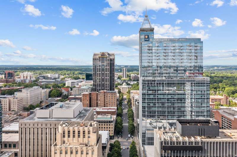 Welcome to this stunning 2-bedroom, 2-bath condo perched on the 31st floor of the iconic PNC Plaza in downtown Raleigh. With South-facing panoramic views of the city skyline, this residence offers a lifestyle as elevated as its vantage point.Step inside to find engineered hardwood floors, fresh paint, and an updated kitchen designed for both style and function. A dedicated laundry room adds convenience.This home makes city life effortless. With 24-hour security and a lock-and-go lifestyle, you'll enjoy peace of mind while taking full advantage of the vibrant scene outside your door?restaurants, coffee shops, parks, and nightlife are just steps away.PNC Plaza's resort-style amenities include a rooftop pool, fire pit and grill stations, a clubhouse, theater room, and a fully equipped exercise facility. Internet and cable are included in your HOA fees for added value.The unit also comes with two secure, gated parking spaces and a private storage unit.Experience unmatched convenience, luxury, and views from one of Raleigh's most prestigious addresses.