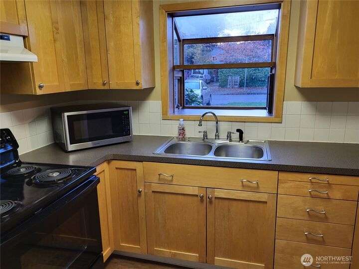 Comfortable 1.5 story home in Licton Springs neighborhood. Close to Northgate P&R, light rail, NSCC, Greenlake, and easy commute to downtown via I-5 or Aurora. 4 bdrms (2 on main, 2 upstairs). Attached one car garage, storage, private fenced level bkyd w/patio, and garden beds. Gas ht & fireplace. Newer carpet, hardwoods, newer stove, microwave, W/D in utility room. Quiet street. Min 1 yr lease, non-smoker, pets case by case. 1st mth rent & security deposit upfront. Credit check fee/applicant. Tenant pays all utilities & landscaping service.