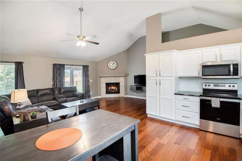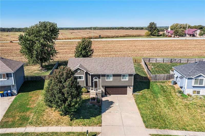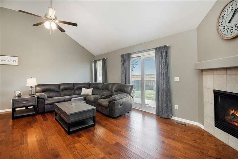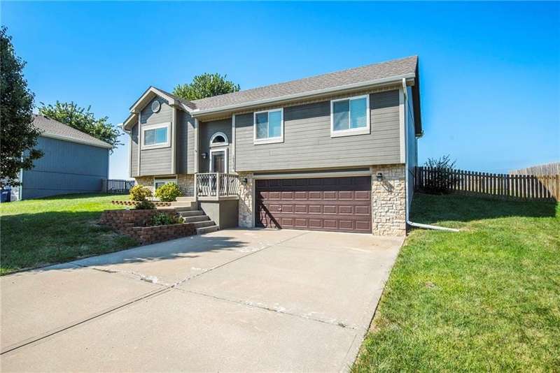Stunning split-level home just minutes from Smithville Lake! Enjoy a large, fully fenced backyard and beautiful hardwood floors that flow through the living room and kitchen. The living area features a cozy corner fireplace, while the spacious kitchen offers painted cabinets, updated appliances, vaulted ceilings, and a bright daylight window over the sink. The primary suite includes a raised ceiling, walk-in closet, and private bath. Downstairs, youll find a finished basement with a family room and plenty of storage. Step outside to the large patioperfect for grilling and entertaining. Dont miss out on this one!