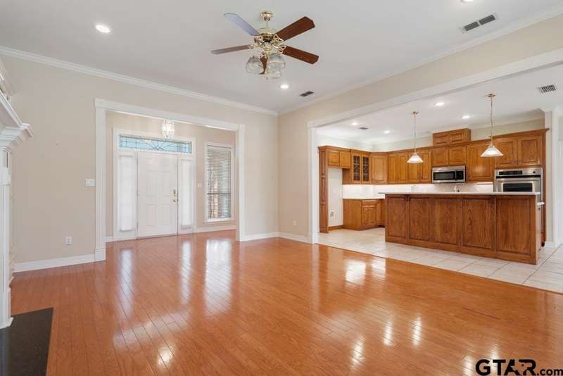 Welcome home to this spacious 4-bedroom, 2.5-bath residence offering over 2,300 square feet of comfortable living space in a highly convenient location'just minutes from top-rated schools, medical facilities, grocery stores, shopping, and restaurants. The open floor plan seamlessly connects the living, dining, and kitchen areas, making it perfect for everyday living and entertaining. Enjoy elegant wood floors, fresh paint, new carpet throughout the house (July 2025), and thoughtful finishes throughout. The formal dining room provides a perfect space for special gatherings, while the large living room features a cozy fireplace and custom built-in cabinetry. The kitchen with double ovens, a breakfast bar, and an oversized breakfast area with plenty of natural light. The spacious primary suite is a peaceful retreat featuring an ensuite bath with separate vanities, and a large walk-in closet. Three additional bedrooms provide ample space for family, guests, or a home office. Step outside to enjoy the private backyard, shaded by mature trees'ideal for relaxing evenings or weekend barbecues. This home truly has it all: space, style, and location. Don't miss your chance to make it yours!