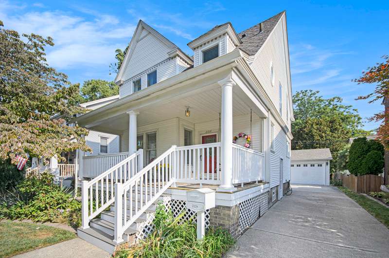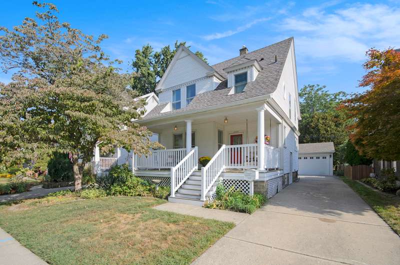 Back on market! Situated amongst beautifully preserved early 1900s homes, this well-crafted home, lovingly cared for by the same family for fifty years, blends classic details with thoughtful updates. A newly built, oversized covered porch with stately pillars complete with a charming porch swing invites you to enjoy morning coffee or relax at the end of the day. The exterior features newer vinyl siding, replacement windows, a concrete driveway with extra parking, and a brand-new 2.5-car garage complete with a 30-amp outlet. Inside, you'll be greeted by original oak hardwood floors and pine trim, a welcoming front living room, and a traditional dining room with a striking bow window. The bright kitchen offers backyard access with a deck and steps leading down to the yard. Upstairs, three comfortable bedrooms and a full bath provide space for family and guests The clean, dry basement includes plenty of storage, newer windows, washer, dryer, and a utility sink. Move-in ready, this home is waiting for your personal touches. And it's conveniently located within walking distance to vibrant West Downtown Dearborn, Greenfield Village and the new Ford HUB Central Campus Building!