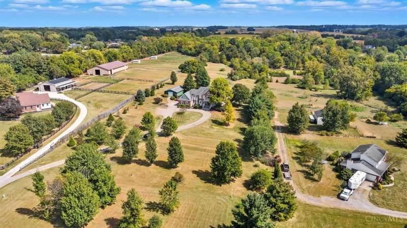Discover the perfect blend of luxury, space & endless potential with this exceptional 9.04-acre estate, designed for those who value privacy, refined living & room to grow. This custom-built estate-style home offers 4 spacious bedrooms, large bonus room, 5 full bathrooms & 1 half bath, thoughtfully designed with dual staircases. Gourmet kitchen w/counterbar opens to great room w/ stone fp. The walkout LL is ready for entertaining w/ a wet bar, rec room, full bath, and direct access to the backyard oasis, complete with an inground pool. Outside, the expansive, level acreage includes open pasture, perfect for equestrian use or outdoor recreation. A 30' x 48' pole barn adds even more versatility to the property & is ready for customizationideal for horses, hobbies or a workshop.