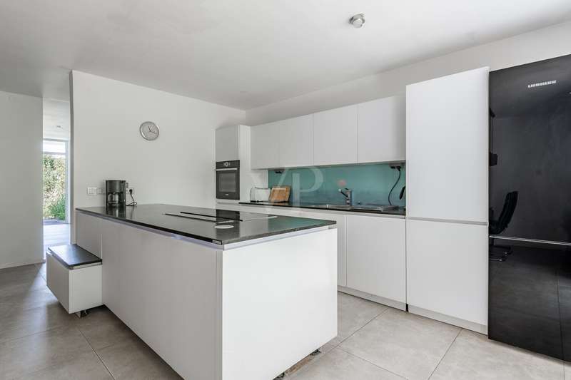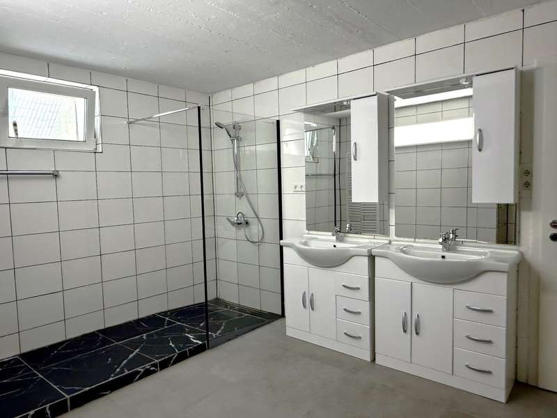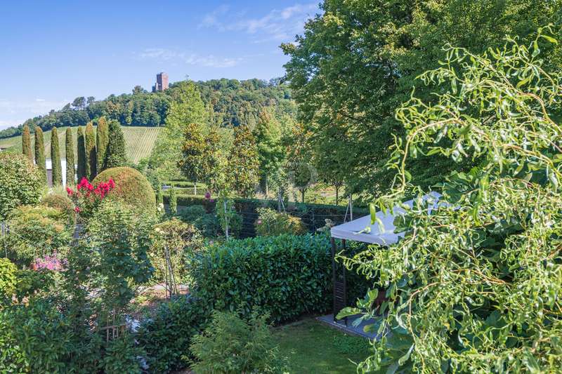 Modernized terraced house with large garden and view of the Turmberg In a sought-after residential location, this bungalow-style end-terrace house with a good layout and a living space of approx. 191 m² awaits you. The solid construction house was extensively modernized in 2024 and presents itself as an attractive home for discerning buyers who value living comfort, spacious areas and a quiet environment. The light-flooded living area on the first floor impresses with floor-to-ceiling, triple-glazed aluminum windows (2024), which create a smooth transition to the outside area. The living/dining area currently has a partition wall, but this can easily be opened up again to allow a view of the garden to the west. Large-format tiles ensure an easy-care and modern look here. The spacious, open-plan living/dining area offers plenty of room for the whole family and social gatherings. The garden area, which is sheltered from view, offers a variety of uses - whether for family activities, hobby gardeners or as an extension of the living space into the countryside and still offers plenty of potential for your own garden design. Privacy is guaranteed here thanks to planting that is protected from view - ideal for children or undisturbed outdoor recreation. The view of the Turmberg - a special highlight of this property. A total of five well-designed rooms are available, each with its own balcony or garden access. The large windows create bright and friendly rooms. Roller shutters on all windows ensure privacy and a pleasant indoor climate. The house has three bathrooms, which are assigned to the different living areas and meet modern standards. Parquet floors in the living rooms and bedrooms give the house a homely feel. The extensive refurbishment in 2024, including the completely new windows, the insulated façade and the modernized roof, contribute significantly to increasing energy efficiency and support a pleasant indoor climate. There is a separate garage for vehicles with a carport porch and its own access to electricity. The quiet property is located away from traffic and impresses with its sophisticated surroundings without public traffic. Come and see this beautiful property in a sophisticated location for yourself and arrange a viewing appointment to see the advantages of this property for yourself.