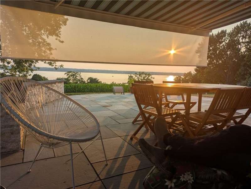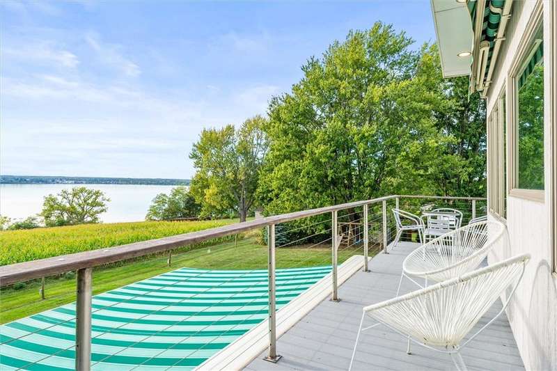 Mid-century modern living with contemporary luxury on Seneca Lake, we invite you to fall in love with 3328 Boody's Hill Road! Perched amongst the vineyards & fields of historic Rose Hill Mansion estate overlooking Seneca Lake, this mid-century home built in 1953 has been reimagined for today while celebrating its modernist roots. Its architectural design is modern yet stylish and functional while deeply connected to its landscape. Enjoy entertaining on the bluestone patio, Brazilian stone heated floors on a snowy morning, or watching the sunset over Seneca Lake from your balcony & master suite. This home offers both comfort and inspiration to anyone who walks through its doors! Intricate landscaping with a 1,000 square foot patio with lighting allows you to entertain sunrise to sunset rain or shine with two awnings. The master suite upstairs features a balcony, laundry with walk-in closet, heated bathroom floors & shower with coffee/wine bar. The master bedroom downstairs is lake view with a full bath. Two more bedrooms and one full bath all located on the first floor all have ample closet space and lighting. A formal living room with views into the kitchen/dining/living area with open concept floorplan to accentuate the view from any space within the home. Enjoy the automatic skylight in the kitchen adding natural light to your island while spending time in the kitchen. The property is located on a double lot with sweeping views of Seneca Lake, a private dock with 50 feet of lake frontage & a permanent right-of-way access, this is more than a house- it's a celebration of Seneca Lake Living!Delayed Negotiations until 10/13 @ 2 pm TWILIGHT OPEN HOUSE: THURSDAY 10/9 5pm-8pmOPEN HOUSE: SUNDAY 10/13 12-2pm