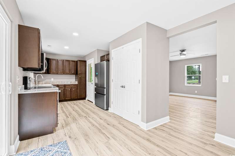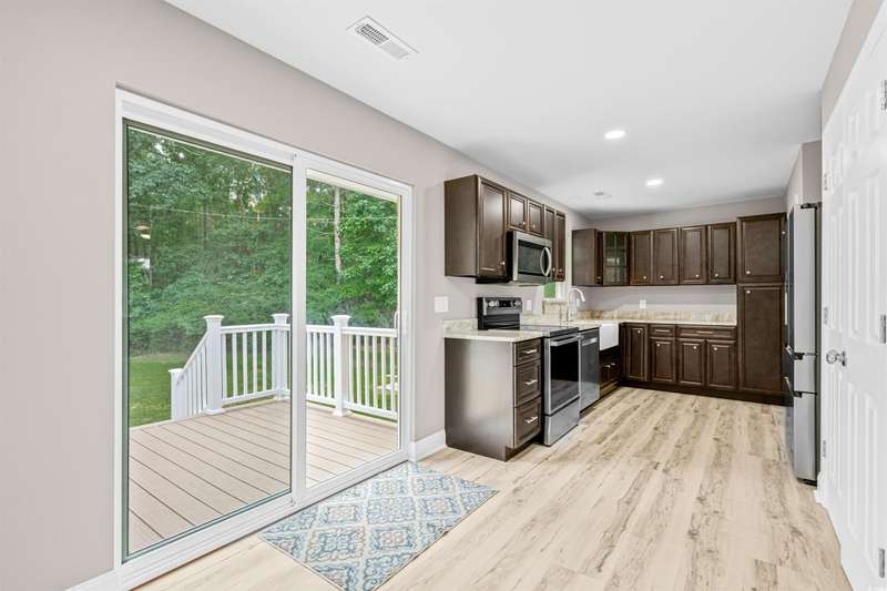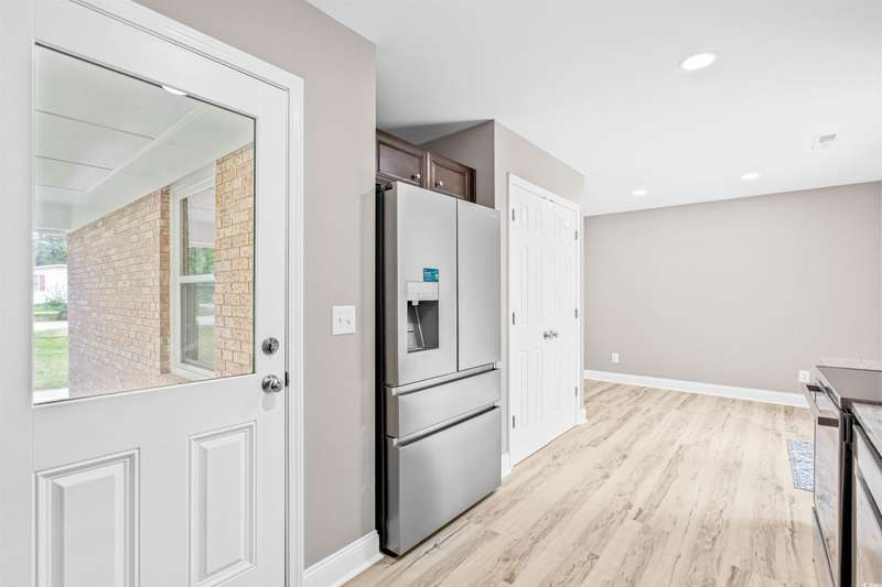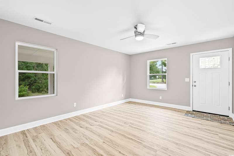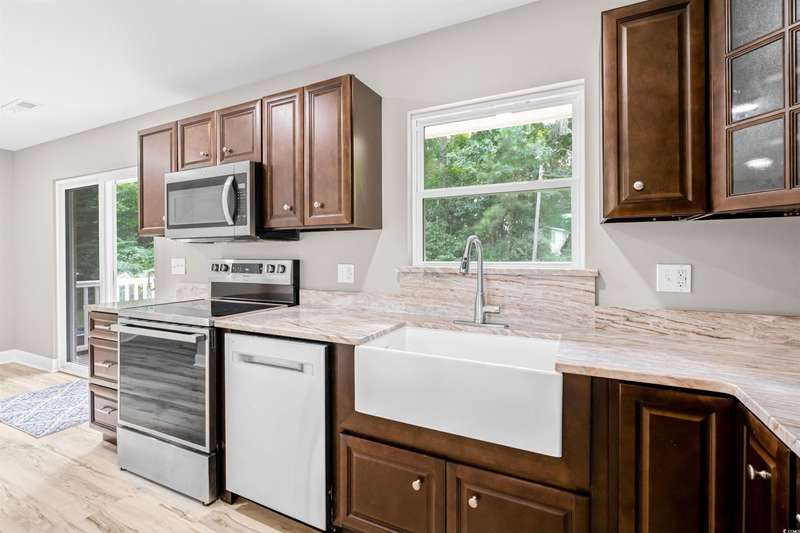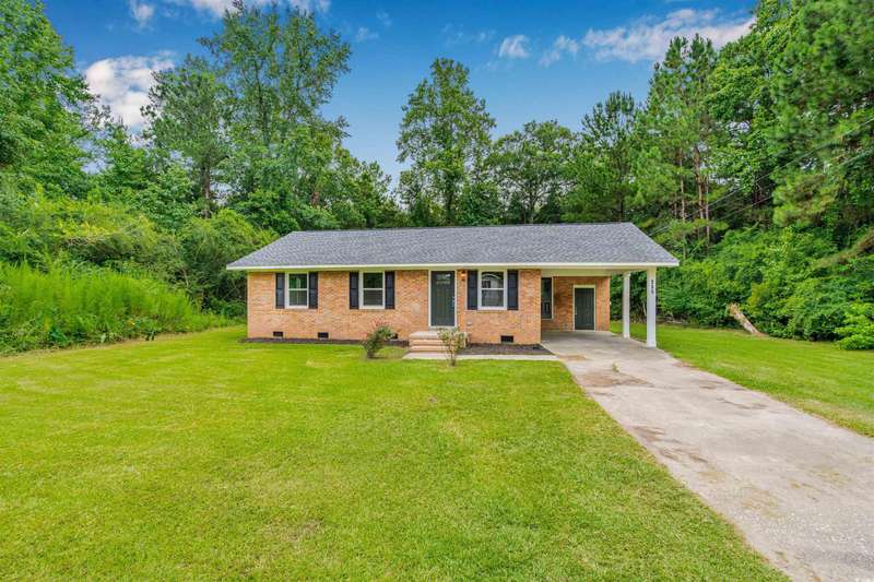 No Flood Insurance Required, Super cute, fully renovated brick home in move in condition. This adorable brick home in Hemingway has been completely renovated from top to bottom with high-quality finishes and thoughtful upgrades throughout. Enjoy peace of mind with a brand-new 2025 roof, subfloor, joists, HVAC system, ductwork, and energy-efficient vinyl windows. The stunning kitchen features custom-built cabinetry, stainless steel appliances, granite countertops, a farmhouse sink, Lazy Susan corner cabinet, glass frontage corner cabinet, and a spacious pantry. Other upgrades include recessed lighting, updated electrical outlets, hot water heater, a new front door, new carport door, and all updated fixtures and ceiling fans throughout. The family room is spacious and showcases the commercial grade Luxury Vinyl Plank floors extending throughout the home. All bedrooms are equipped with new ceiling fans and closets, while the full bathroom has been upgraded with tile floors, new cabinetry, a new tub, and updated plumbing. Outside you'll find a brand-new back deck with vinyl railings perfect for relaxing or entertaining. The powered storage shed adds extra convenience, and the fully encapsulated crawl space provides long-term protection and efficiency. Move-in ready and full of charm - this Hemingway home is a must see.