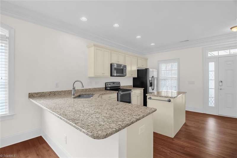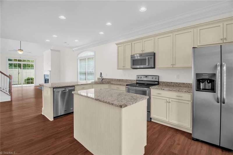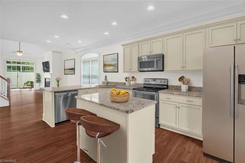 This beautifully maintained corner unit is flooded with natural light and features a spacious private patio perfect for relaxing or entertaining. Inside, you'll find high end laminate wood flooring throughout and an open concept floor plan that seamlessly connects the living, dining, and kitchen areas. The kitchen is a chef's dream with granite countertops, a center island with electrical outlets, stainless steel appliances, and bar seating ideal for casual meals or entertaining. The living room includes a beautiful fireplace perfect cool nights and relaxing. The primary suite is conveniently located on the main floor and includes generous closet space and an en-suite bathroom. Upstairs, you'll find two large bedrooms, a shared full bathroom with double vanities, and a versatile loft area great for a home office, media space, or playroom with all new carpet upstairs. Enjoy your private outdoor fenced-in patio, great for entertaining or relaxing!