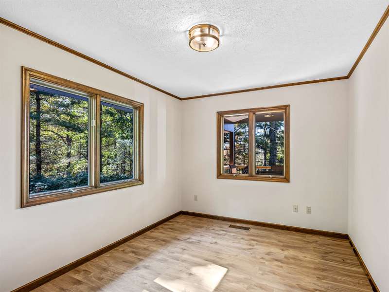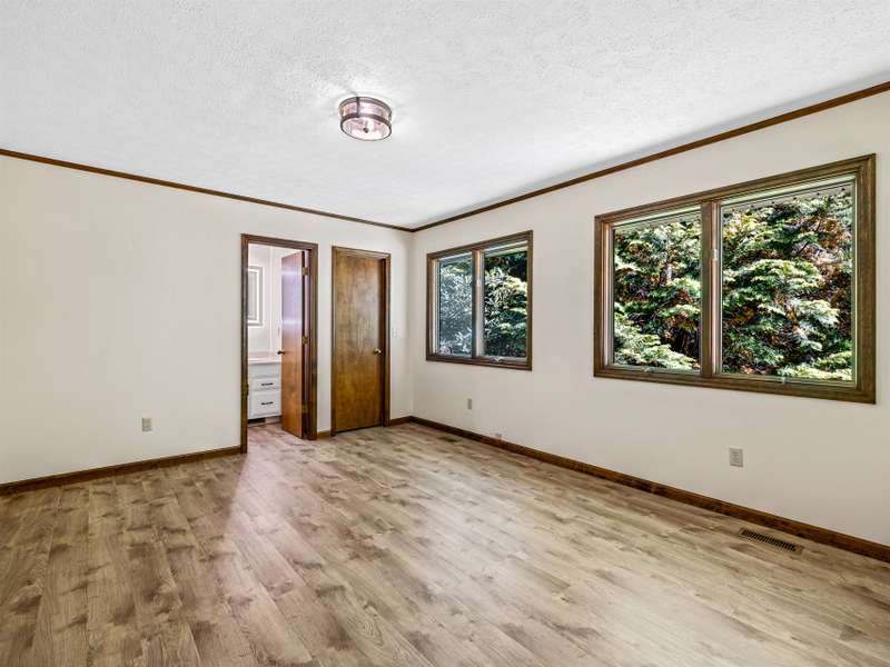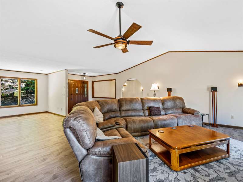 Welcome to 50 Timberlane Circle, a wonderful opportunity for comfortable, one-level living built by the highly regarded Jerry Brown. This solid 3-bedroom, 2.5-bathroom home offers a fantastic foundation ready for your personal touch. You can enjoy scenic mountain views from either the covered porch or the spacious deck, perfect for relaxing outdoors. The home's core is the open Great Room featuring a classic brick fireplace and is now refreshed with new LVP flooring and fresh paint throughout, providing a clean, contemporary canvas. The primary suite offers privacy with an ensuite bath featuring convenient double vanities and closets. The versatile floor plan also includes an additional ensuite bedroom and a third room ideal for a bedroom or home office off the kitchen. Practical features include a dedicated true laundry room and an attached two-car garage. While the home has a mature style, its quality construction and recent updates mean it's perfectly positioned for a new owner to bring their vision to life. Plus, the large basement with an outside entrance offers an excellent space for a workshop or substantial storage. This home is truly ready for its next chapter!