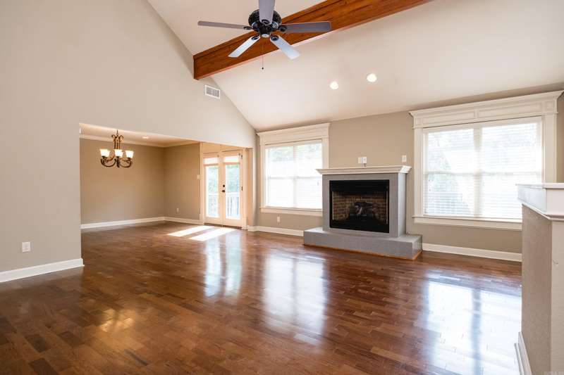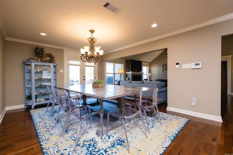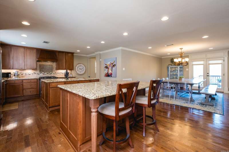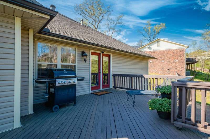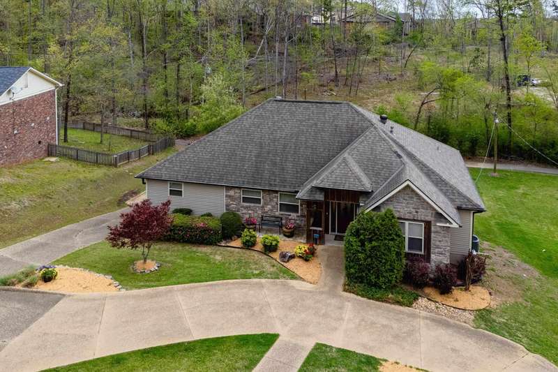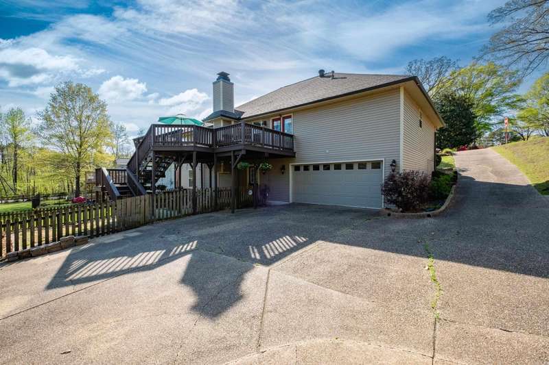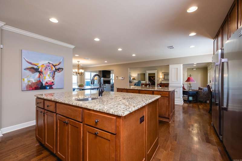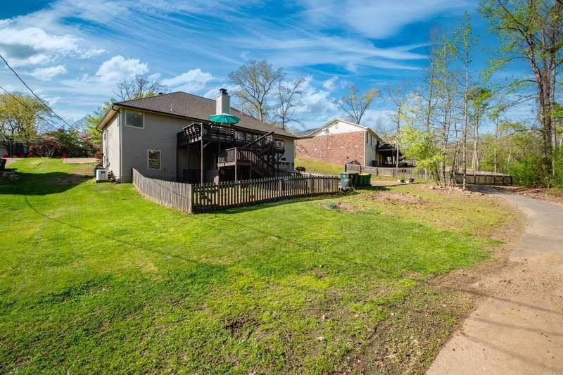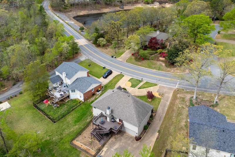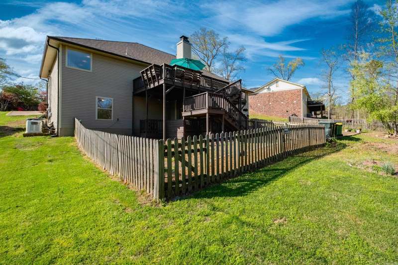 Charming open concept home with a stunning, oversized kitchen featuring custom cabinetry, two large islands (one with seating), and wood floors in the main level living areas. The spacious dining area flows into the vaulted great room with a gas log fireplace and abundant natural light. A second sitting area off the great room offers additional space for relaxing or entertaining. Multi-level back decks overlook the backyard and green space with a walking trail, perfect for enjoying the outdoors. The main level primary suite features a generous bath and walk in closet, plus a half bath and large laundry room for convenience. The lower level includes a cozy den with a fireplace, two bedrooms, a full bath, an office area, and a flexible space currently used as a gym. Carpet in all bedrooms, with carpet and tile on the lower level. Plenty of parking with a circular front drive, a two-car garage, and a whole house generator. Come see!
