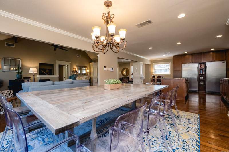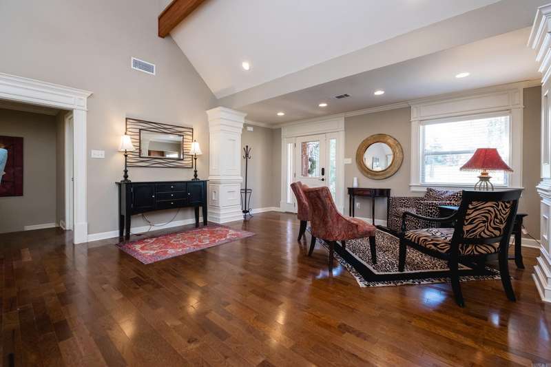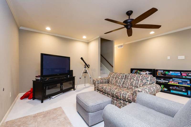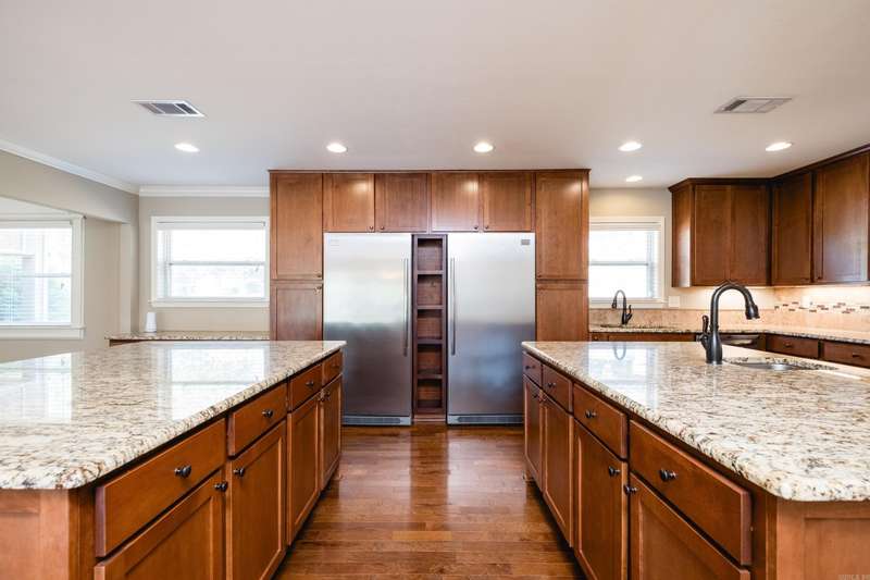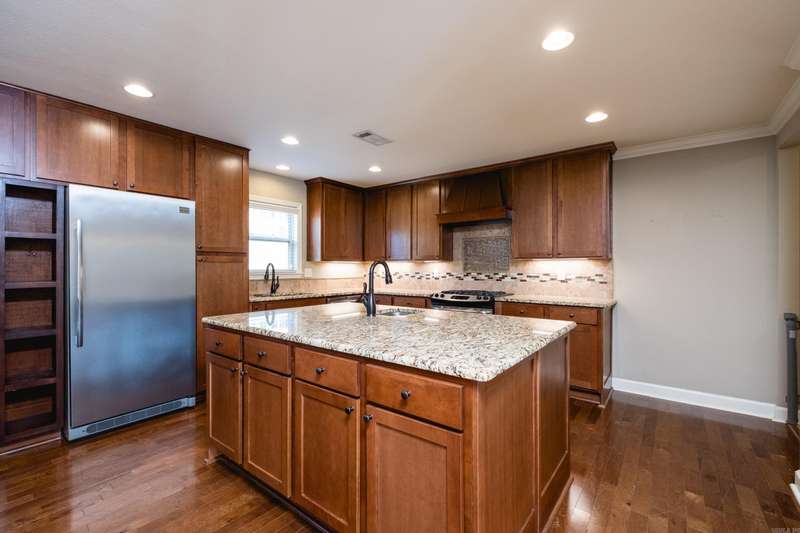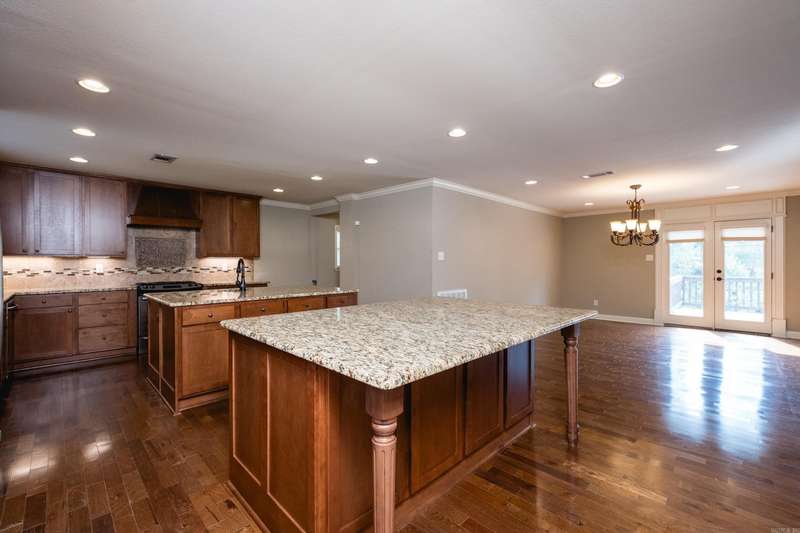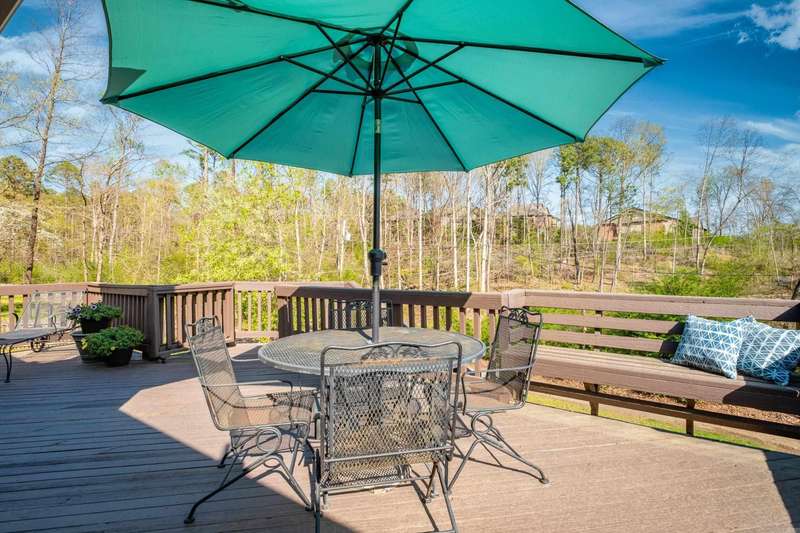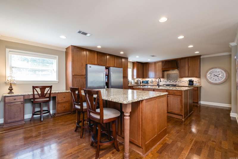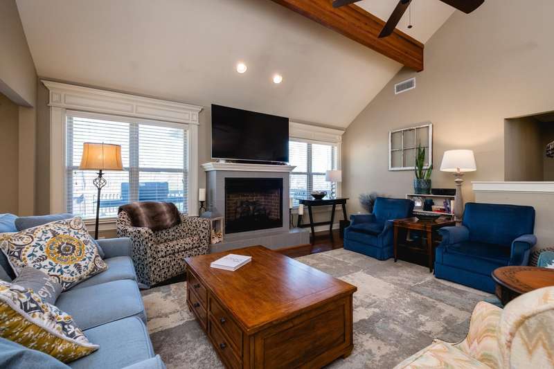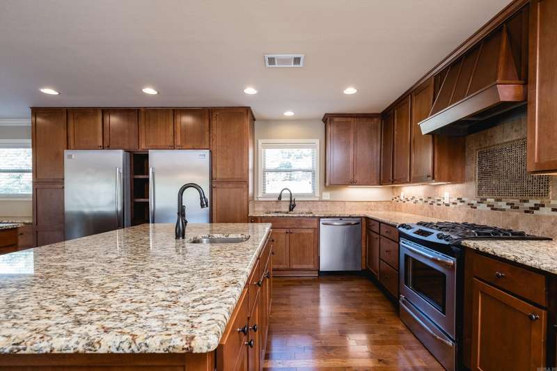 Charming open concept home with a stunning, oversized kitchen featuring custom cabinetry, two large islands (one with seating), and wood floors in the main level living areas. The spacious dining area flows into the vaulted great room with a gas log fireplace and abundant natural light. A second sitting area off the great room offers additional space for relaxing or entertaining. Multi-level back decks overlook the backyard and green space with a walking trail, perfect for enjoying the outdoors. The main level primary suite features a generous bath and walk in closet, plus a half bath and large laundry room for convenience. The lower level includes a cozy den with a fireplace, two bedrooms, a full bath, an office area, and a flexible space currently used as a gym. Carpet in all bedrooms, with carpet and tile on the lower level. Plenty of parking with a circular front drive, a two-car garage, and a whole house generator. Come see!