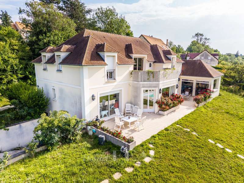 Built in 2001 on a plot of 5500 m², family house with generous volumes developing 286 m². Entrance, dining kitchen, dining room and beautiful summer kitchen, living room of 45 m², office and master suite on the ground floor. Upstairs a landing distributes 3 suites including a Master bedroom opening onto a solarium. In the basement, there is a laundry room, a wine cellar, a cinema room, and a garage. A 10m by 5m swimming pool was built in 2017. Easy access (4 minutes by car) to shops and schools,, bus R4 10 minutes walk to the RER A. International high school 6 minutes. Access A13 and A14. Geothermal heating, excellent ESP B.