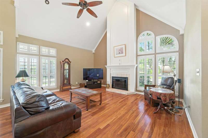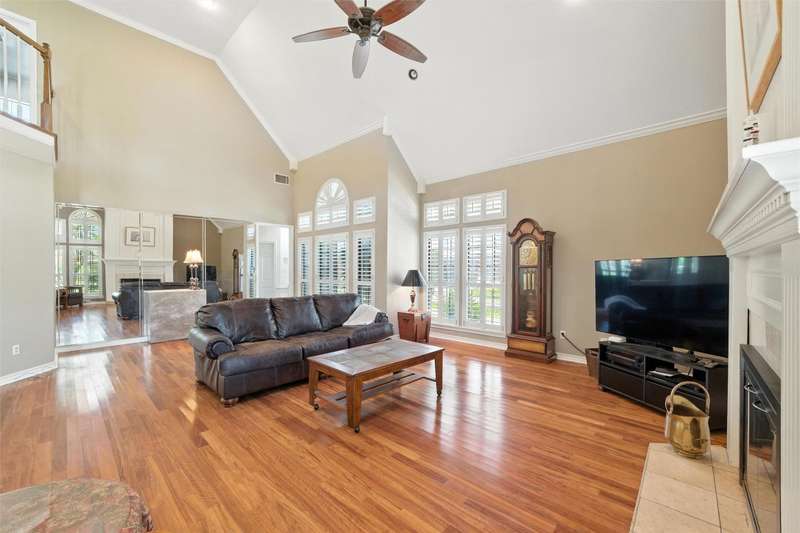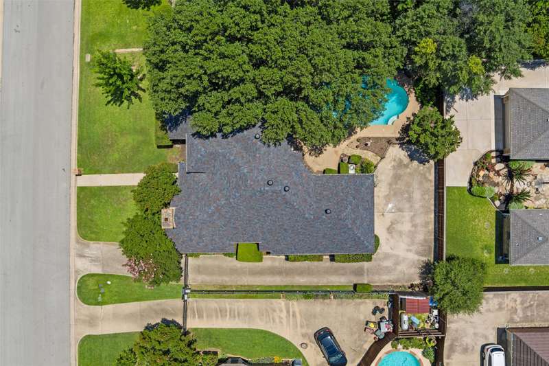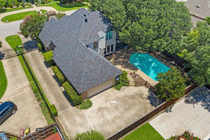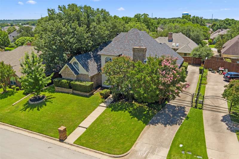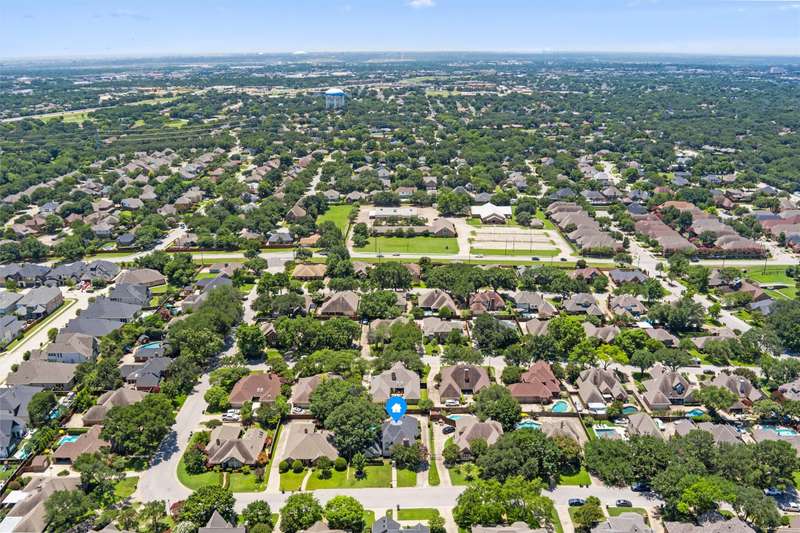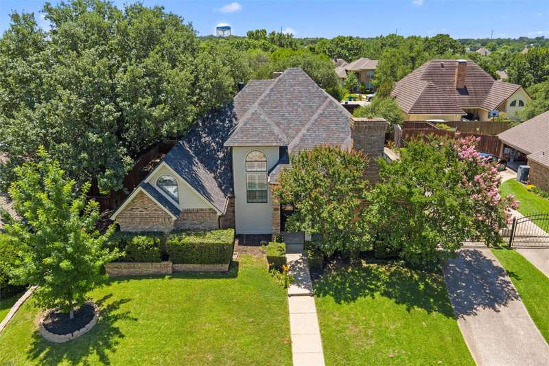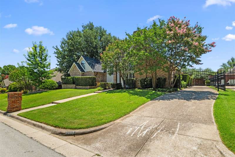 BUYERS FINANCING FELL THROUGH. Beautifully landscaped home in desirable Colleyville neighborhood. This home is within the sought after Grapevine-Colleyville School District. You will find inviting property features such as solid wood flooring, plantation shutters, and a spacious living and dining area. The second living space offers a full wall of windows with views of the private backyard oasis and French doors leading to the oversized swimming pool. The eat-in kitchen boasts all-recently updated appliances, a wine refrigerator, fresh paint, and a breakfast bar for additional seating. The primary suite is conveniently located on the first floor, featuring a large Jacuzzi tub, a separate shower and has been updated with fresh paint and recently replaced countertops. The Upstairs landing features a desk area with built-ins, making it a great area for kids homework or anything else needed. The two upstairs bedrooms feature a Jack and Jill bathroom. The backyard covered patio area is large enough to accommodate a table and chairs and extra loungers, making it great for entertaining family & friends. This home offers a private rear entry garage with an electric gate, providing extra security and additional parking.