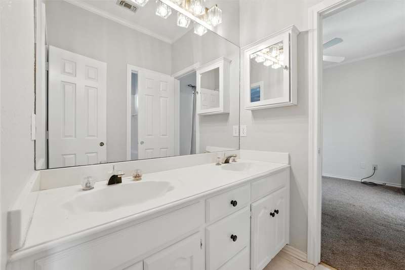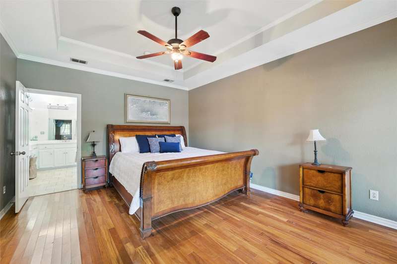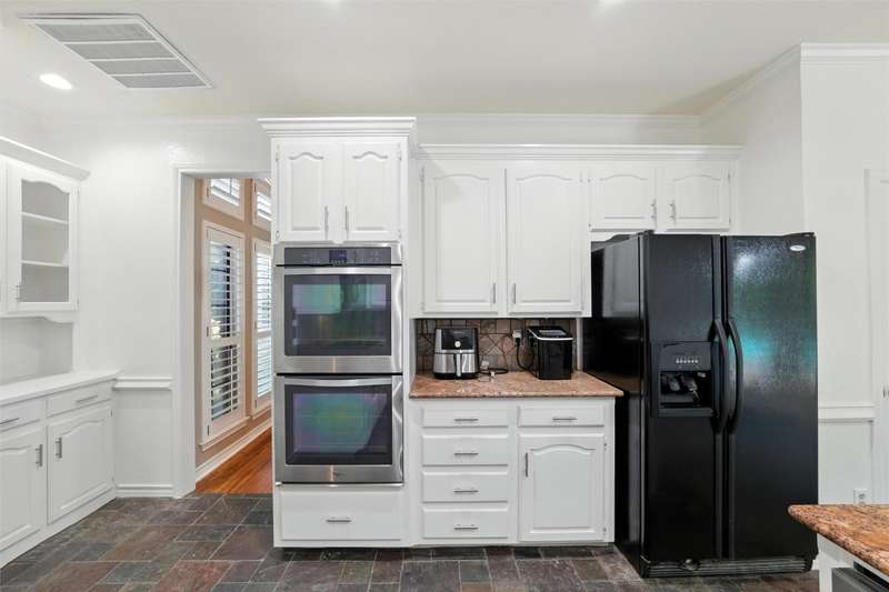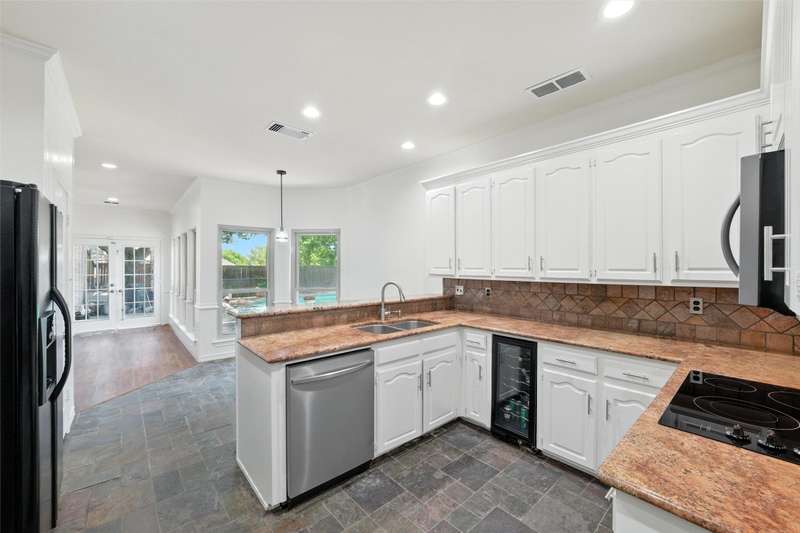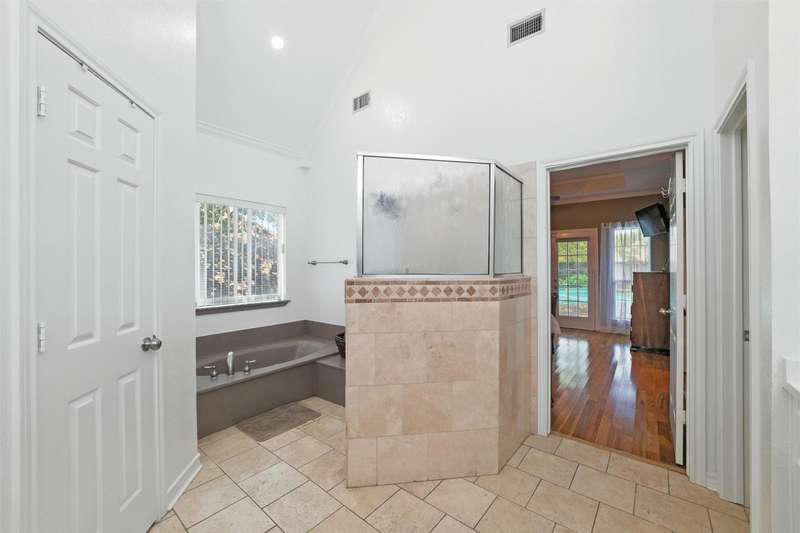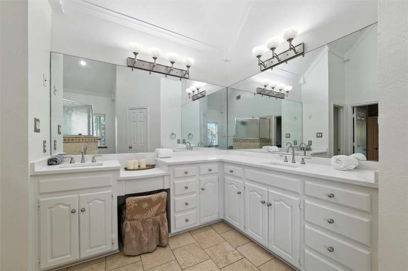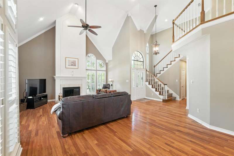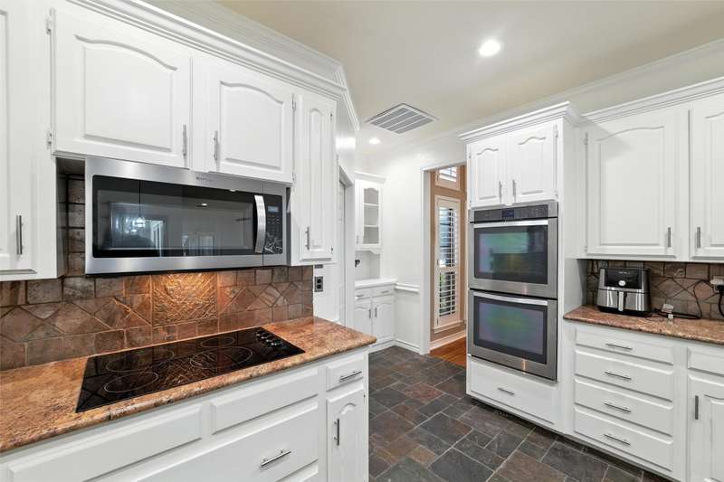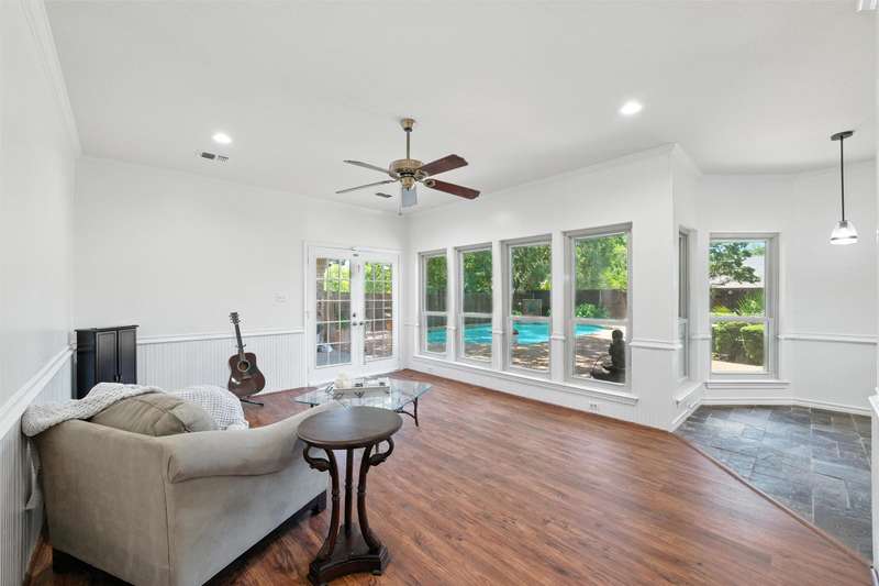 BUYERS FINANCING FELL THROUGH. Beautifully landscaped home in desirable Colleyville neighborhood. This home is within the sought after Grapevine-Colleyville School District. You will find inviting property features such as solid wood flooring, plantation shutters, and a spacious living and dining area. The second living space offers a full wall of windows with views of the private backyard oasis and French doors leading to the oversized swimming pool. The eat-in kitchen boasts all-recently updated appliances, a wine refrigerator, fresh paint, and a breakfast bar for additional seating. The primary suite is conveniently located on the first floor, featuring a large Jacuzzi tub, a separate shower and has been updated with fresh paint and recently replaced countertops. The Upstairs landing features a desk area with built-ins, making it a great area for kids homework or anything else needed. The two upstairs bedrooms feature a Jack and Jill bathroom. The backyard covered patio area is large enough to accommodate a table and chairs and extra loungers, making it great for entertaining family & friends. This home offers a private rear entry garage with an electric gate, providing extra security and additional parking.