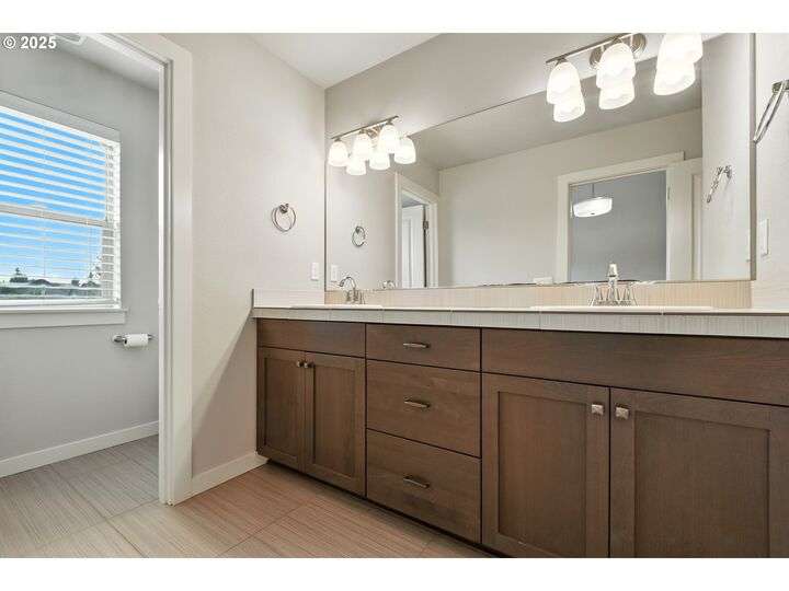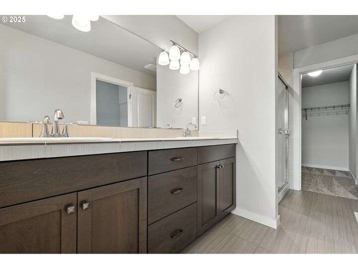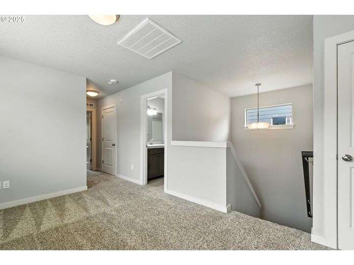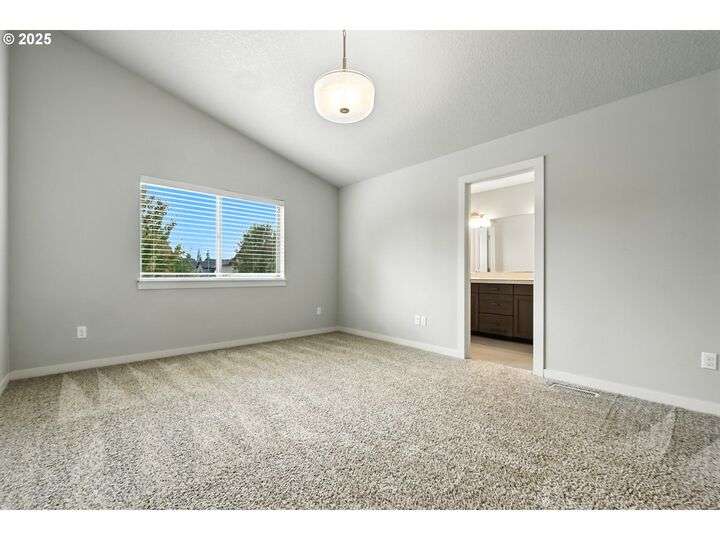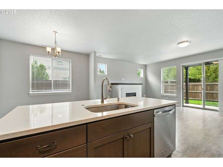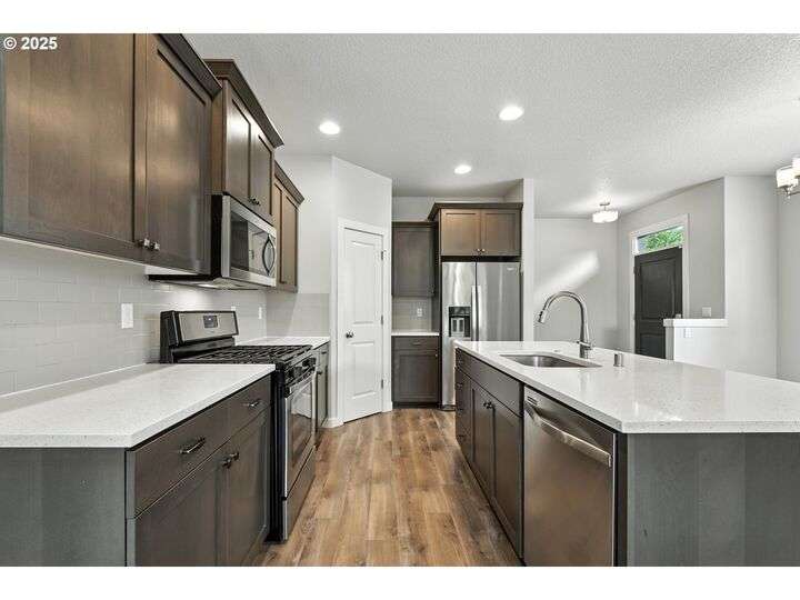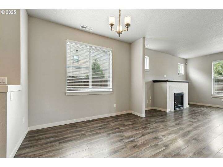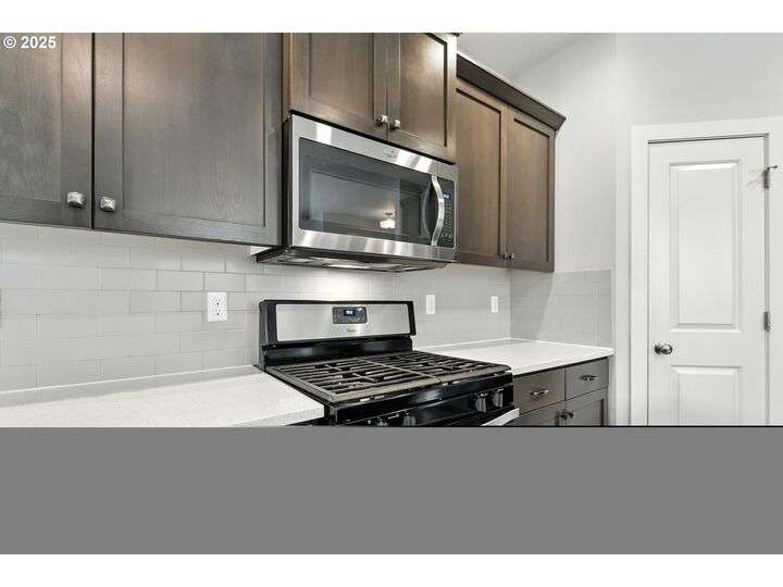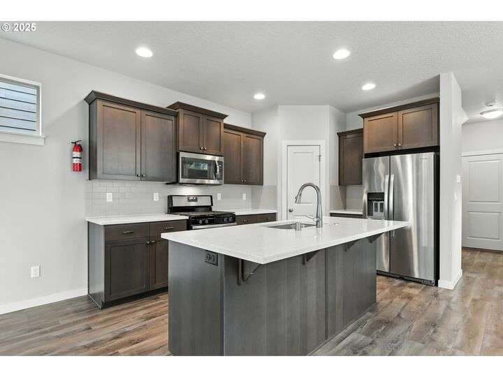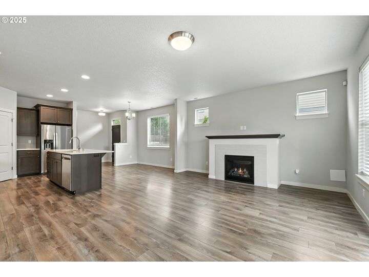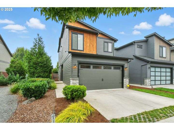 Welcome home to this adorable 1800+ SqFt move-in ready gem featuring 3 bedrooms plus a loft and 2.5 baths! The main level boasts 9ft ceilings, durable laminate flooring, and a spacious great room with a cozy gas fireplace and slider to the covered patio and fenced that backs to the neighborhood park & walking trail. The island kitchen shines with Quartz counters, full-height tile backsplash, gas range, refrigerator, and pantry. Upstairs, the vaulted primary suite offers a true retreat with a walk-in closet, double sinks, and tile throughout the shower, floors, and counters. This home also includes gas heat with A/C and a double car garage with opener. Move right in and start enjoying!