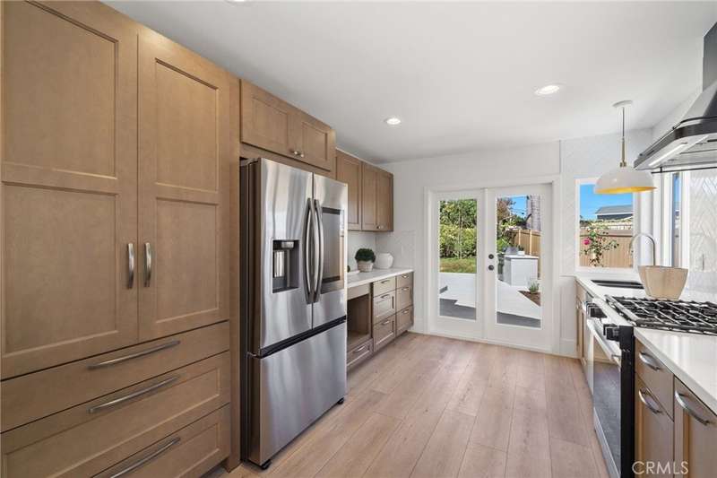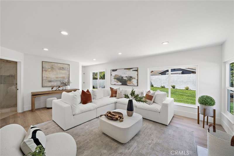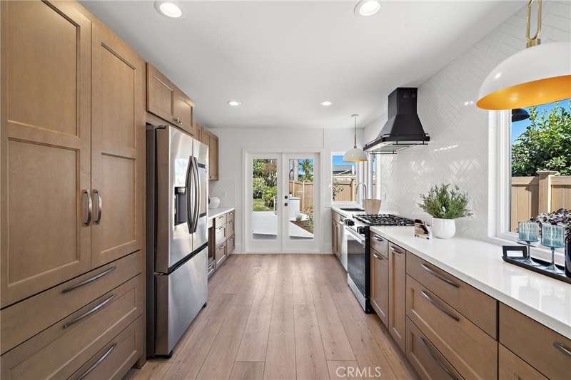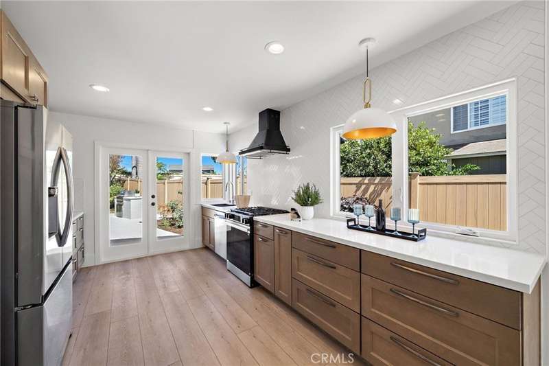 Fabulous property in the highly desirable Landing neighborhood. This home has been completely remodeled and upgraded throughout with all the contemporary features you are looking for! Situated on one of the largest lots in the track, this prime piece of land is over 10,000 square feet. The moment you enter the home you are greeted by high volume ceilings with tons of natural sunlight. Rich LVF white oak flooring flows seamlessly though the residence. Beautiful kitchen with solid wood custom-built cabinetry. Sleek quartz countertops and herringbone back splash. All new Samsung appliances and an adjoining dining area to host all your friends and family. There is ample space to enjoy relaxing or entertaining in your formal living room and separate family room with an inviting fireplace. All of the bathrooms have been remodeled with designer selected tiles and hardware. Attractive flat panel custom European floating vanities grace the space. Sleek Quartz counter tops and designer selected lighting and hardware. The primary suite is sure to delight with high volume ceilings and another fireplace. There is a very large walk-in closet. The primary bath is spa inspired with generous shower space and lovely soaking tub placed behind custom glass enclosure. The rear grounds of the home are truly amazing. Offering lush lawns and mature fruit trees. A large, covered patio space, multiple seating areas and a built-in barbeque area. This home also has a new furnace system including new ducting and a new water heater. This location offers direct access to the Bolsa Chica Wetlands reserve. Central Park, and the renowned Equestrian Center is just one block away. Come and enjoy all that the Coastal Huntington Beach lifestyle has to offer!
