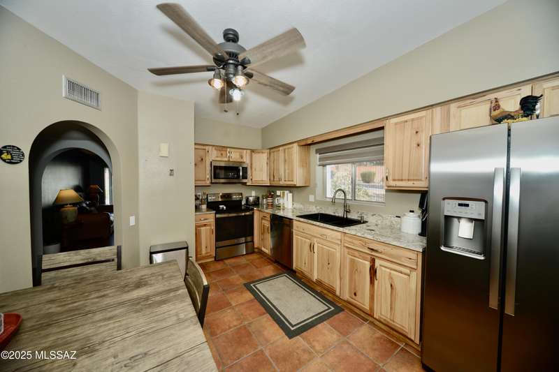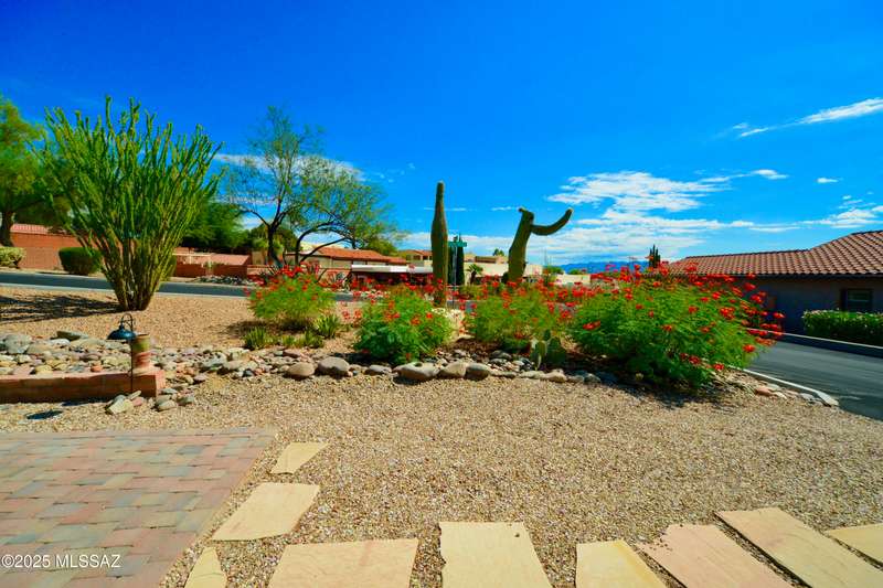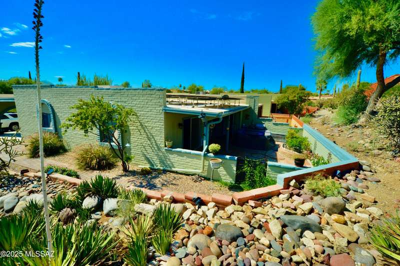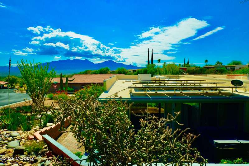 Welcome to this beautifully updated corner-unit townhome in the desirable Desert Hills community. Featuring fully owned solar, this 2-bedroom, 2-bath home offers tasteful upgrades throughout, including Saltillo-style tile floors, a remodeled kitchen with granite counters and stainless-steel appliances, and two updated bathrooms. Surrounded by desert beauty and mountain peek views from the front, the private walled backyard invites relaxation with its covered patio, paver walkways, mature landscaping, and hot tub. Convenient to GVR centers, this move-in ready home blends comfort, style, and Southwest charm. Conveniently located near GVR centers, this move-in ready home blends comfort, style, and Southwest charm.