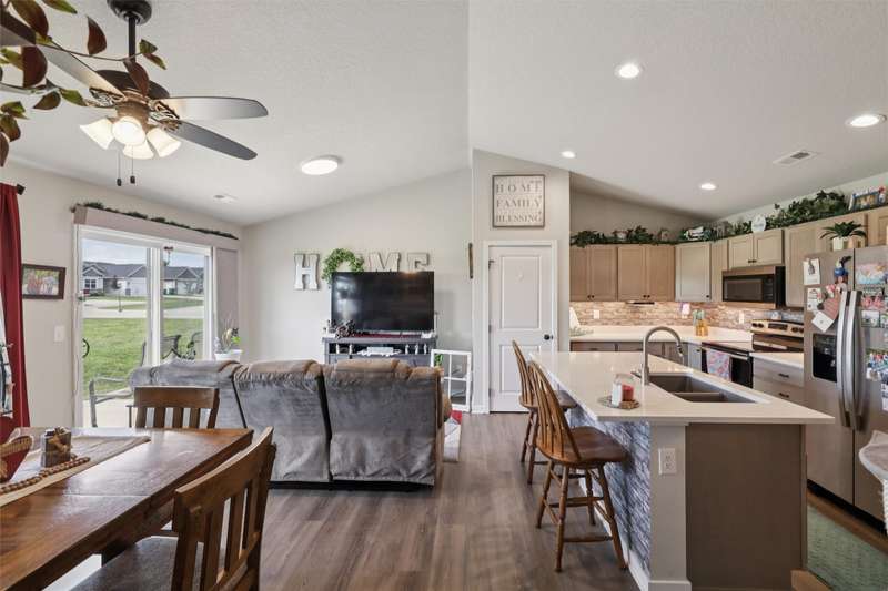 Charming 2BR/1BA Townhome with Attached Garage in the Heart of Madison County! This inviting home features an open-concept layout with warm earth tones throughout. Enjoy a spacious kitchen that flows into the dining area and family room, perfect for relaxing or entertaining. Vaulted ceilings enhance the airy feel, while large windows bring in natural light. The ADA-compliant, no-step entry offers accessibility and ease. With 2 comfortable bedrooms, 1 full bath, and an attached 1-car garage, this townhome blends style and practicality. Located close to shops, dining, and more in the heart of Madison County.