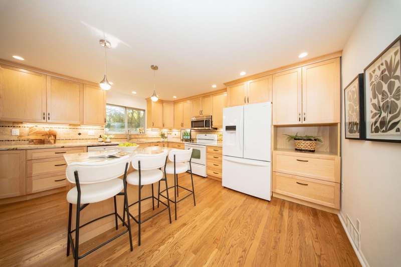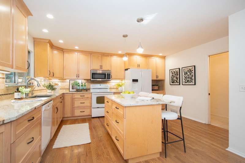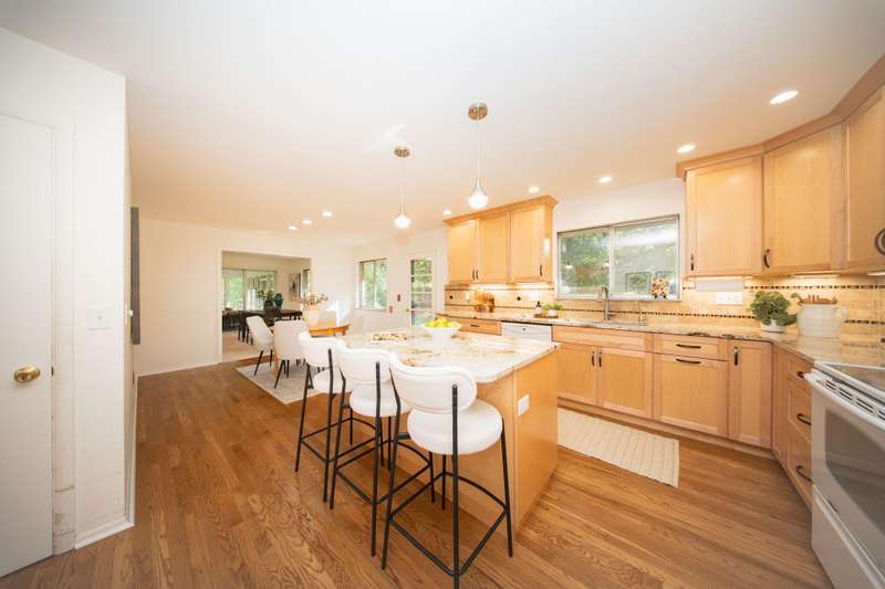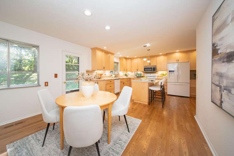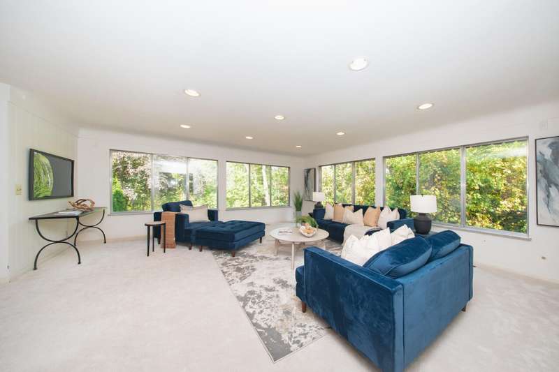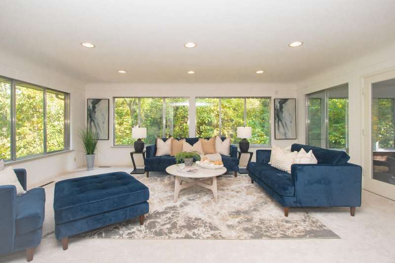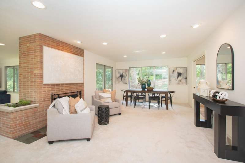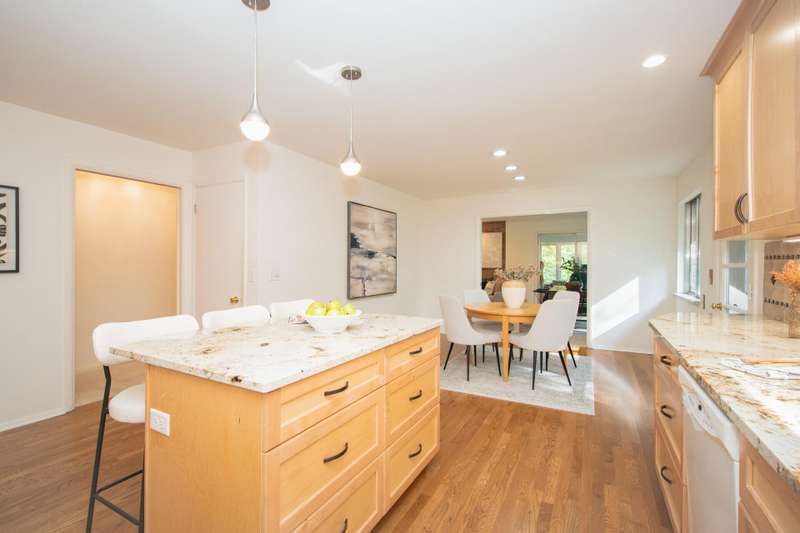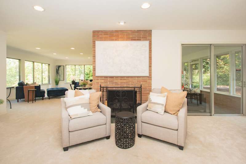 Located in the heart of Ann Arbor, yet in a serene and private setting, this raised brick ranch is a true contemporary mid-century modern home featuring private, mature landscaping and situated right across from Braun Nature Area. As you enter into the foyer off the covered porch, you are greeted with a flagstone tile floor and a built in garden box, reflecting the nature of its era. The home offers a large living room and family room with an open concept, separated by a full brick wood-burning fireplace. The family room boasts wall to wall windows and leads to a three season room that is also comprised of mostly windows--a nature lover's dream--which opens out to the park-like backyard. The dining area is spacious and bright, leading to an updated gourmet kitchen with hardwood flooring, custom 42 inch maple cabinetry with crown molding, a center island with seating, granite countertops, and a custom tile backsplash. The primary bedroom suite is generously sized and includes a private bathroom with a fully tiled spa sized shower, separate commode, custom cabinets, walk in closets, and beautiful birch tree wallpaper that lends to the tranquil vibe. The second main bedroom is also nicely sized and has access to a second fully updated bathroom with custom gray cabinetry, tile flooring, quartz countertops, separate tub, and a large tiled curbless shower with glass Euro door. The lower level adds fantastic living space and includes a large laundry area with cabinetry and a folding station, a full bathroom with shower, two large bedrooms, and leads out to the attached two car garage with an additional built on finished room that is ideal for canning, tools, and toys. This home provides a rare opportunity to live in a natural, private setting while being just a short walk to shopping, restaurants, family activities, and expressways. Low Ann Arbor Township taxes. This home is handicap accessible with a chair lift from the lower level to the main floor (owners will remove upon request). A true Ann Arbor rare gem!