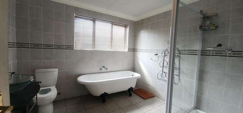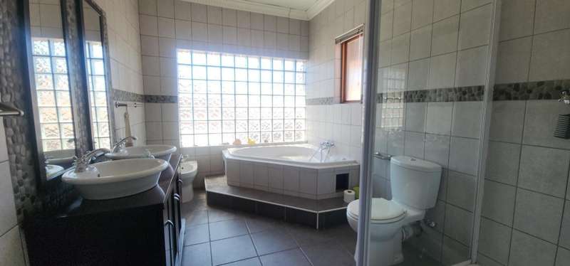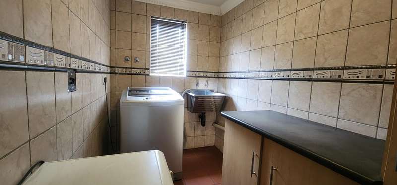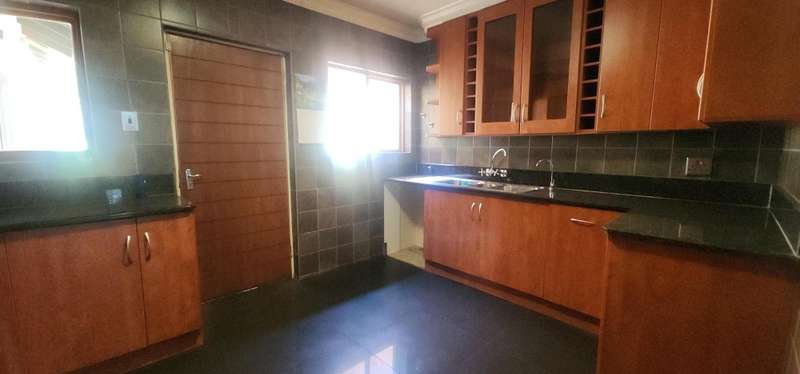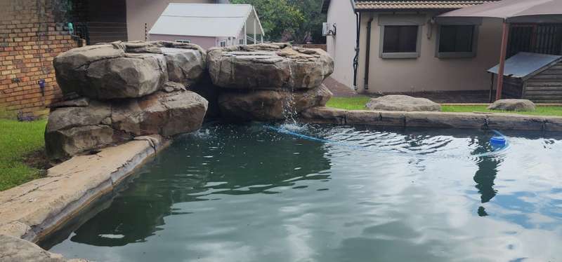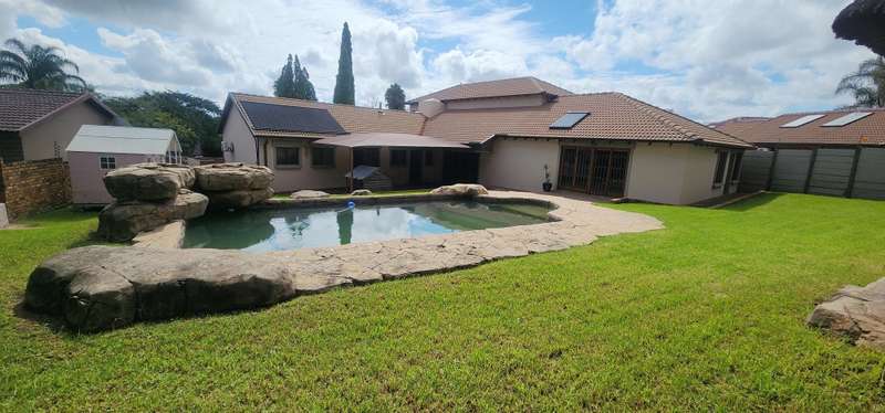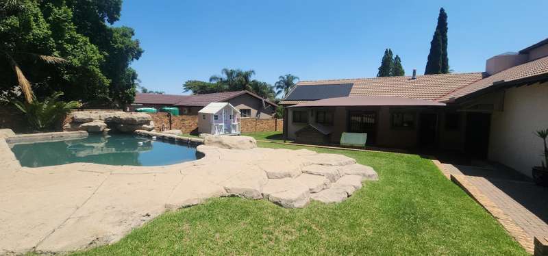 Five spacious bedrooms with 3.5 bathrooms. Perfect blend of comfort, style and convenience. Spacious living areas and beautiful kitchen with melamine cupboards and granite tops. Large yard with swimming pool, with lapa and braai area. One bedroomed staff quarter Double garage big enough for 4 vehicles and carport for 2 vehicles Call me now to view this place!