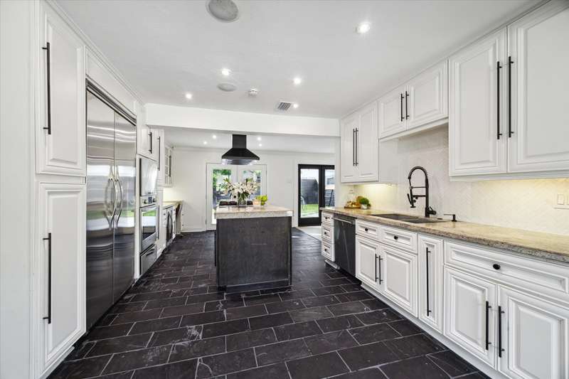 Adorable, light-filled home in West University with a fabulous open-concept floor plan and stylish updates throughout. A wall of windows provides full views of the upgraded backyard—ideal for outdoor grilling and entertaining. The expanded chef's kitchen features granite countertops, Subzero refrigerator, Wolf 6-burner gas cooktop, Fisher & Paykel dishwasher, wine/beverage cooler, bread warming drawer, and appliance garage for a clutter-free work space. New white oak engineered flooring throughout, black slate tile and sleek steel doors add a contemporary touch. The updated bath features a freestanding soaking tub and walk-in shower with rainfall showerhead. Located steps from Judson Park with tennis & pickleball courts and minutes to Medical Center, Rice University, Museum District and Downtown. Zoned to top-rated West U Elementary (buyer to verify eligibility). All per seller.