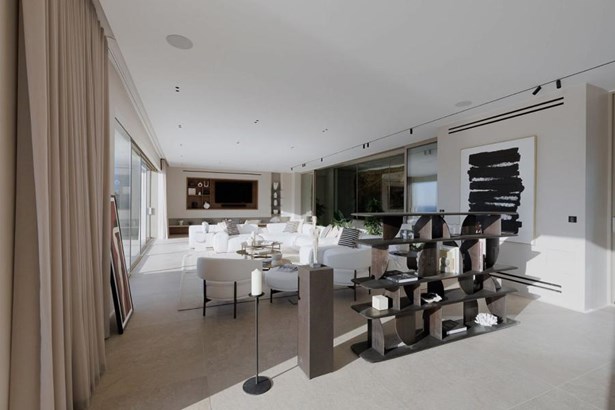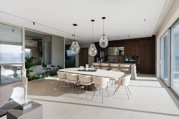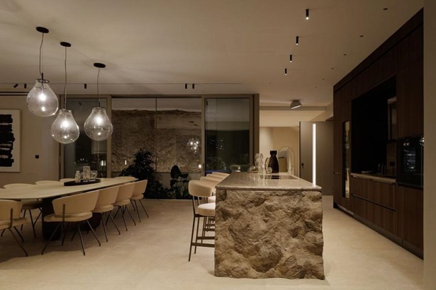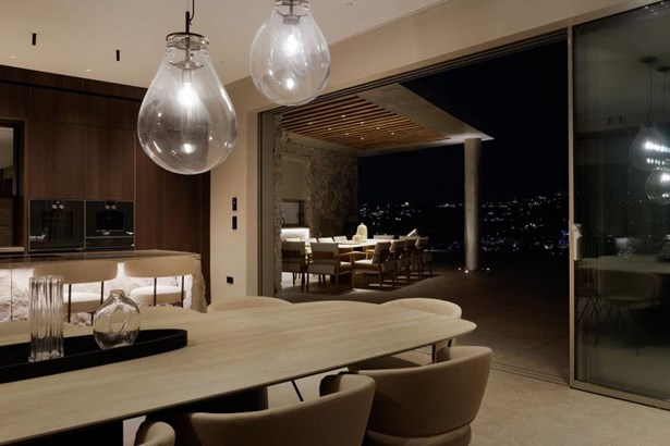 The thoughtfully designed interior flows seamlessly from one space to the next. The sunken formal living room, cozy entertainment zones, and gourmet kitchen all open onto the outdoor veranda, allowing for effortless indoor-outdoor living. Every room is a celebration of minimal elegance and refined craftsmanship, with top-tier finishes and natural materials that pay homage to the surrounding landscape.