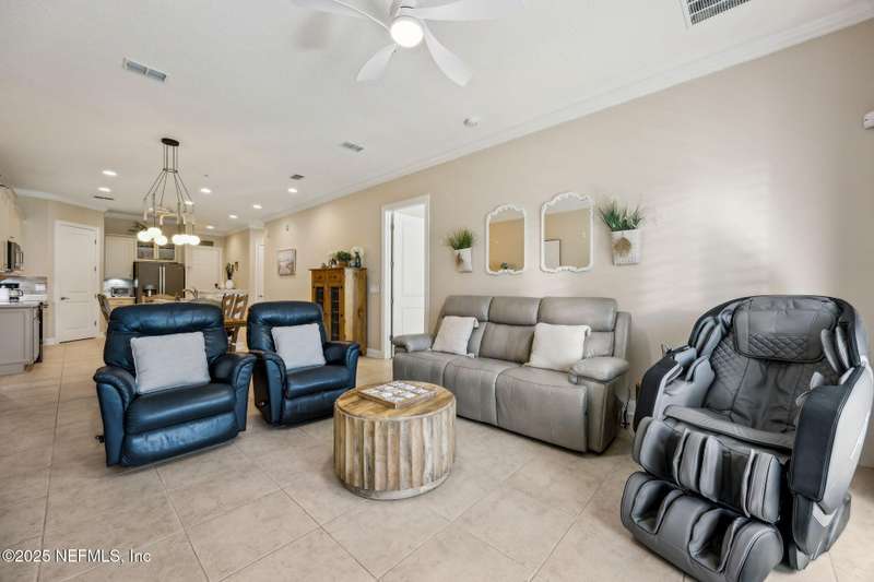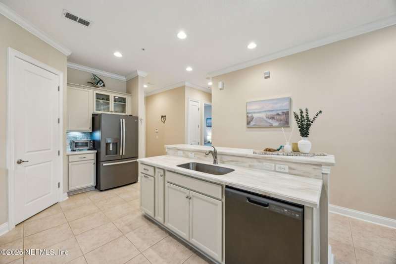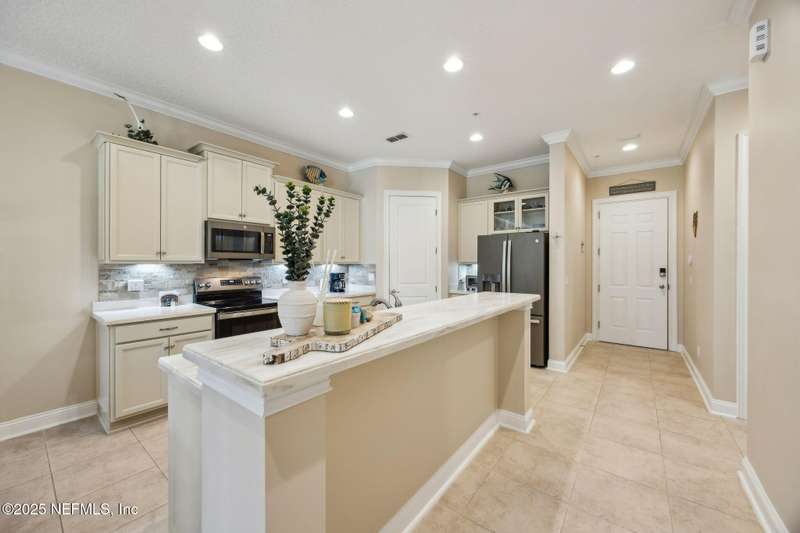 Freshly Updated First-Floor Condo in Summerwoods - Move-In Ready & Steps from the Ritz-Carlton, Amelia Island! Enjoy low-maintenance living in the gated Summerwoods community, about a ten-minute stroll from the Atlantic Ocean and minutes to Harris Teeter, shops, and dining. With a monthly minimum rental policy, this building avoids the high turnover common in other HOAs-making it ideal for a primary residence, second home, or investment property. 2025 Updates include: Professionally painted interior, Brand-new GE Slate fingerprint-resistant stainless steel refrigerator, stove, and dishwasher, Light-colored LVP flooring in bedrooms, New dining room chandelier, New ceiling fans in living room and bedrooms, Custom plantation shutters throughout, including French doors, Exterior freshly repainted by HOA. The open concept floor plan and 10-foot ceilings fill the home with natural sweeping views ideal for relaxing with your favorite drink. This golf cart- and dog-friendly community offers coastal charm with modern convenience. Relax by the community pool or take the golf cart path straight to the beach. A one-car garage with soaring 12.5-foot ceilings provides excellent storage, with additional driveway and guest parking nearby. Flood insurance is included in the condo association dues and already covered for 2025! Plus, the nearby Ritz-Carlton and Golf Club of Amelia Island both offer memberships, only a six-minute golf cart ride away. Don't miss the chance to make this beautifully updated condo your ownschedule your private showing today!