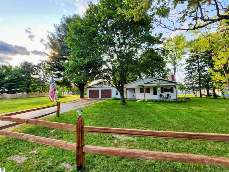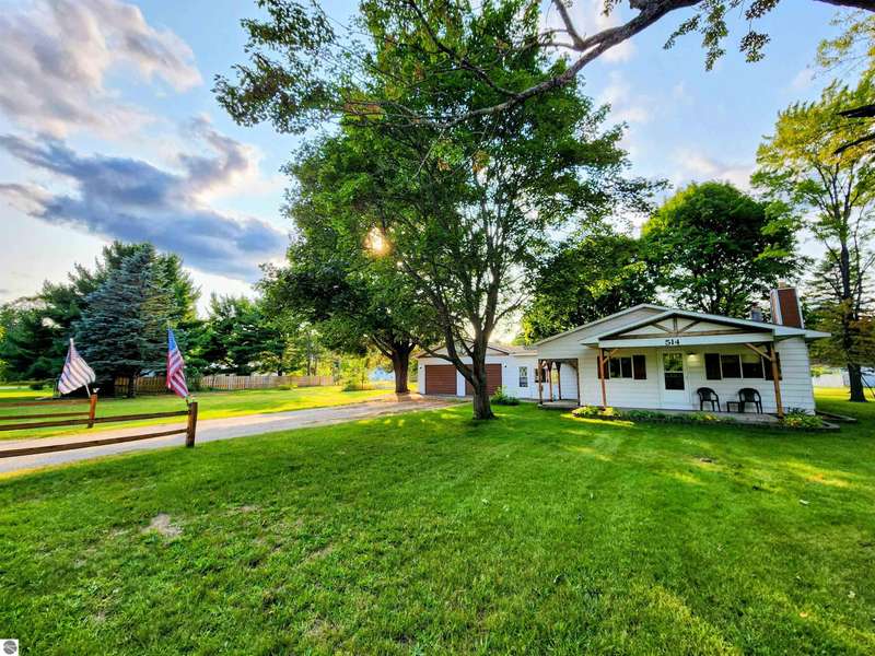 Welcome to 514 S Cherry Street, a charming 2 bedroom, 1.5 bath home in the Village of Kalkaska. Set on a spacious three lots totaling .64 acres, this property combines small-town living with an easy commute to Traverse City, making it an excellent option for year-round living or a Northern Michigan retreat. Offering 1,100 sq ft of living space, this home has seen recent updates throughout. The inviting living room flows into a functional kitchen with ample cabinetry, and the layout includes two bedrooms and two full baths. The primary suite is generously sized with a private bath, while the second bedroom provides flexible space for guests, an office, or hobbies. Outdoor living is a highlight here, with a large deck overlooking the backyard--perfect for entertaining, gardening, or simply relaxing in a peaceful setting. The covered front porch adds additional charm, and the attached 2-car garage provides storage and year-round convenience. Located within the village, you'll enjoy community amenities such as parks, schools, and local shops, while still being just a short drive to Traverse City and Northern Michigan's lakes, trails, and recreation. This home offers the best of both worlds: a quiet village setting with quick access to everything the region has to offer.