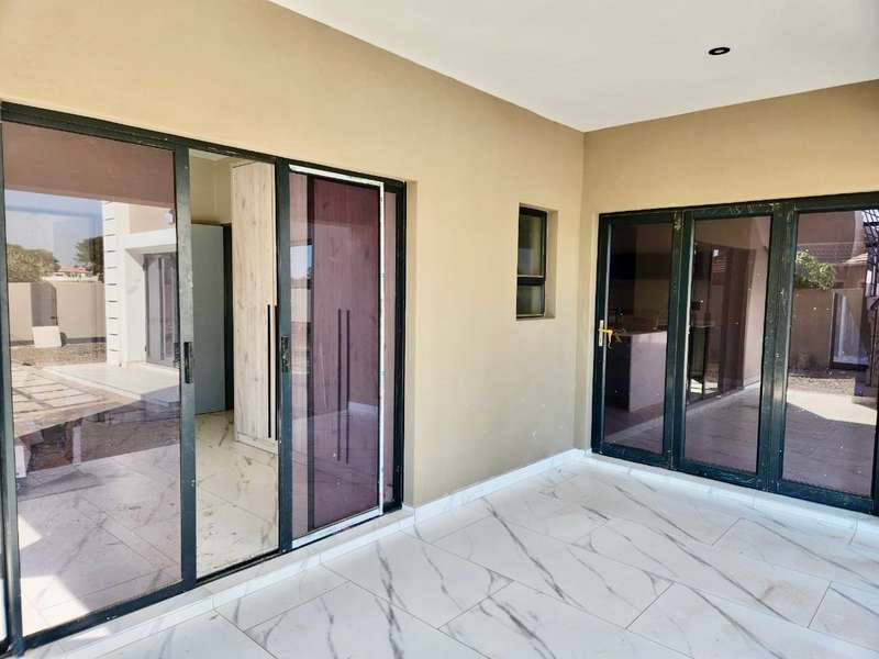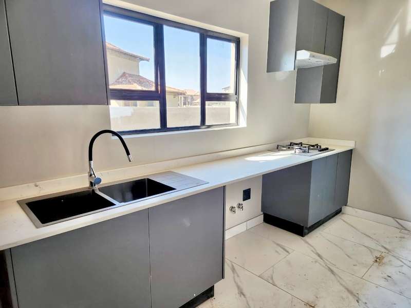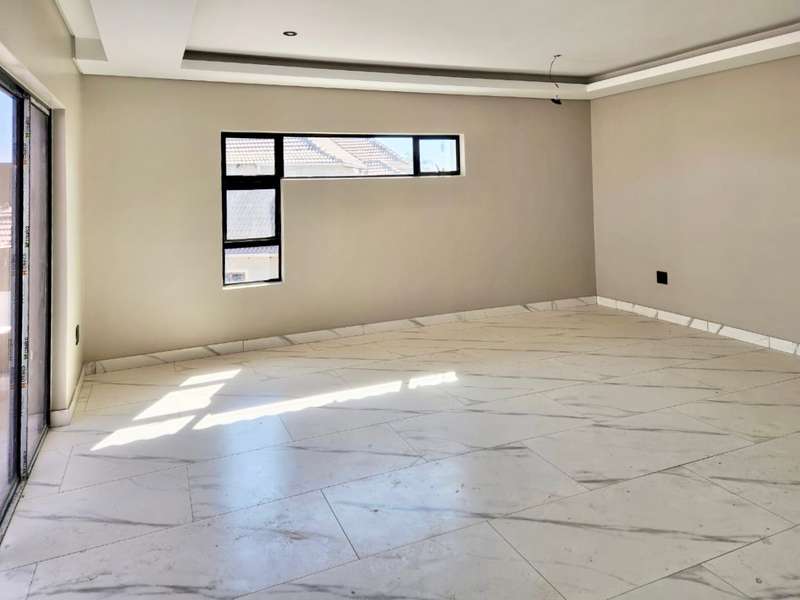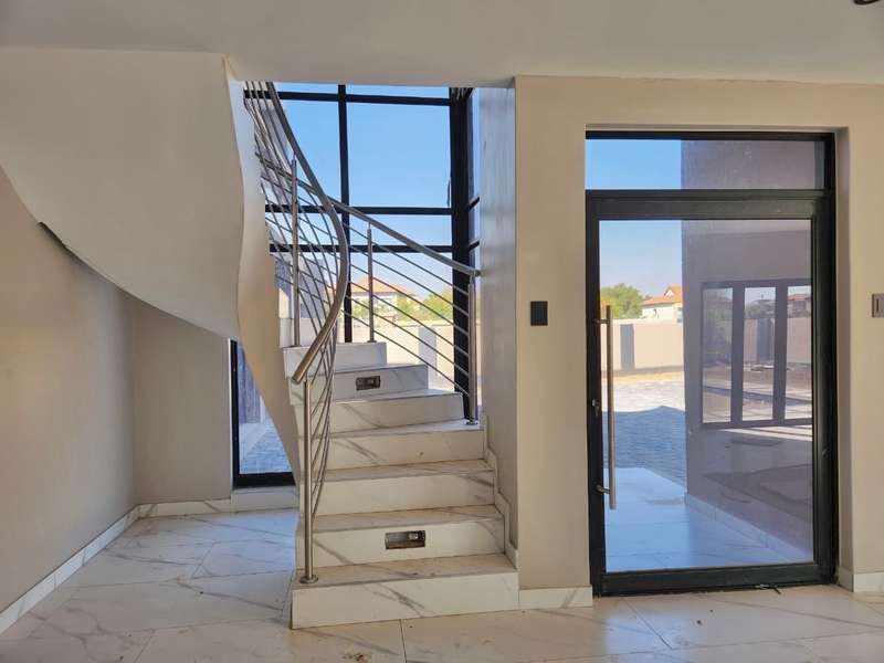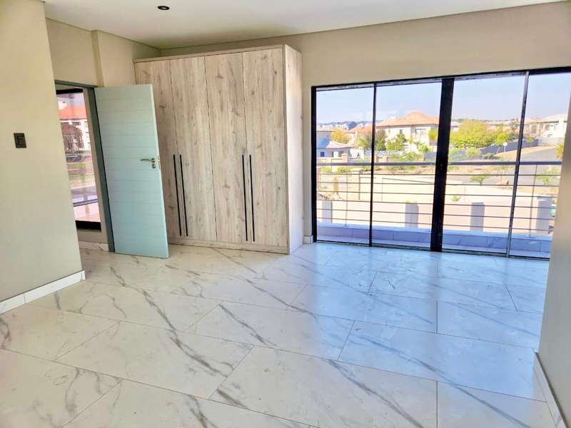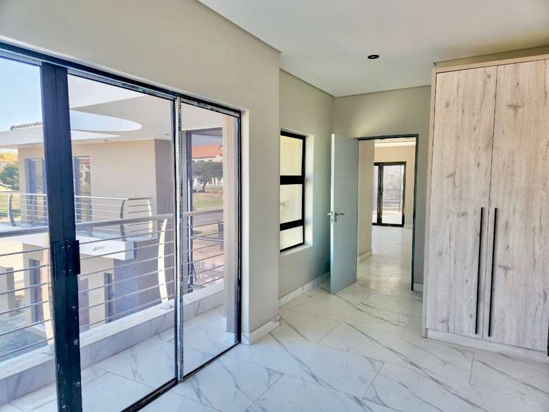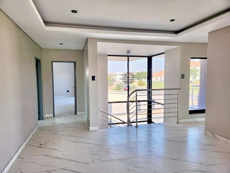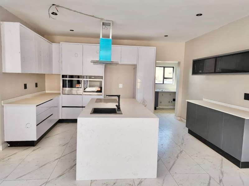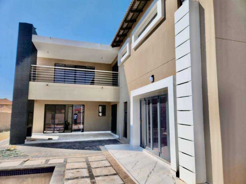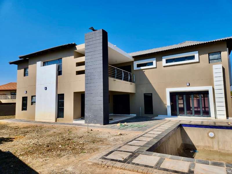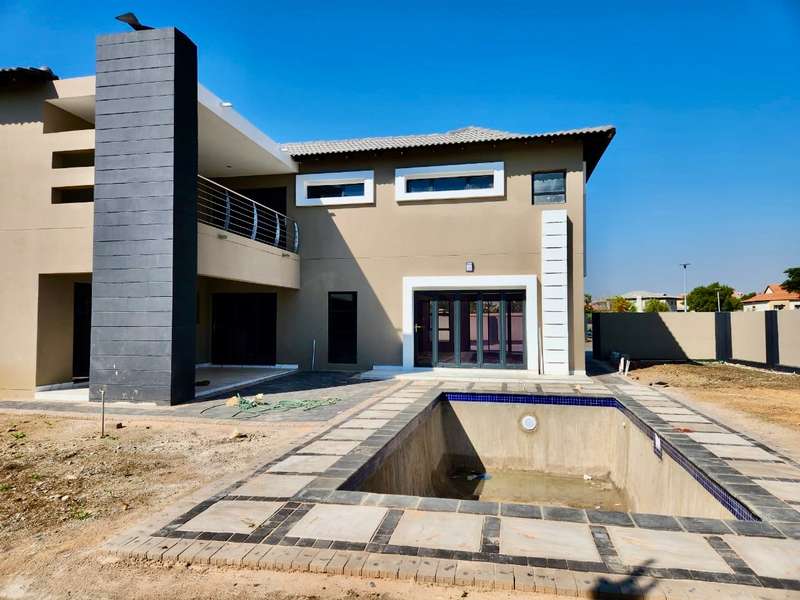Welcome to this exquisite modern double-story home, a true embodiment of luxury and comfort. Boasting six generously sized bedrooms, some featuring their own en suite bathrooms and private balconies, this residence ensures ample space and privacy for every family member. With a total of seven bathrooms, convenience is paramount, eliminating any morning rush. The heart of the home, the open-plan kitchen, seamlessly integrates with a well-appointed scullery, ensuring a clutter-free and efficient cooking environment. This culinary haven flows effortlessly into a welcoming braai area, perfect for hosting gatherings and creating lasting memories with friends and family. Step outside to discover a serene swimming pool, surrounded by a beautifully landscaped garden, offering a perfect retreat for relaxation and leisure. Parking is never an issue with both a double and single garage providing ample space for your vehicles and storage needs. Modern lighting solutions, both indoors and out, highlight the architectural elegance and sophistication of this luxurious home. Every detail has been thoughtfully designed to provide the ultimate living experience. Don’t miss the opportunity to make this dream home your own.