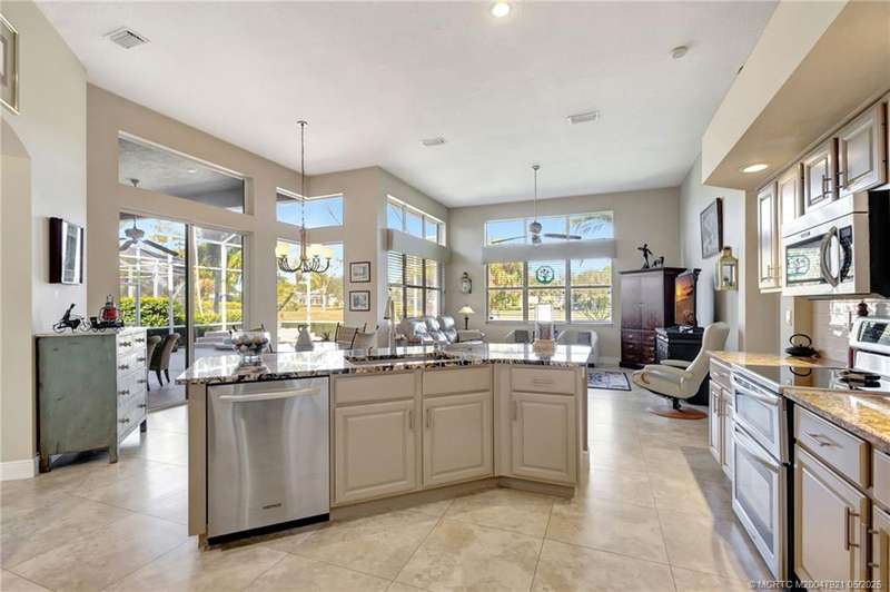 Completely Renovated with a Golf Course view. Discover unparalleled elegance, Spacious 3-bedroom, 2-bathroom Split plan home. A 4th room for BR or den/office. Nestled within the prestigious Monarch Country Club, not mandatorty to join, this residence offers a seamless blend of comfort and luxury. Upon entering, you're greeted by expansive 12-foot ceilings, new tile floors that accentuate the spaciousness and modern charm of the interior. The angled view from the living areas showcases a picturesque panorama of the golf course's 7th hole, providing a serene backdrop for everyday living and entertaining. A open family and island kitchen with built-in outdoor grille addition. large pantry with pull out drawers- spacious laundry rm, This home presents itself to be whatever style you choose with the Top Quality renovations.