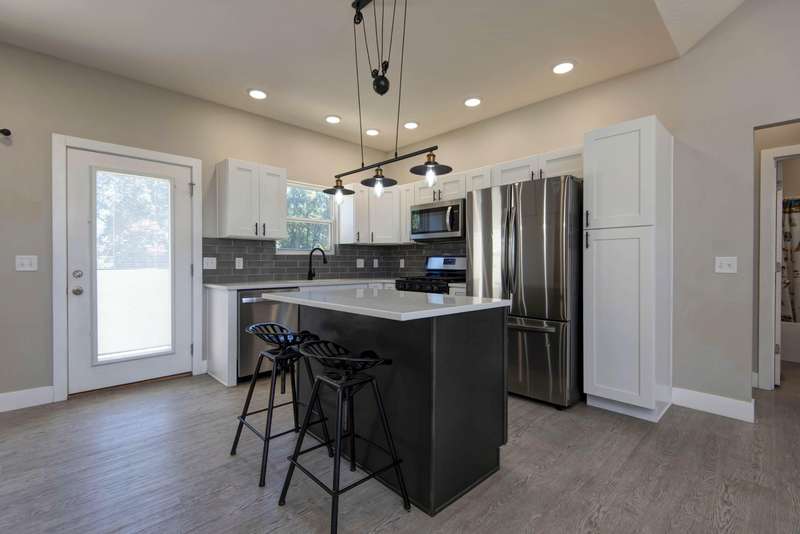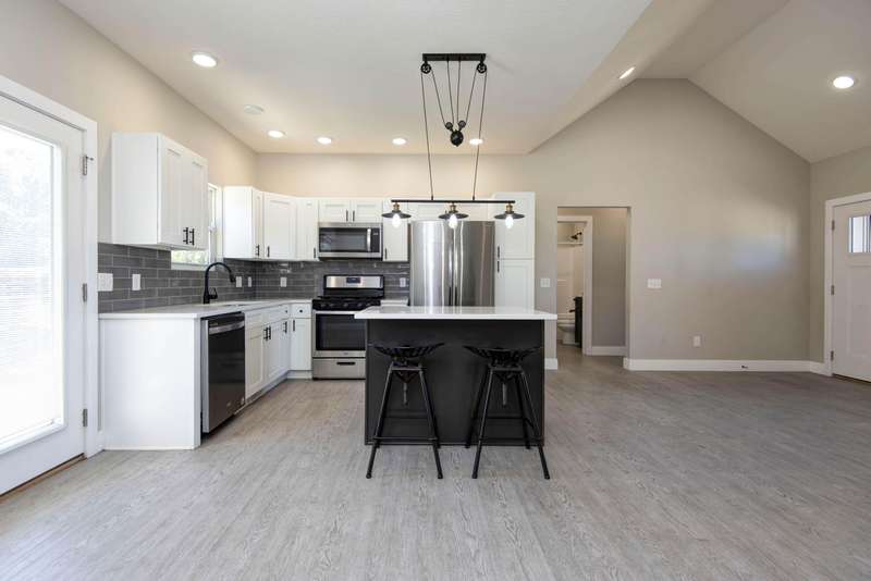 Only 4 years old!This stunning 3-bedroom, 2-bath home offers 1,196 square feet of modern comfort and charm. The exterior boasts a stylish rock and vinyl front accented by cedar posts and a welcoming entryway. Inside, you'll find luxury vinyl plank flooring throughout the main living areas and primary bedroom, with cozy carpet in bedrooms two and three.The kitchen features crisp white cabinetry, a gray island, and matte black hardware for a timeless look. You'll also enjoy stainless steel appliances, white quartz countertops, and a beautiful tile backsplash. The primary suite includes quartz countertops, gray cabinetry, and a walk-in shower surrounded by elegant gray tile.Situated in a peaceful, country-like setting within the city limits and featuring a spacious yard, this home truly offers the best of both worlds. Don't wait--this one won't last long!