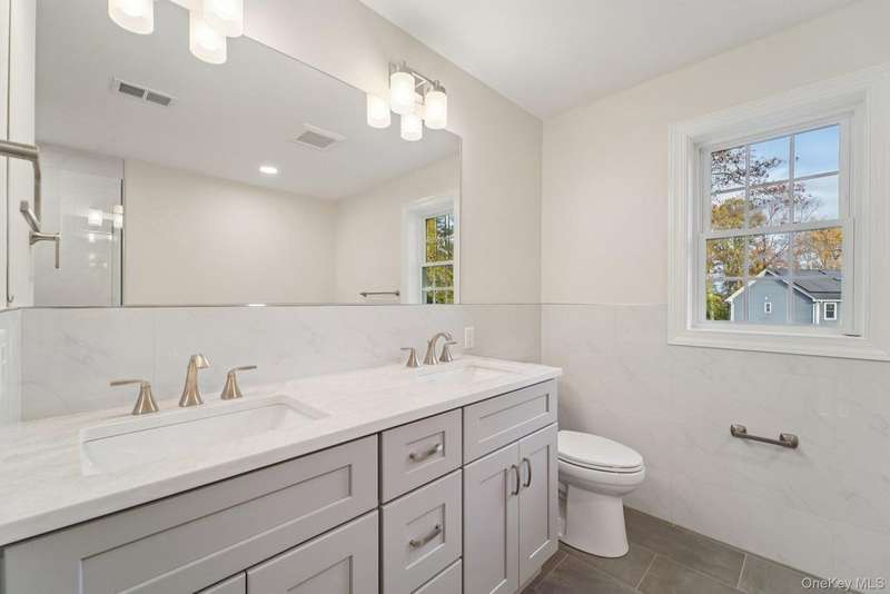 New construction colonial in the heart of New City, within the Clarkstown North School District. This beautiful home offers timeless design, quality craftsmanship, and a spacious layout perfect for modern living.The first floor features a formal living room and dining room, ideal for entertaining or gatherings. A versatile home office or multipurpose room provides flexibility for today's lifestyle. The kitchen is both stylish and functional, offering generous quartz countertops, stainless steel appliances including a refrigerator, range, vent hood, and microwave, along with a walk-in pantry and a cozy kitchenette area with sliding doors leading to the Trex deck. The large family room is bright and inviting, centered around a gas fireplace. Completing the main level is an expansive bonus great room filled with natural light and beautiful hardwood floors throughout.Upstairs, you'll find four spacious bedrooms. The primary suite features tray ceilings, a walk-in closet with custom shelving and a washer/dryer hookup, and a luxurious bathroom with a soaking tub, glass-enclosed shower, double vanity, and custom mirror. Three additional bedrooms all feature hardwood floors and ample closet space.Additional highlights include a two-car garage and a full unfinished walkout basement with sliding doors?offering endless possibilities for future expansion or recreation space. Situated on .75 acres, this property provides both space and convenience, close to shopping, restaurants, parks, and public transportation.